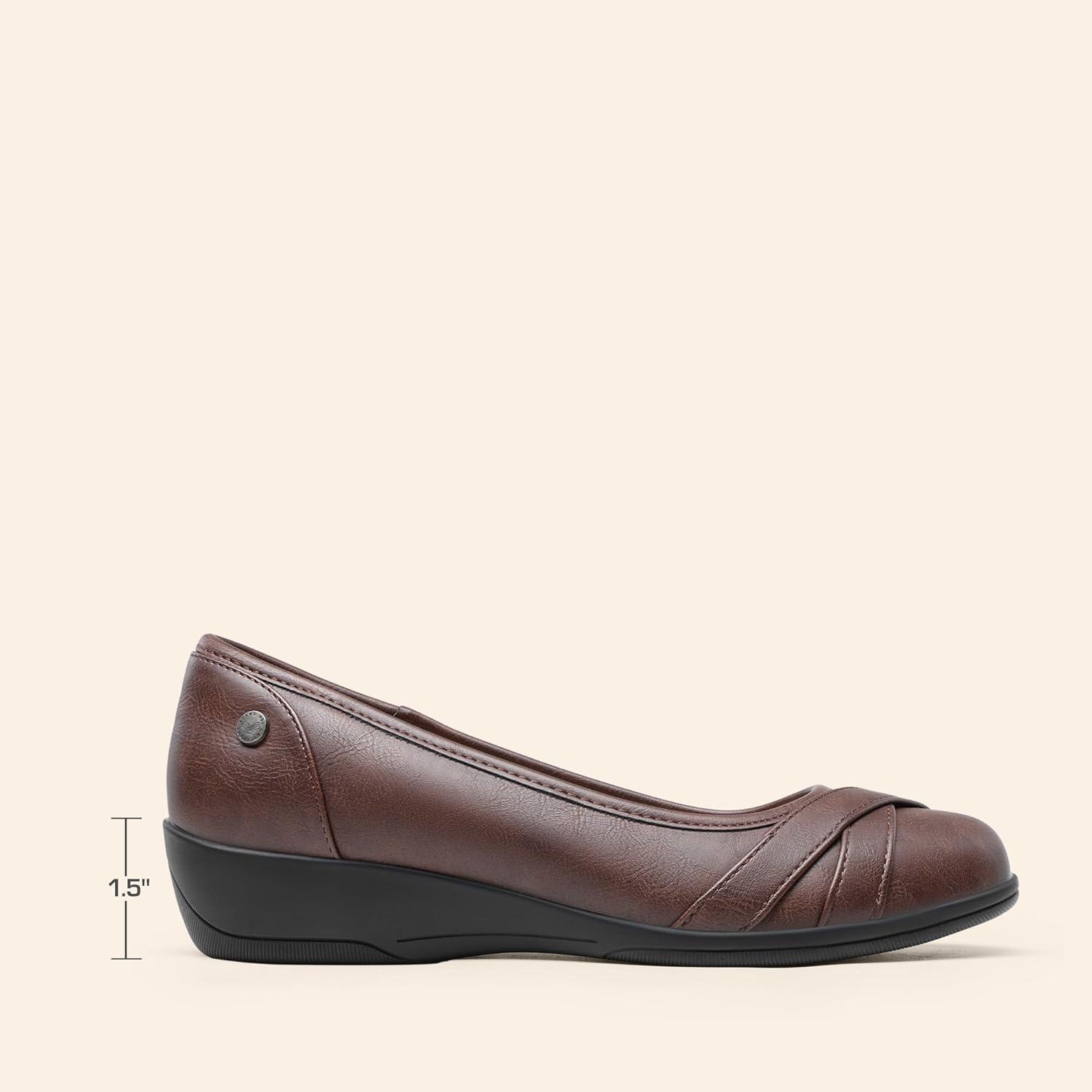 DREAM PAIRS Women’s Ballet Flats Business Office Work Dress Shoes Comfortable Dressy Flats for Women(Brown)