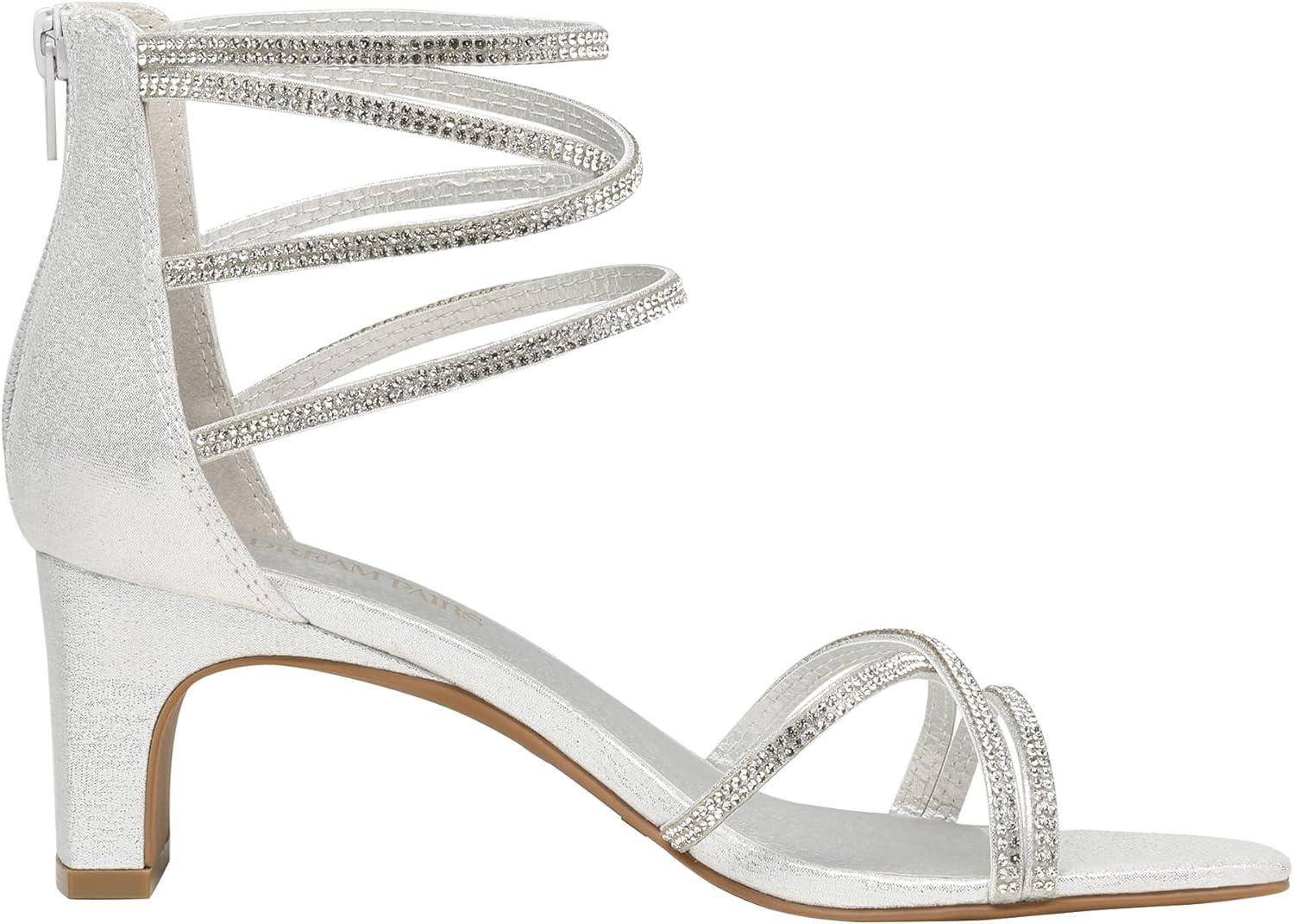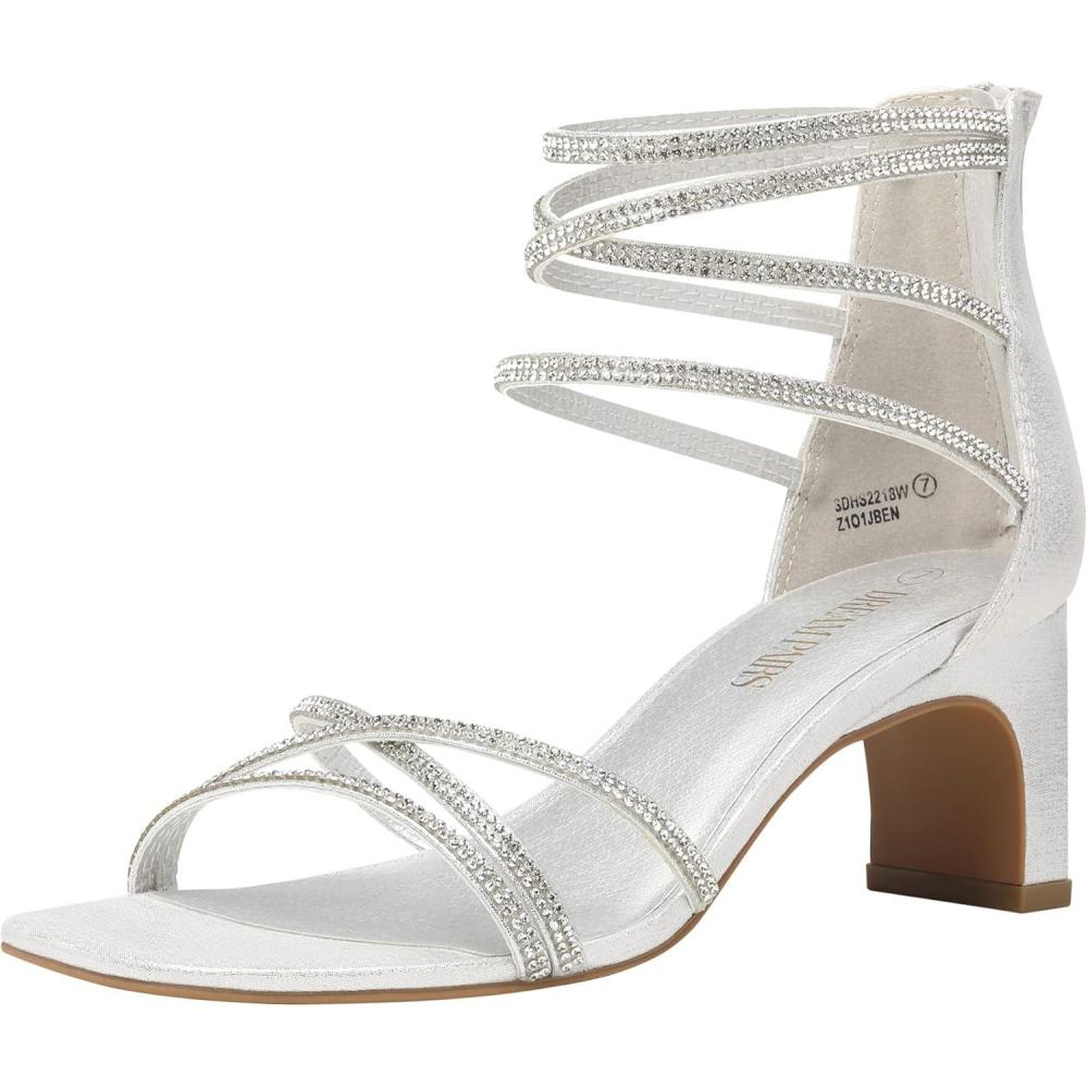 DREAM PAIRS Women’s Block Chunky Rhinestone Low Heels Square Toe Sparkly Dressy Ankle Strap Heels Sandals