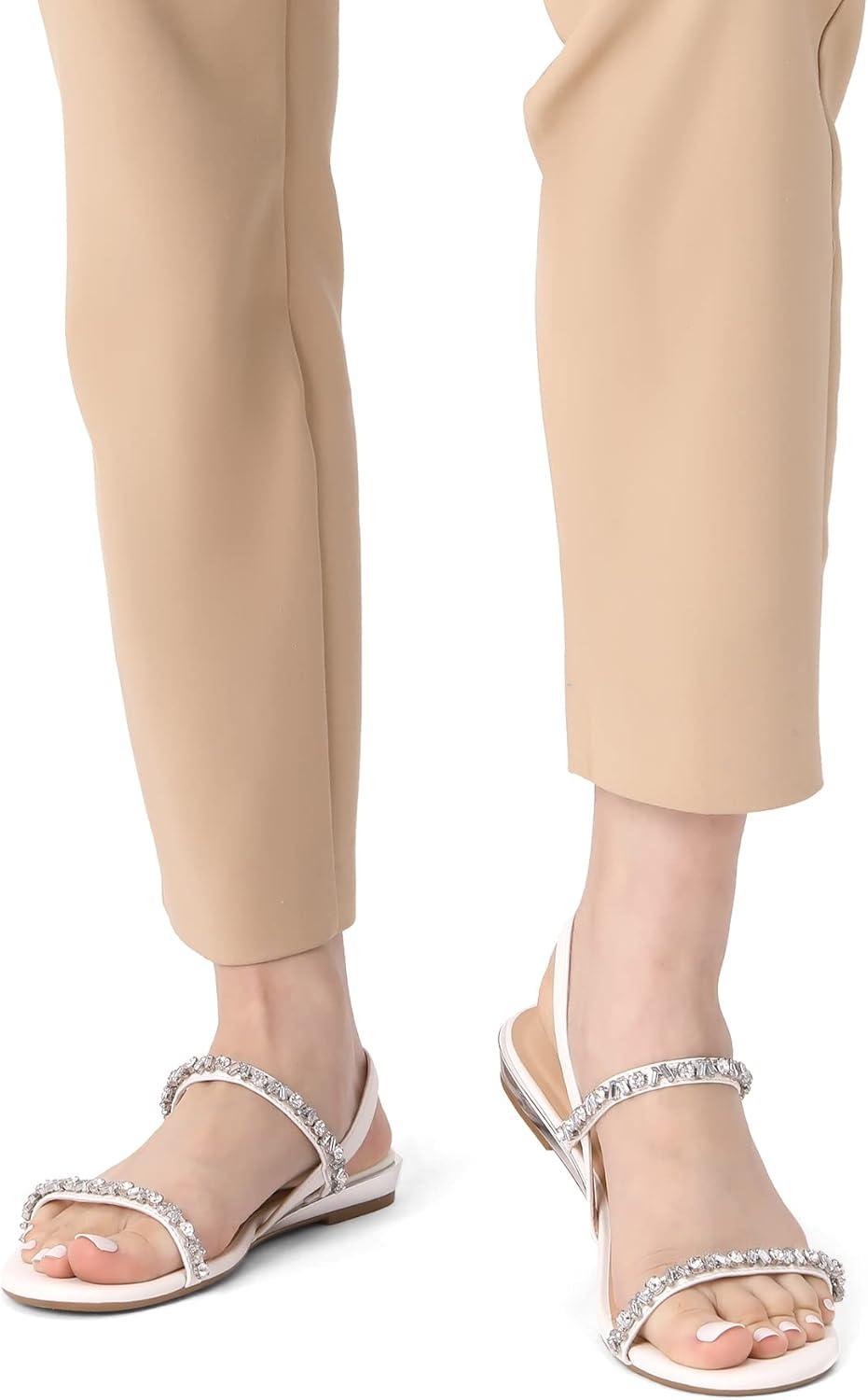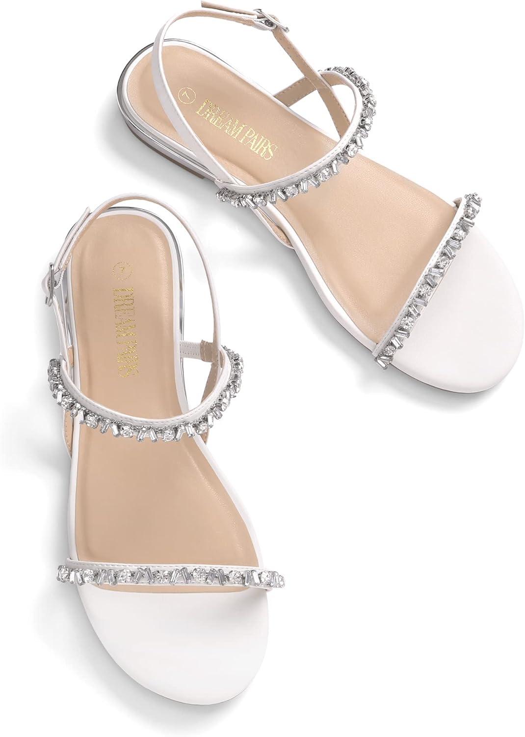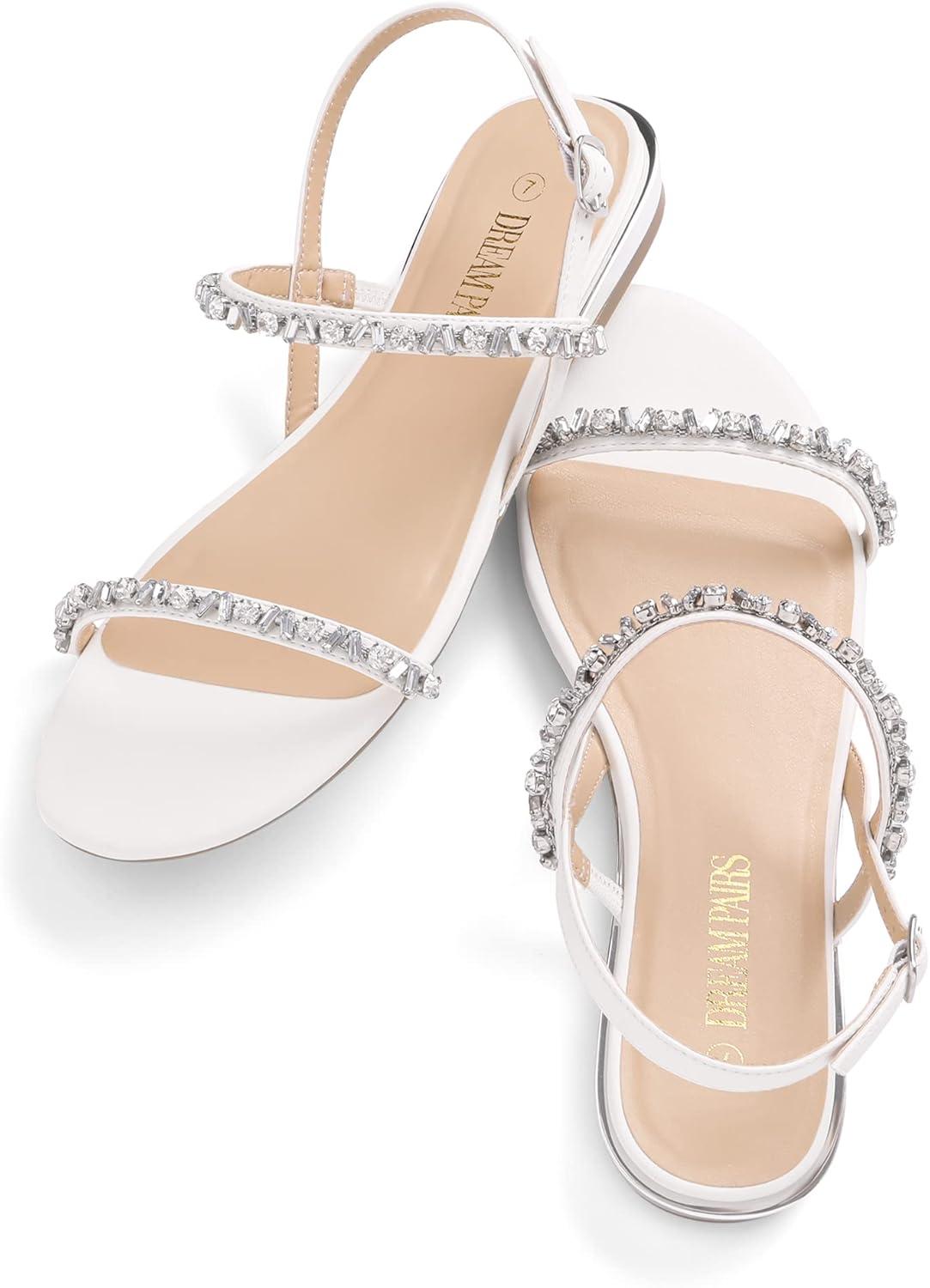 DREAM PAIRS Women’s Casual Dresssy Low Wedge Summer Shoes Cute Strappy Rhinestone Open Toe Flat Sandals,Size 10,White/PU,SDFS2213W