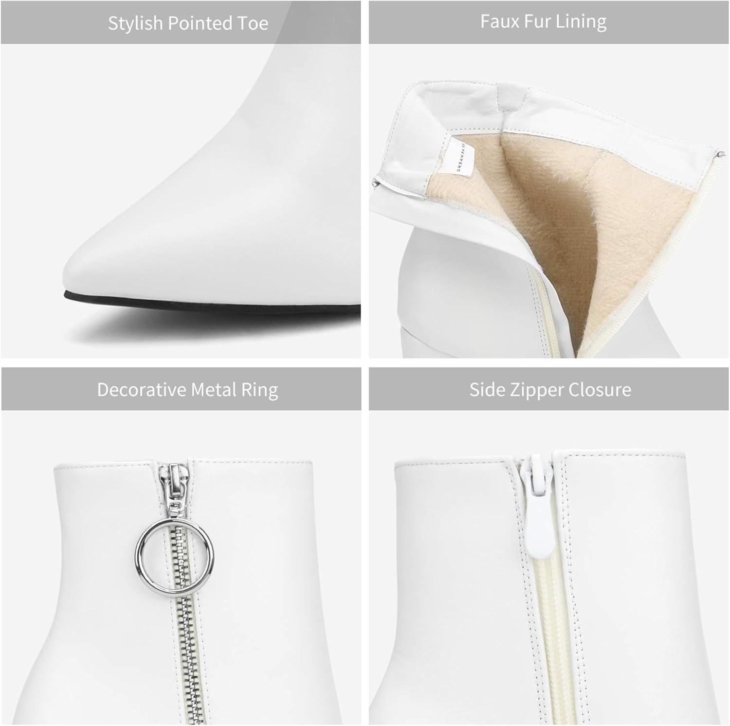 DREAM PAIRS Women’s Chunky Heel Ankle Booties Pointed Toe Short Boots(White/Pu-3)