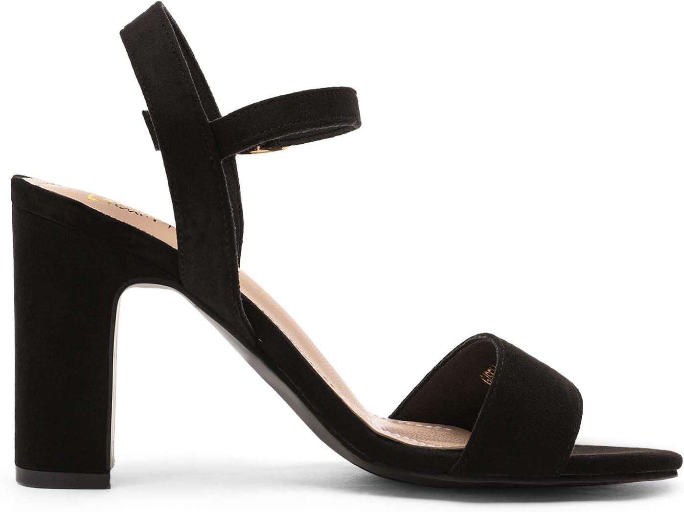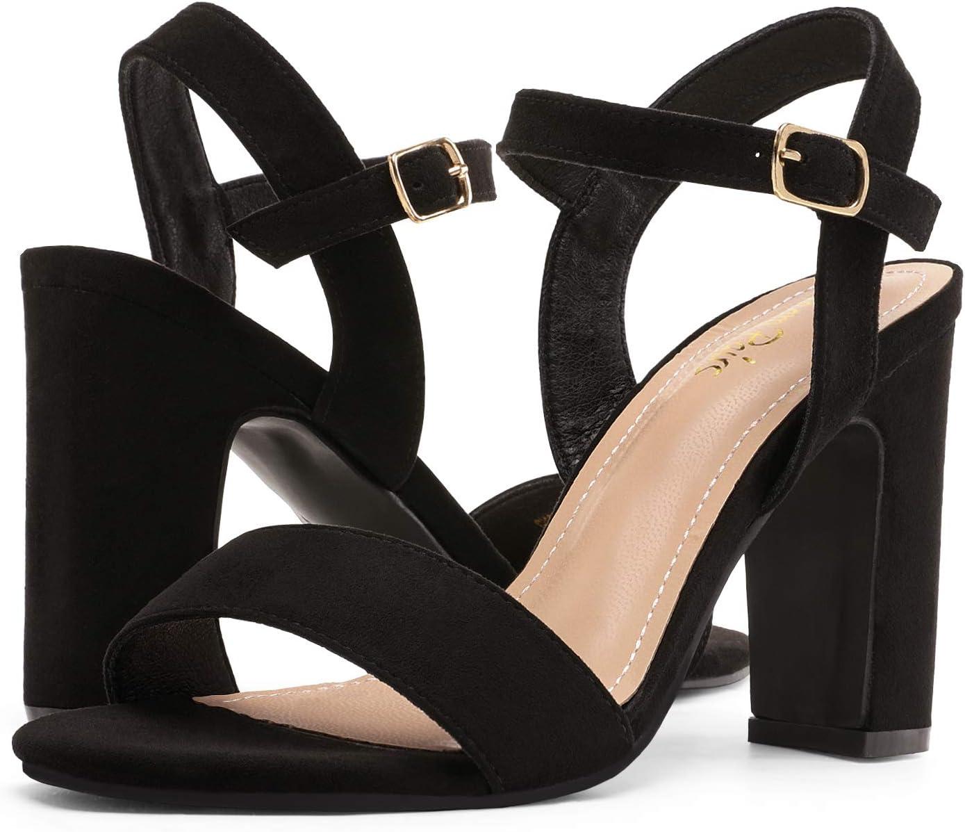 DREAM PAIRS Women’s Chunky Heels Open Toe Ankle Strap High Block Comfy Dress Heel Sandals Pumps Shoes(Black/Suede)