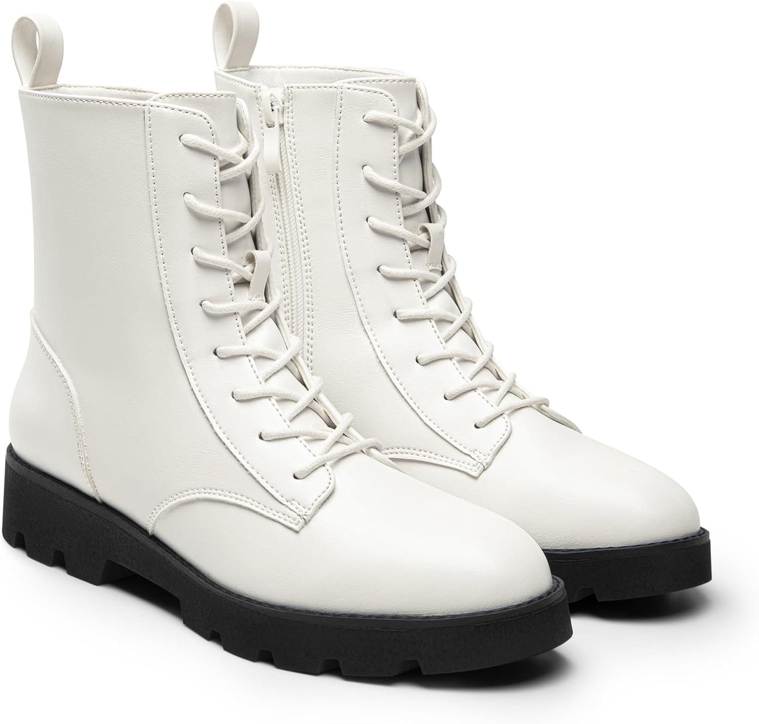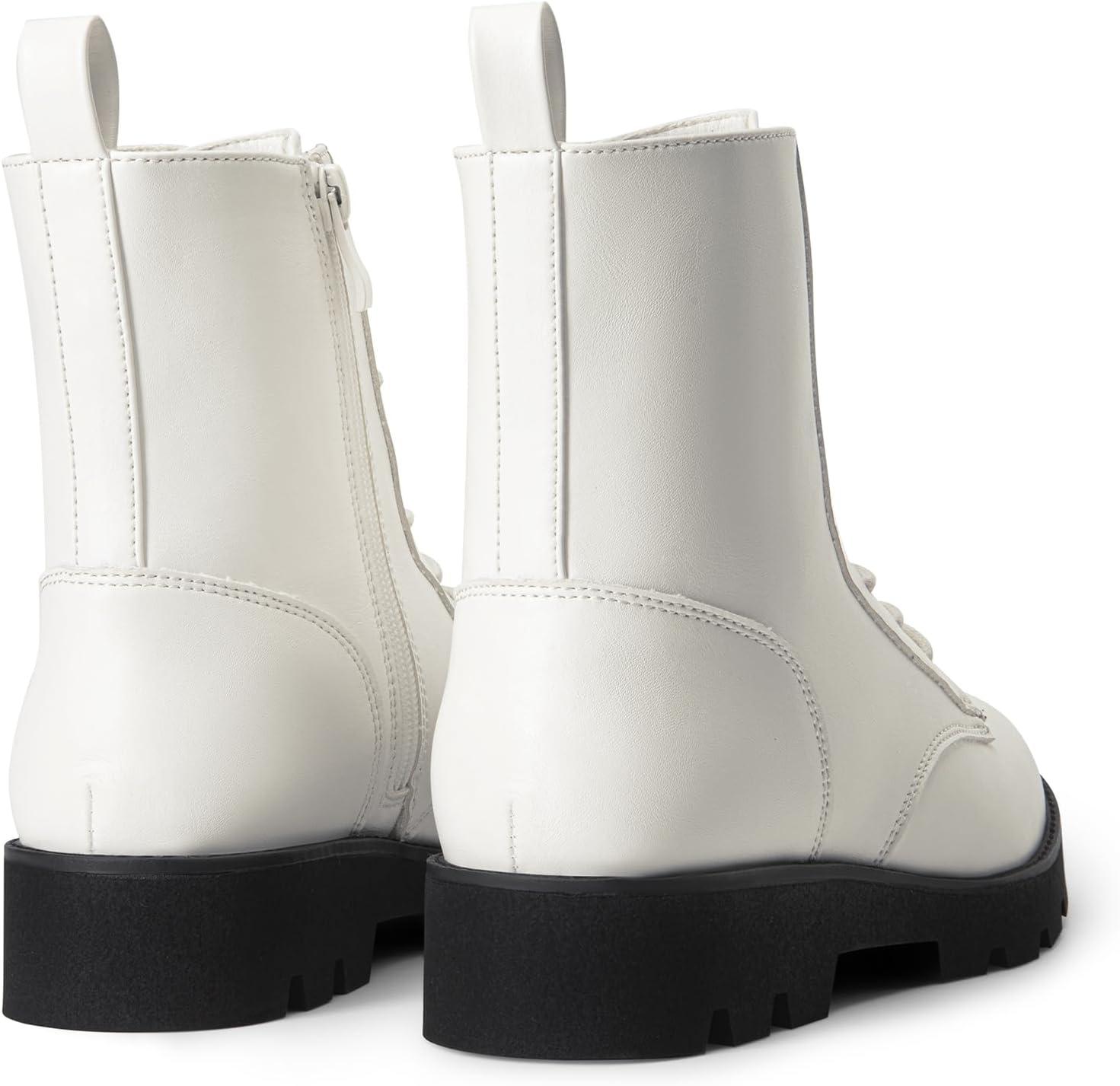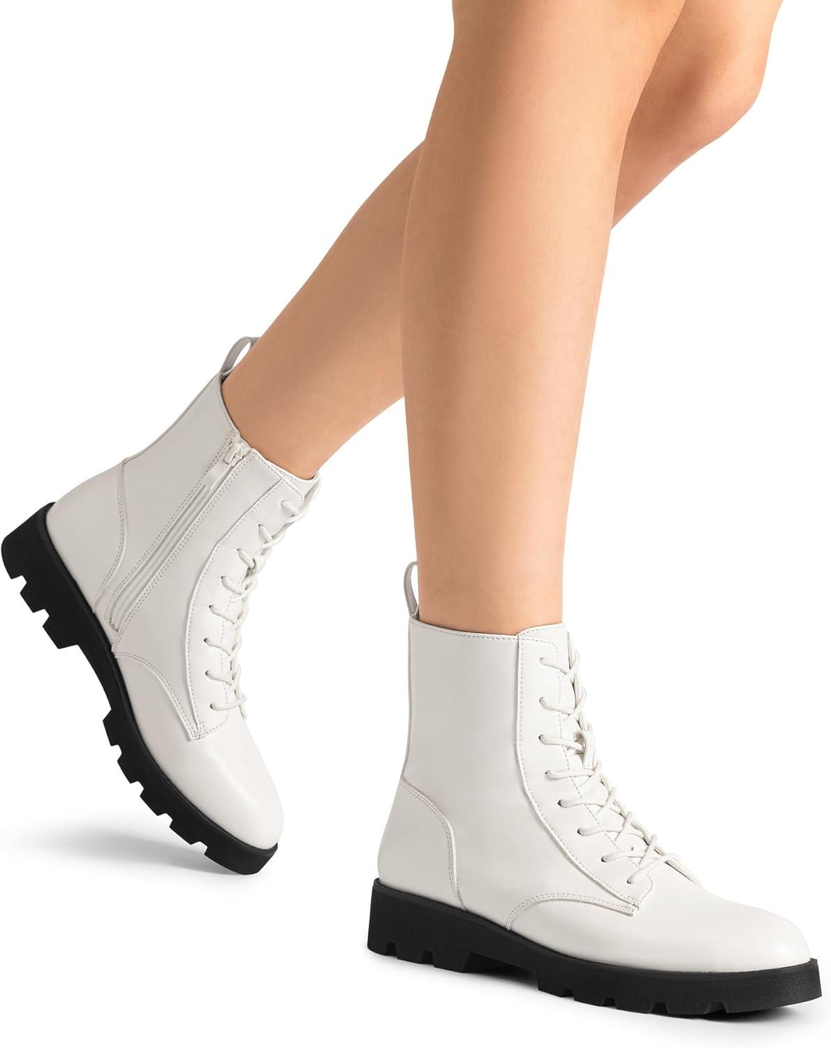 DREAM PAIRS Women’s Combat Ankle Boots Lace up Lug Sole Fashion Booties Shoes(White)
