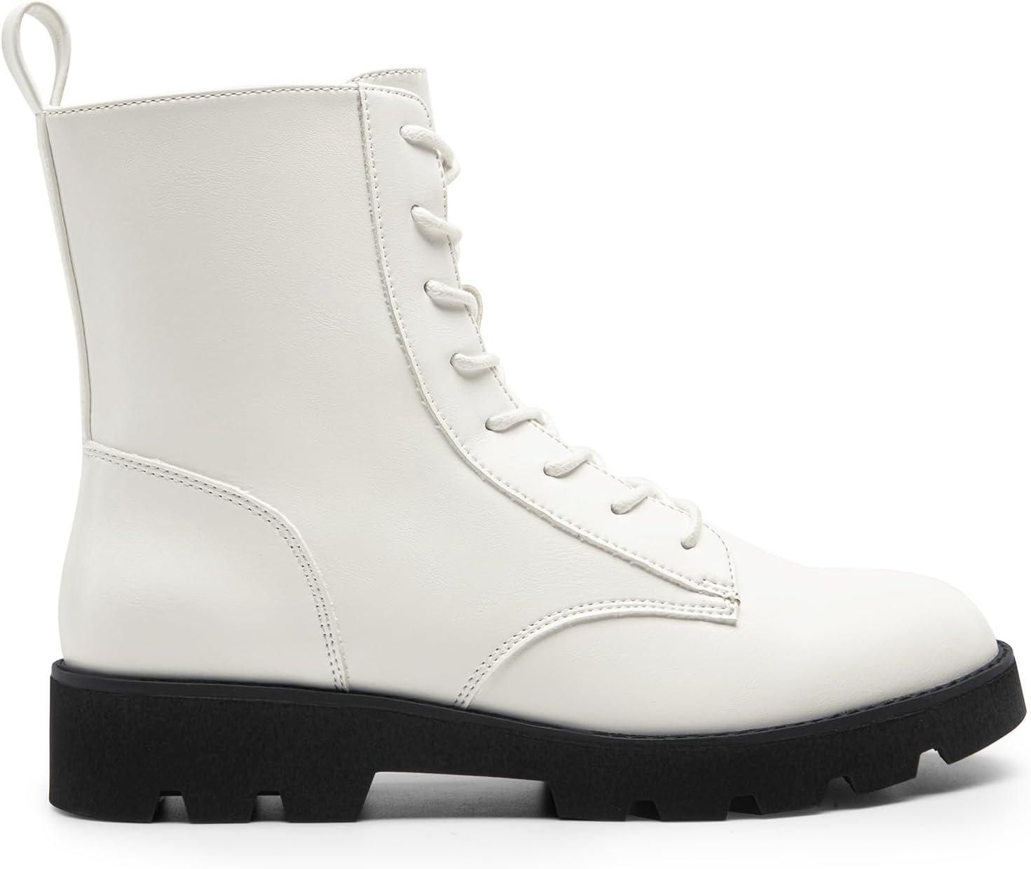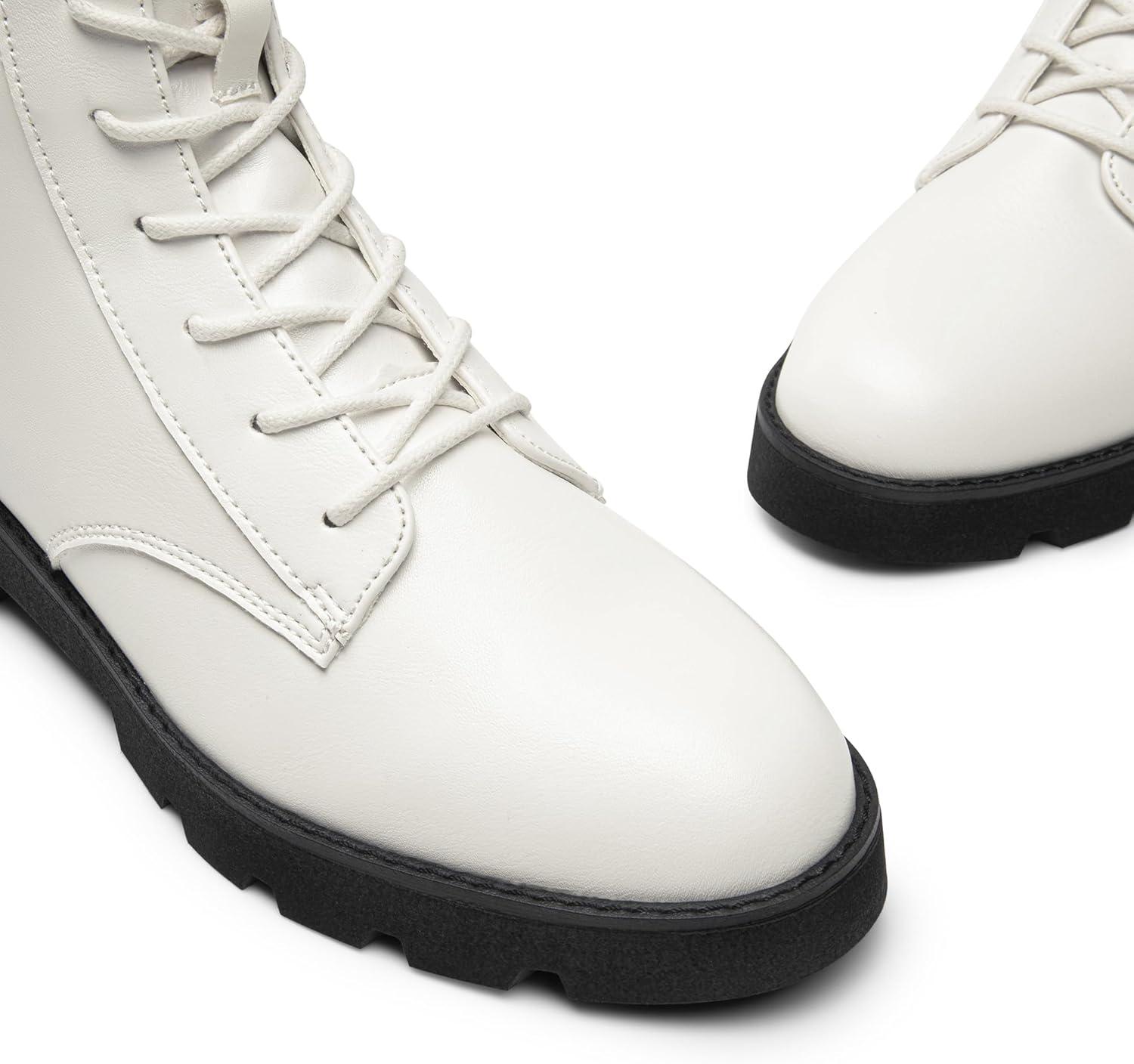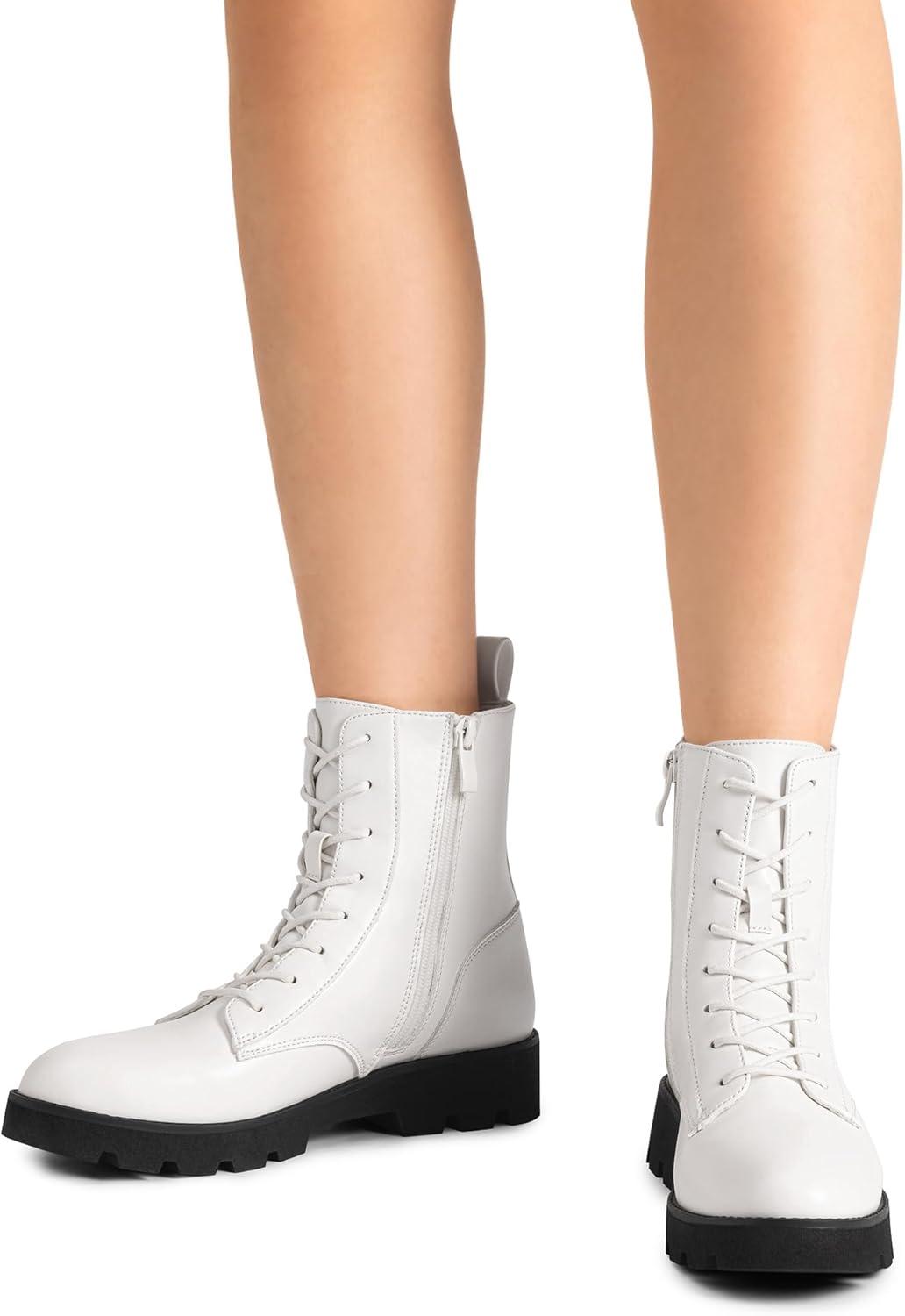 DREAM PAIRS Women’s Combat Ankle Boots Lace up Lug Sole Fashion Booties Shoes(White)