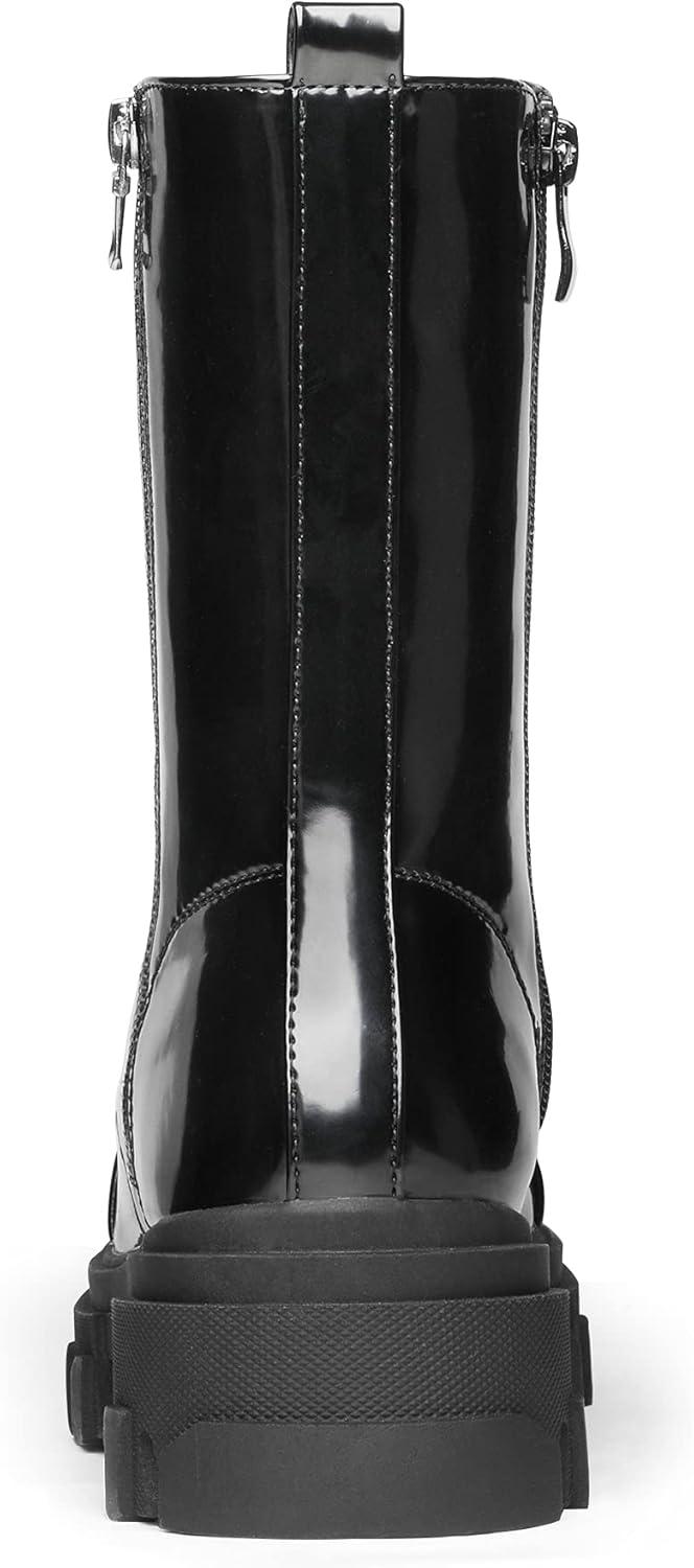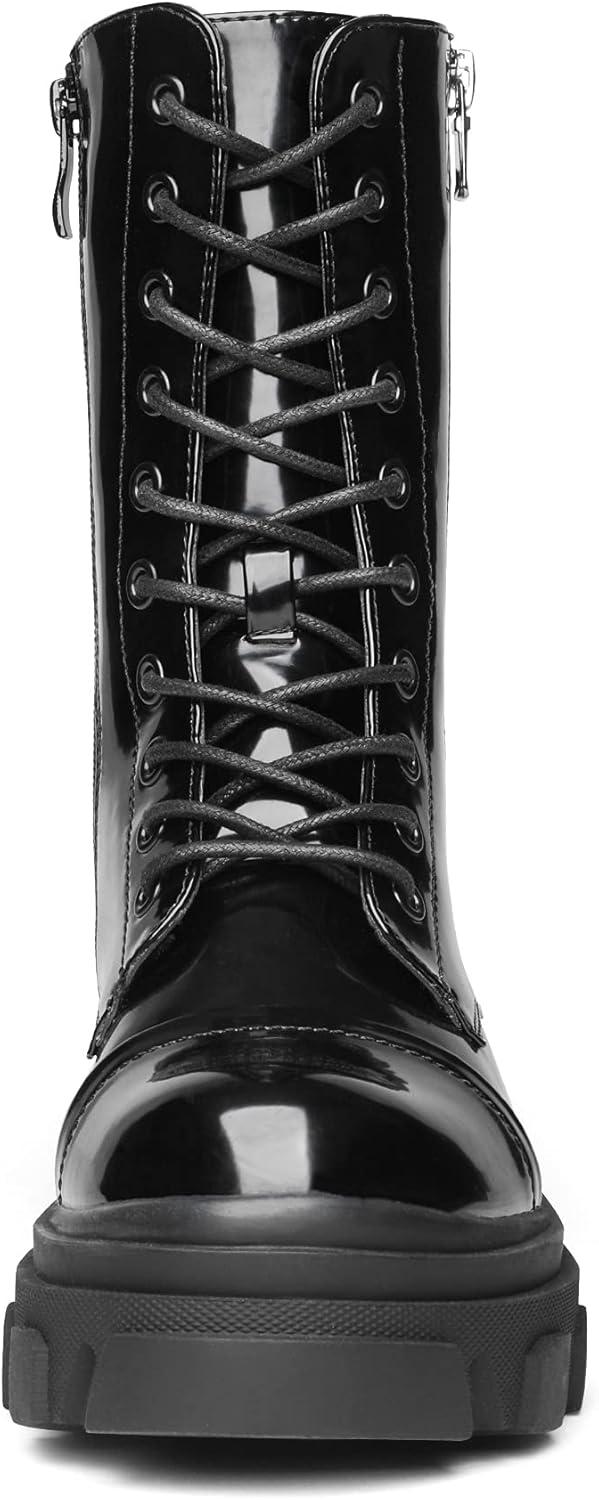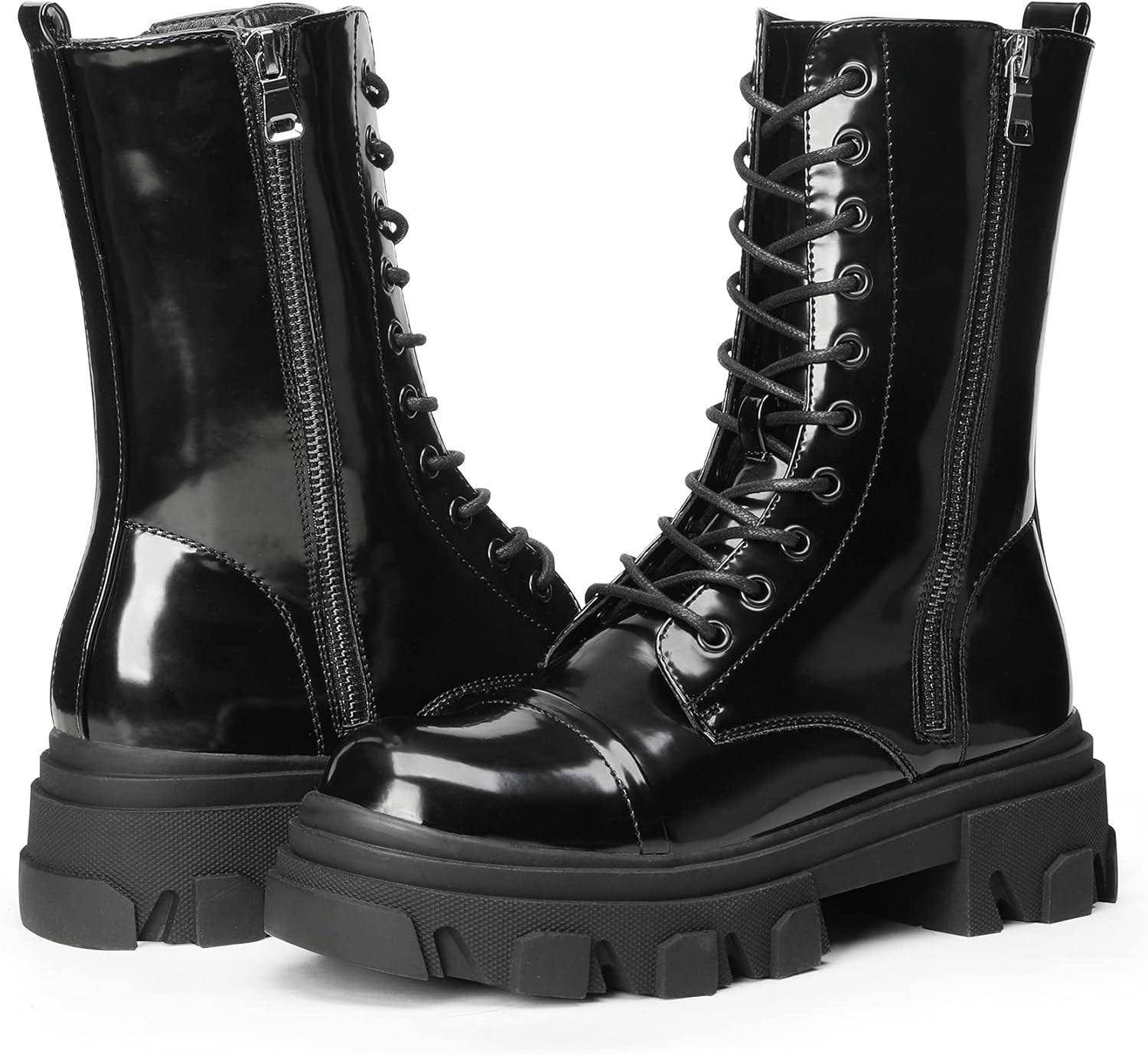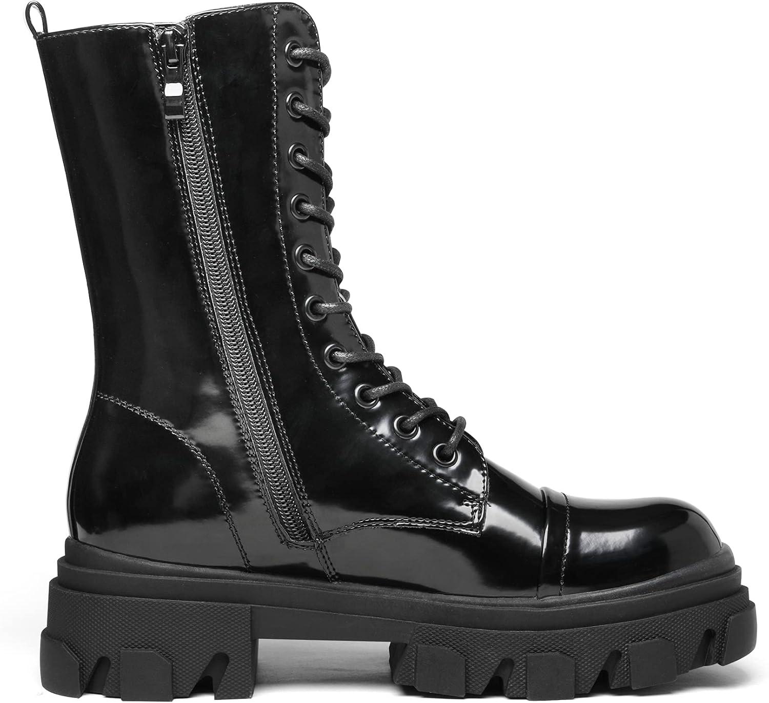 DREAM PAIRS Women’s Combat Boots Lace up Mid Calf Boots Low Heel Chunky Platform Lug Sole Riding Boots(Black)