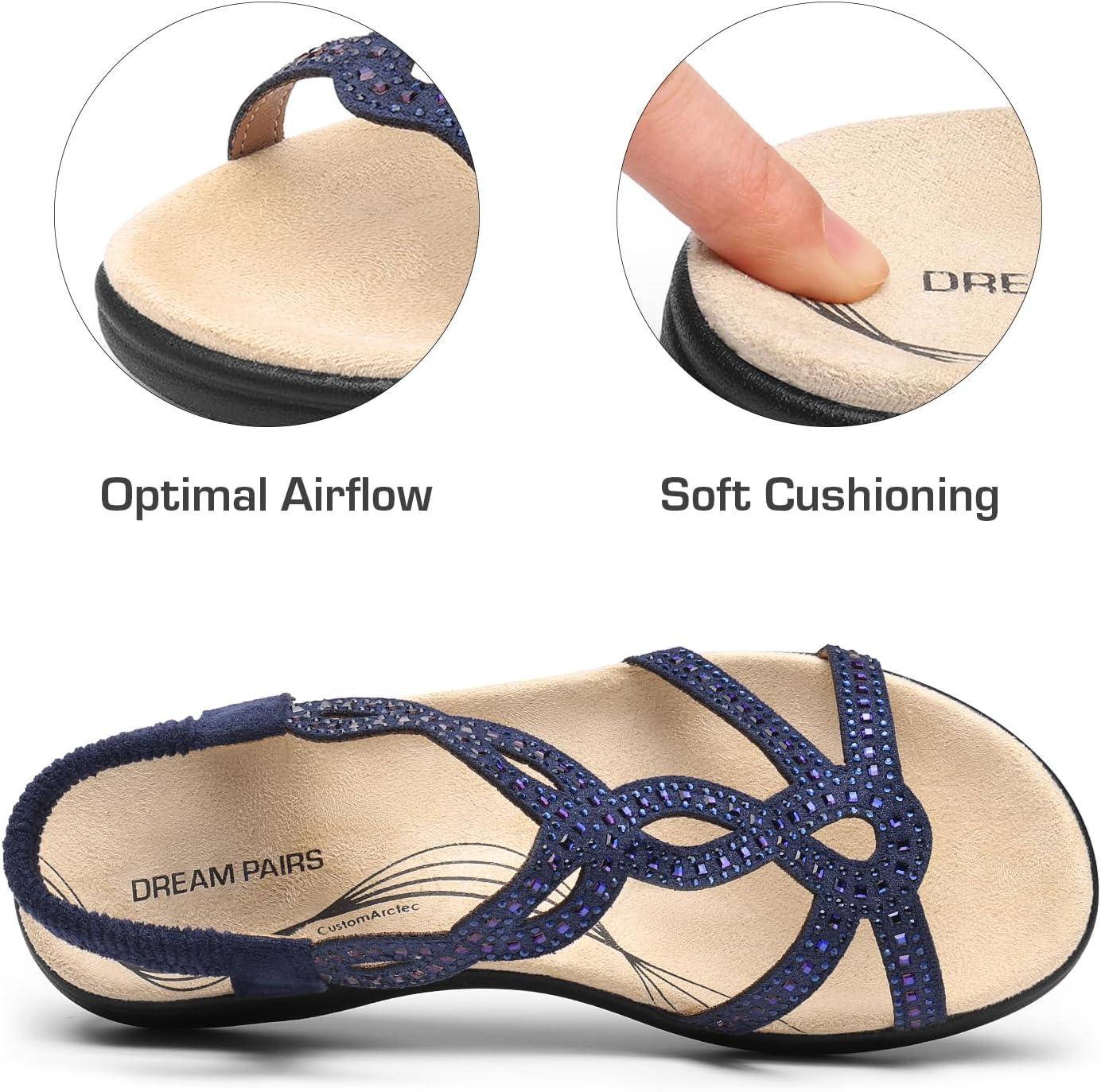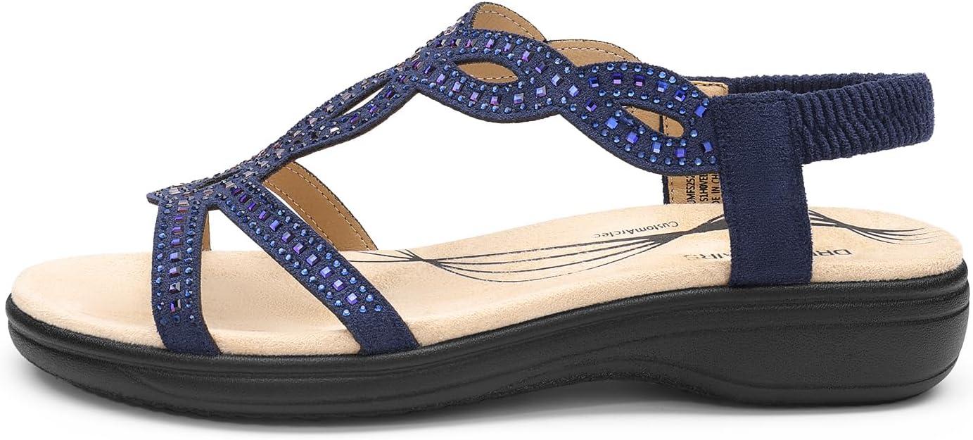 DREAM PAIRS Women’s Comfort Dressy Rhinestone Summer Beach Sandals Slip-on Flat Walking Orthopedic Sandals with Elastica Back Strap(Navy)