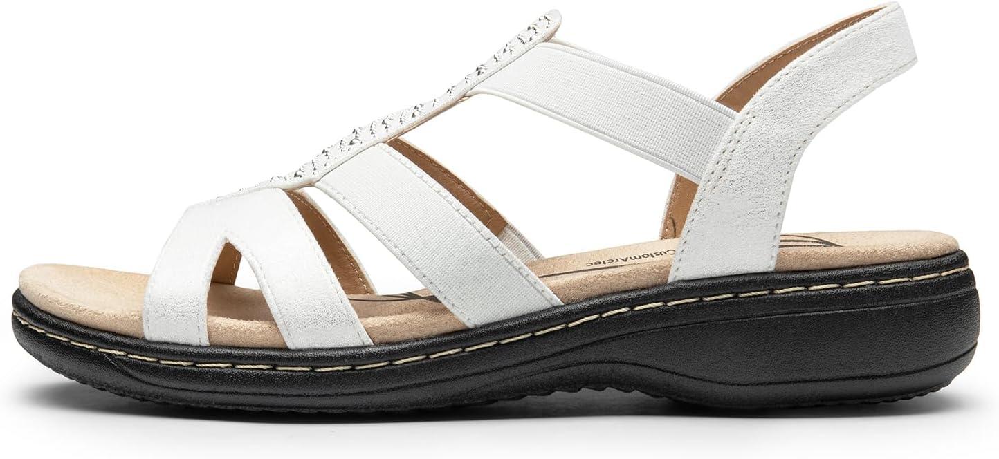 DREAM PAIRS Women’s Comfortable Arch Support Dressy Flat Sandals Elastic Open Toe Walking Shoes for Summer(White)