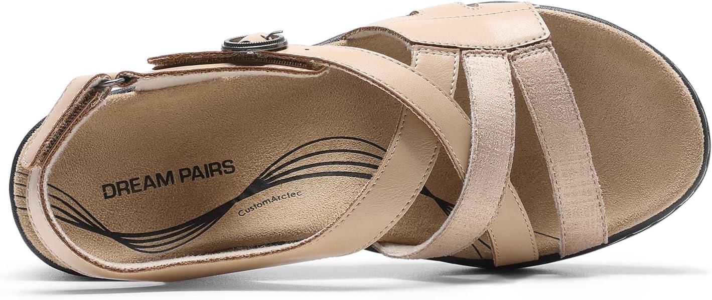 DREAM PAIRS Women’s Comfortable Arch Support Wedge Sandals Open Toe Summer Walking Shoe(Nude)