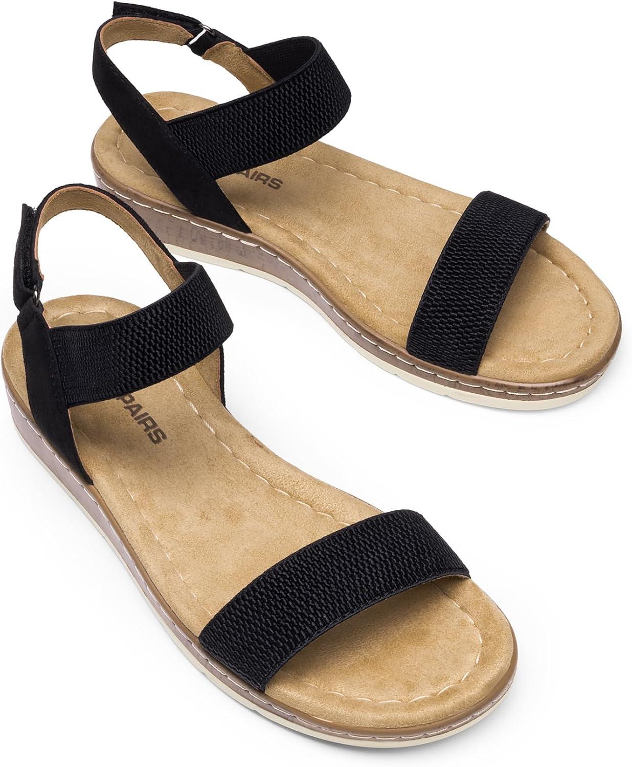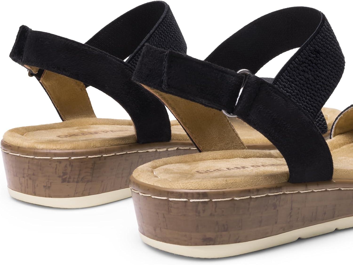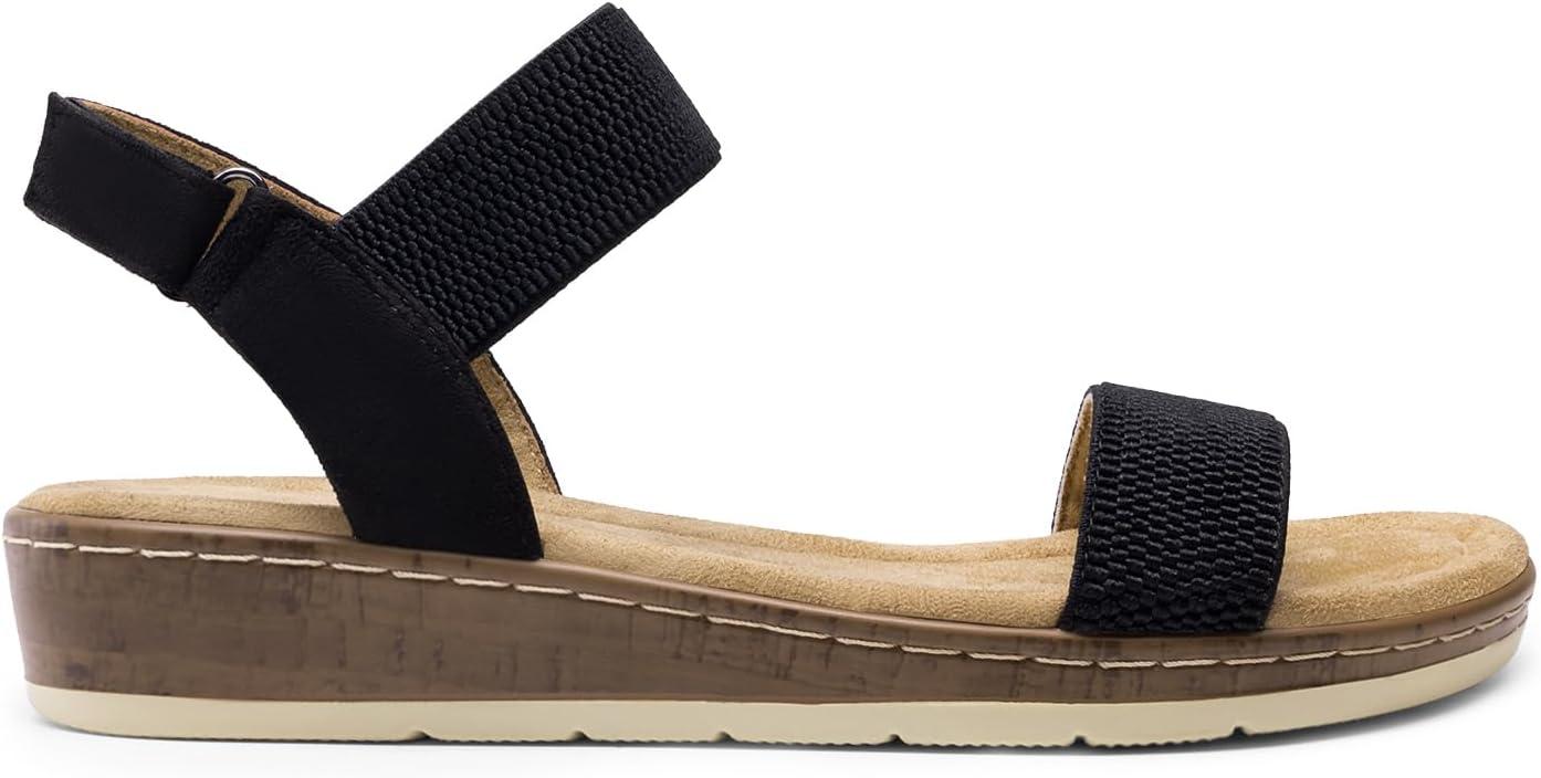 DREAM PAIRS Women’s Comfortable Dressy Cork Low Wedge Heels Cute Summer One Band Casual Flat Sandals with Adjustable Ankle Strap(Black)