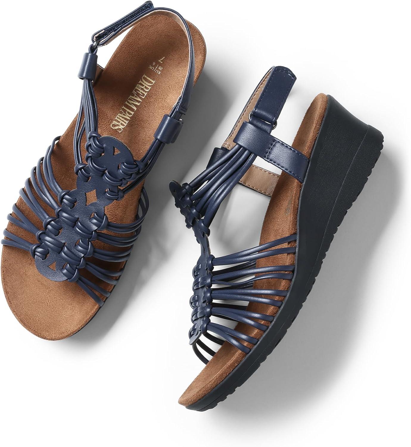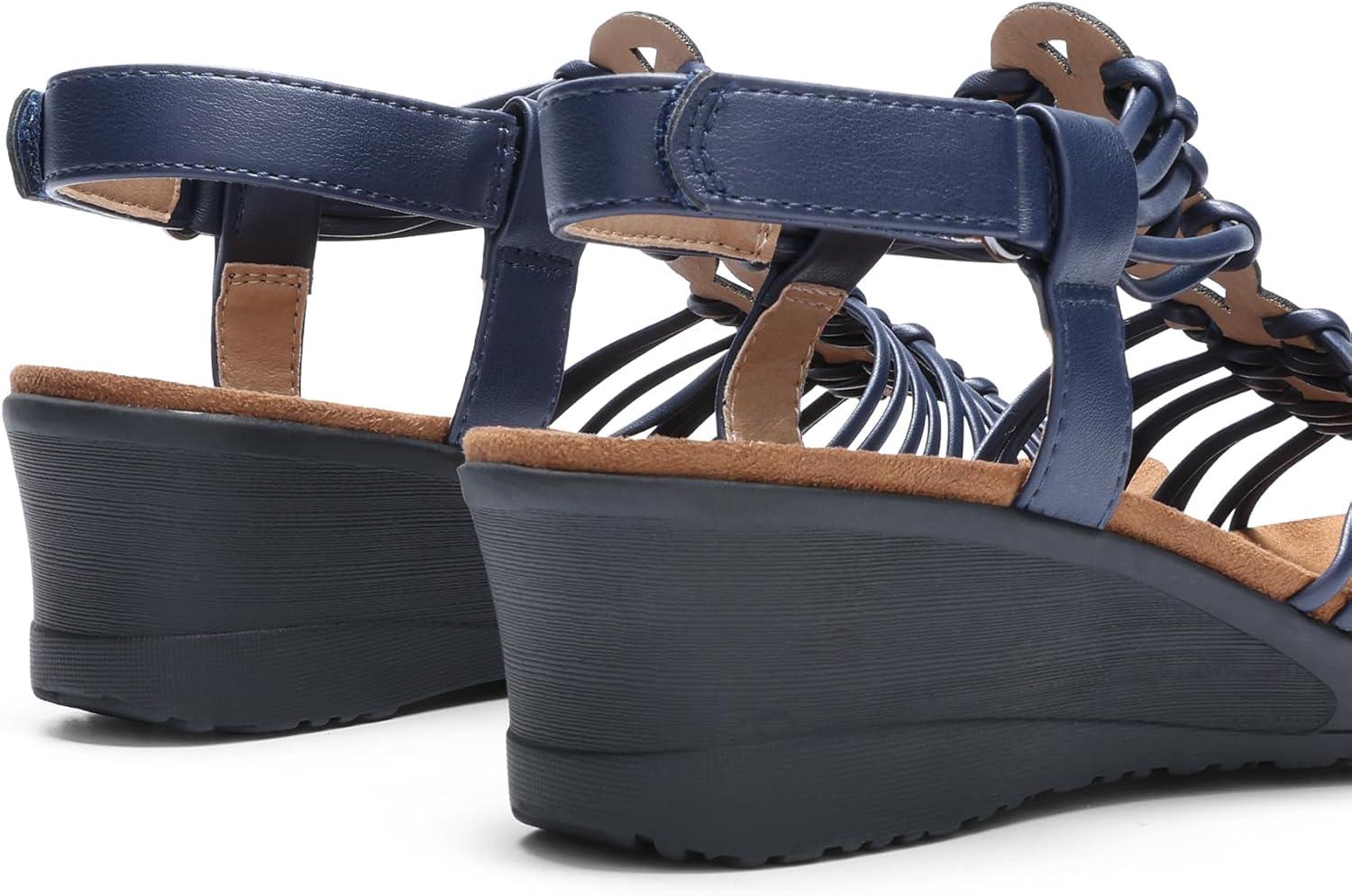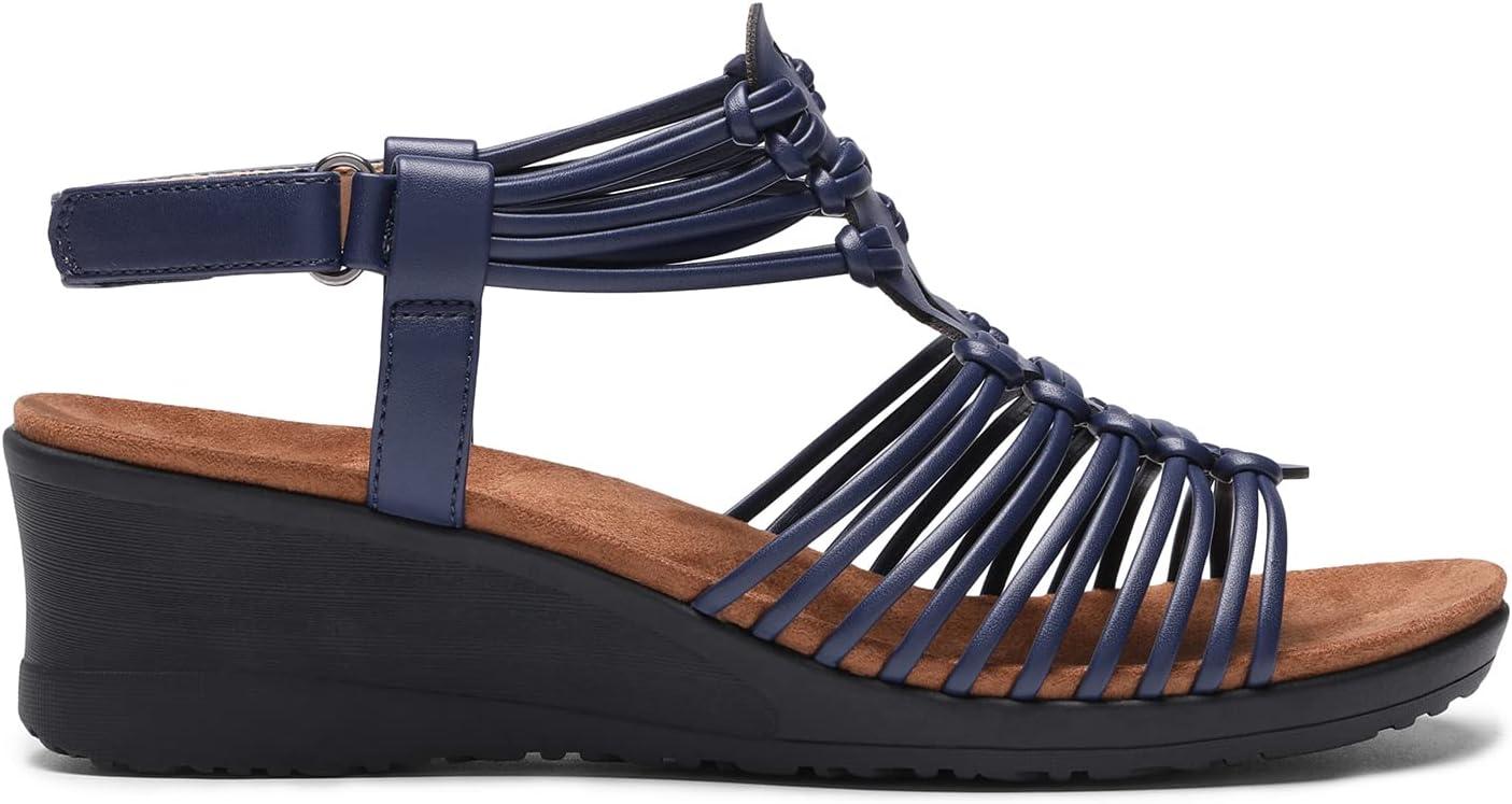 DREAM PAIRS Women’s Comfortable Strappy Low Heel Open Toe Slip-On Wedge Sandals Arch Support for Summer Dressy Shoes(Navy)