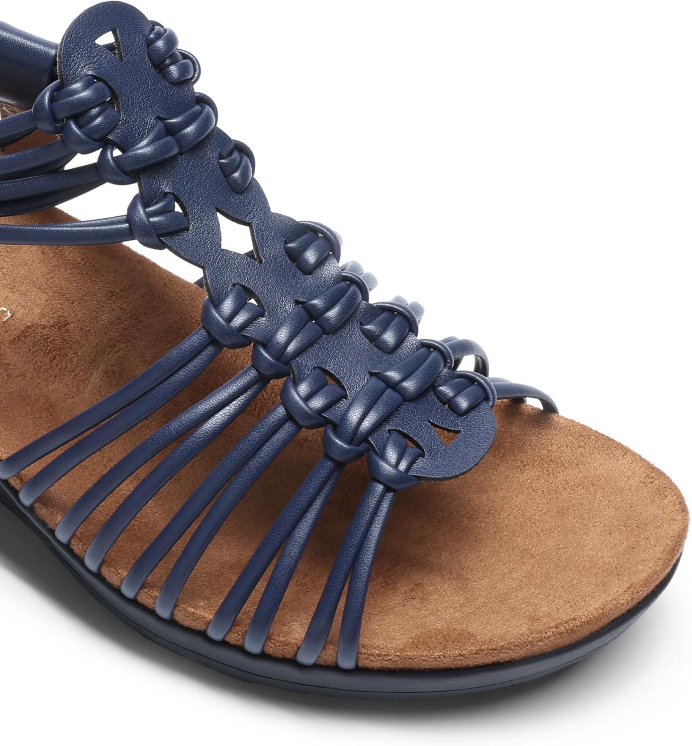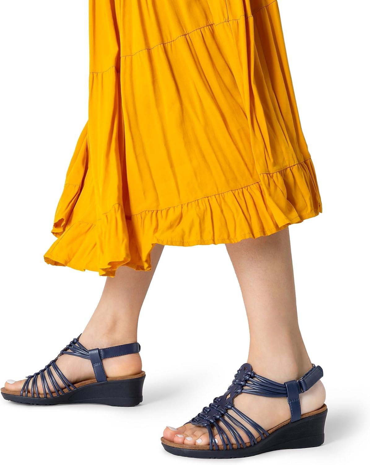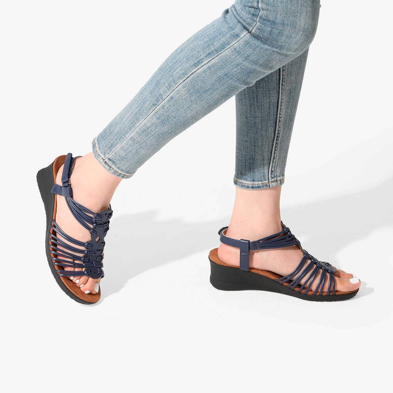 DREAM PAIRS Women’s Comfortable Strappy Low Heel Open Toe Slip-On Wedge Sandals Arch Support for Summer Dressy Shoes(Navy)