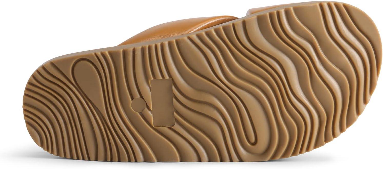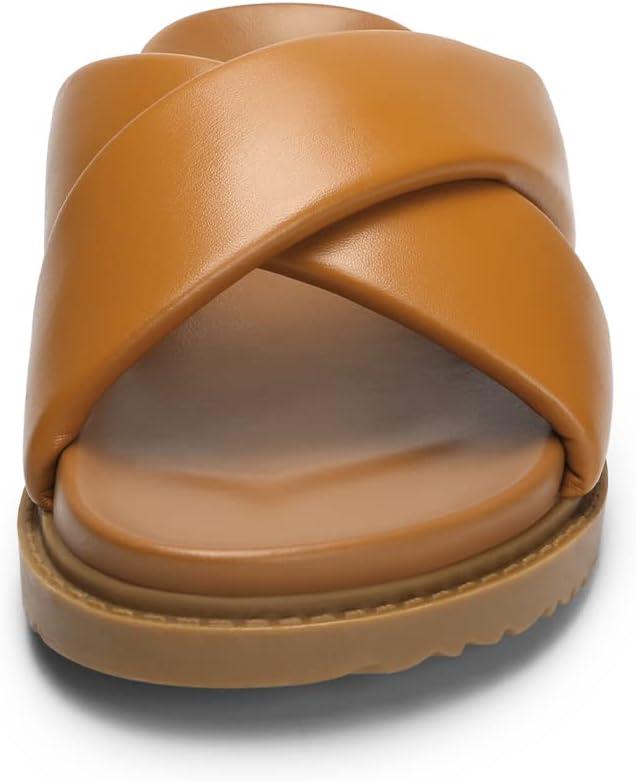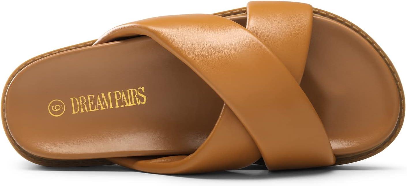 DREAM PAIRS Women’s Crisscross Open Toe Slide Sandals Flat Comfort Slip on Sandals(Brown)