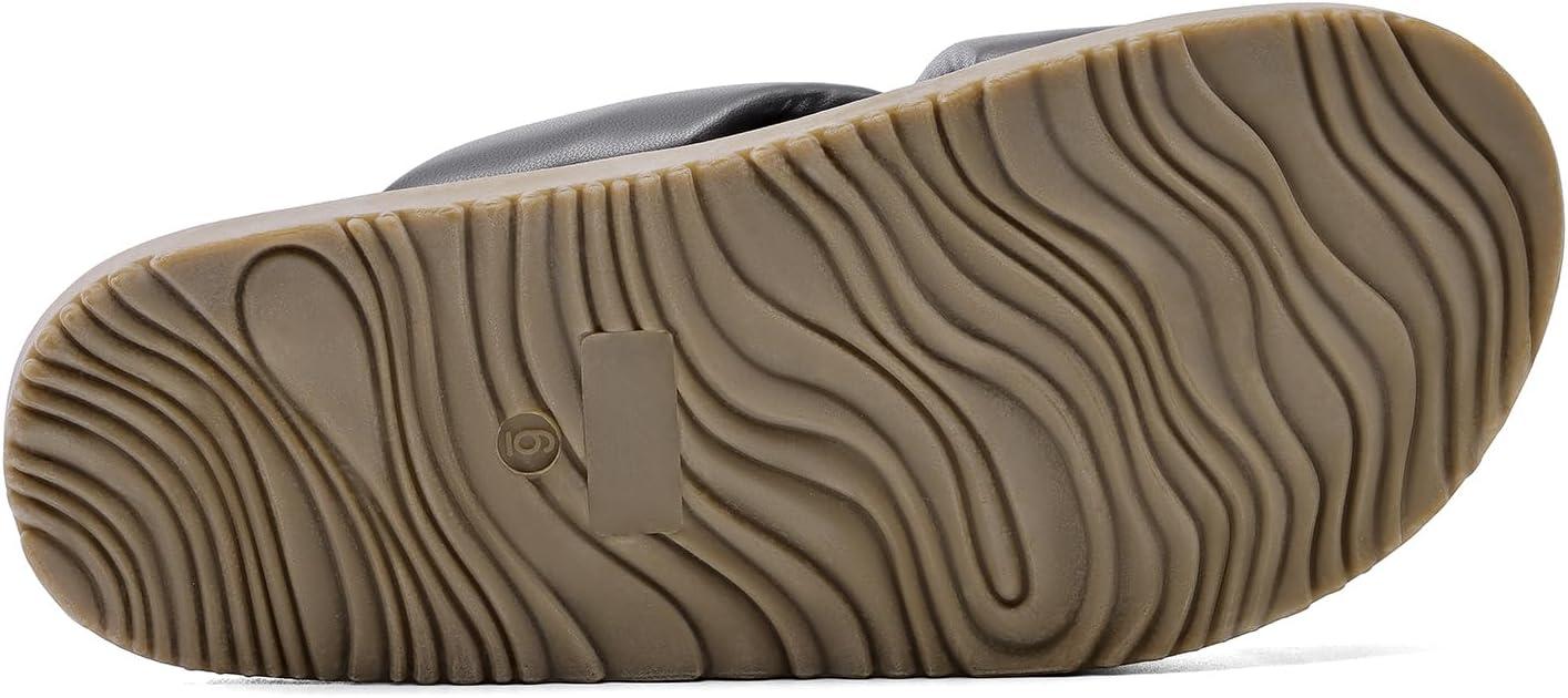 DREAM PAIRS Women’s Crisscross Open Toe Slide Sandals Flat Comfort Slip on Sandals(Grey-pu)