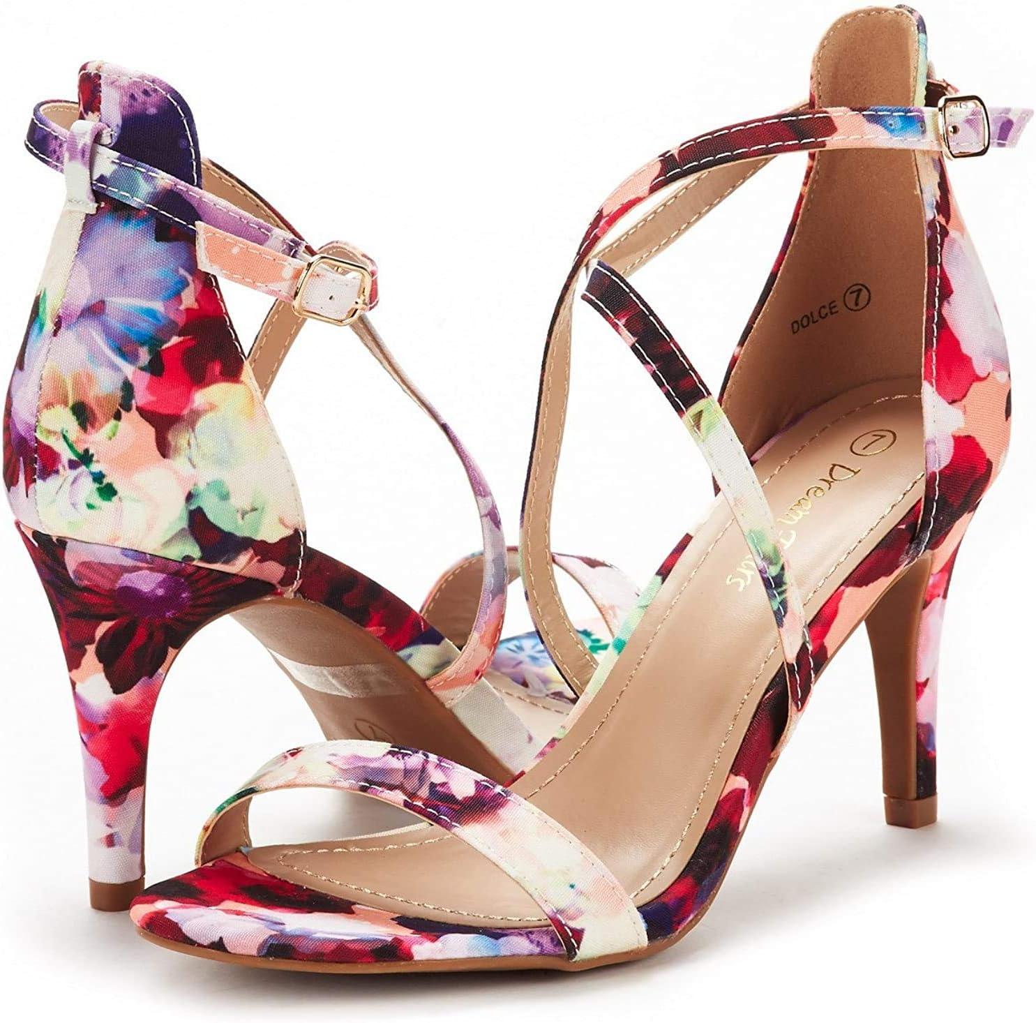 DREAM PAIRS Women’s DOLCE Fashion Stilettos Open Toe Pump Heel Sandals(Floral)