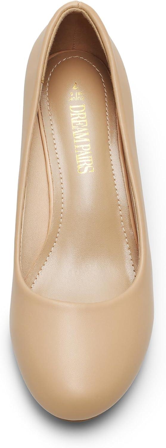 DREAM PAIRS Women’s Dress Comfortable Low Heel Pump Shoes(Nude-pu)