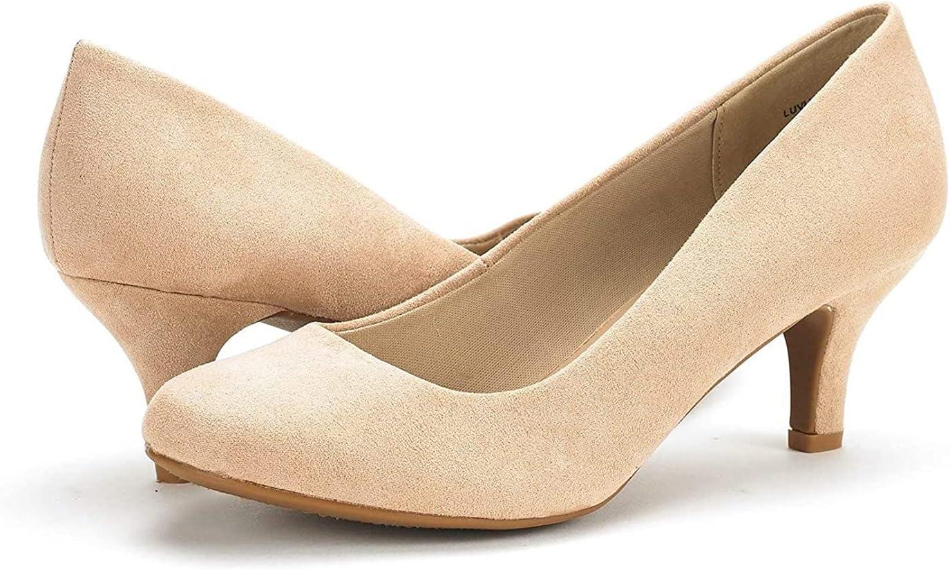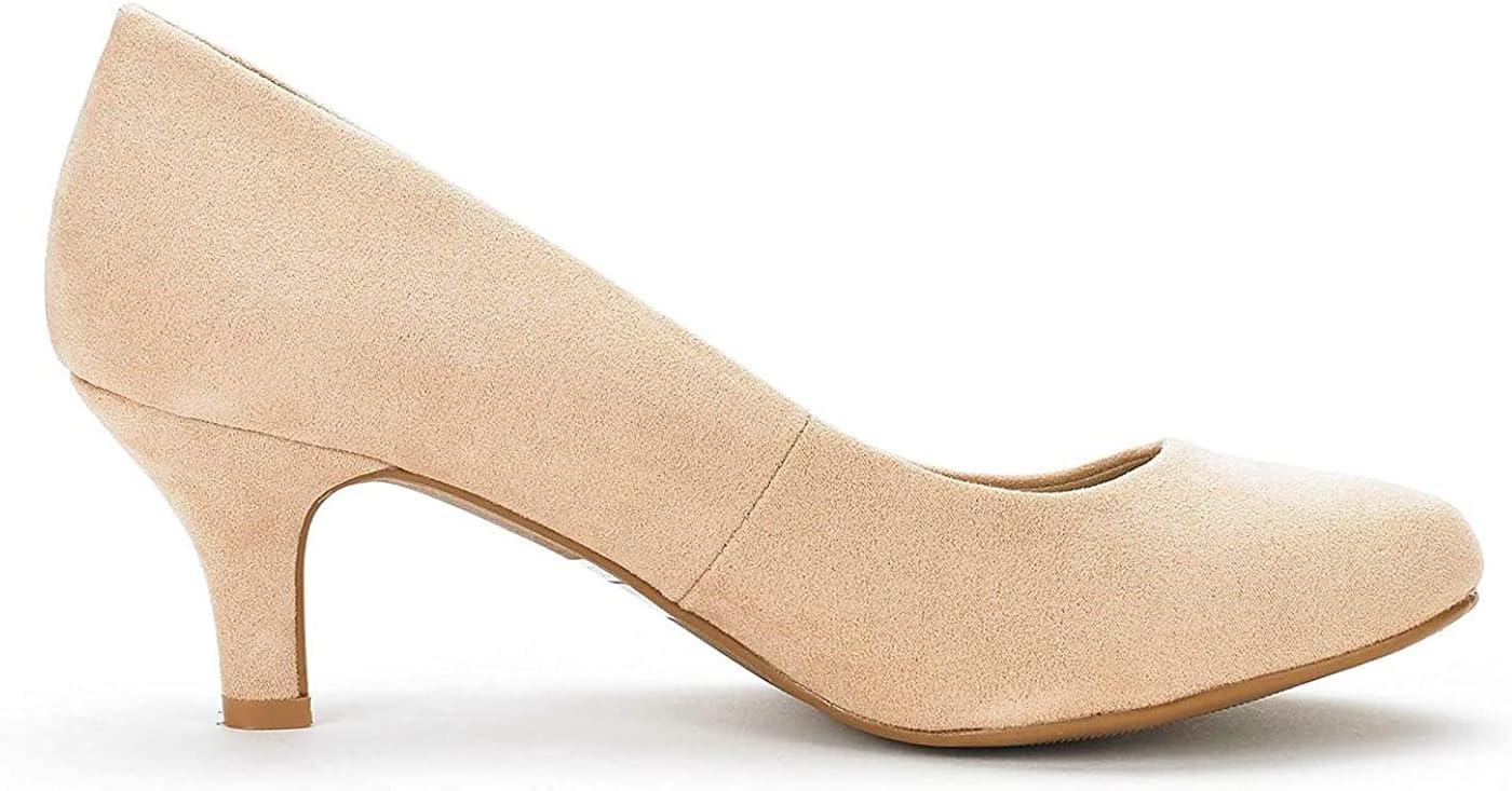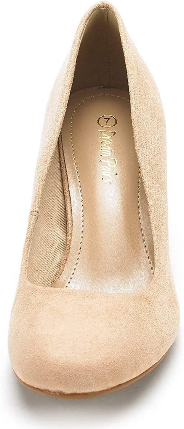 DREAM PAIRS Women’s Dress Comfortable Low Heel Pump Shoes(Nude/Suede)