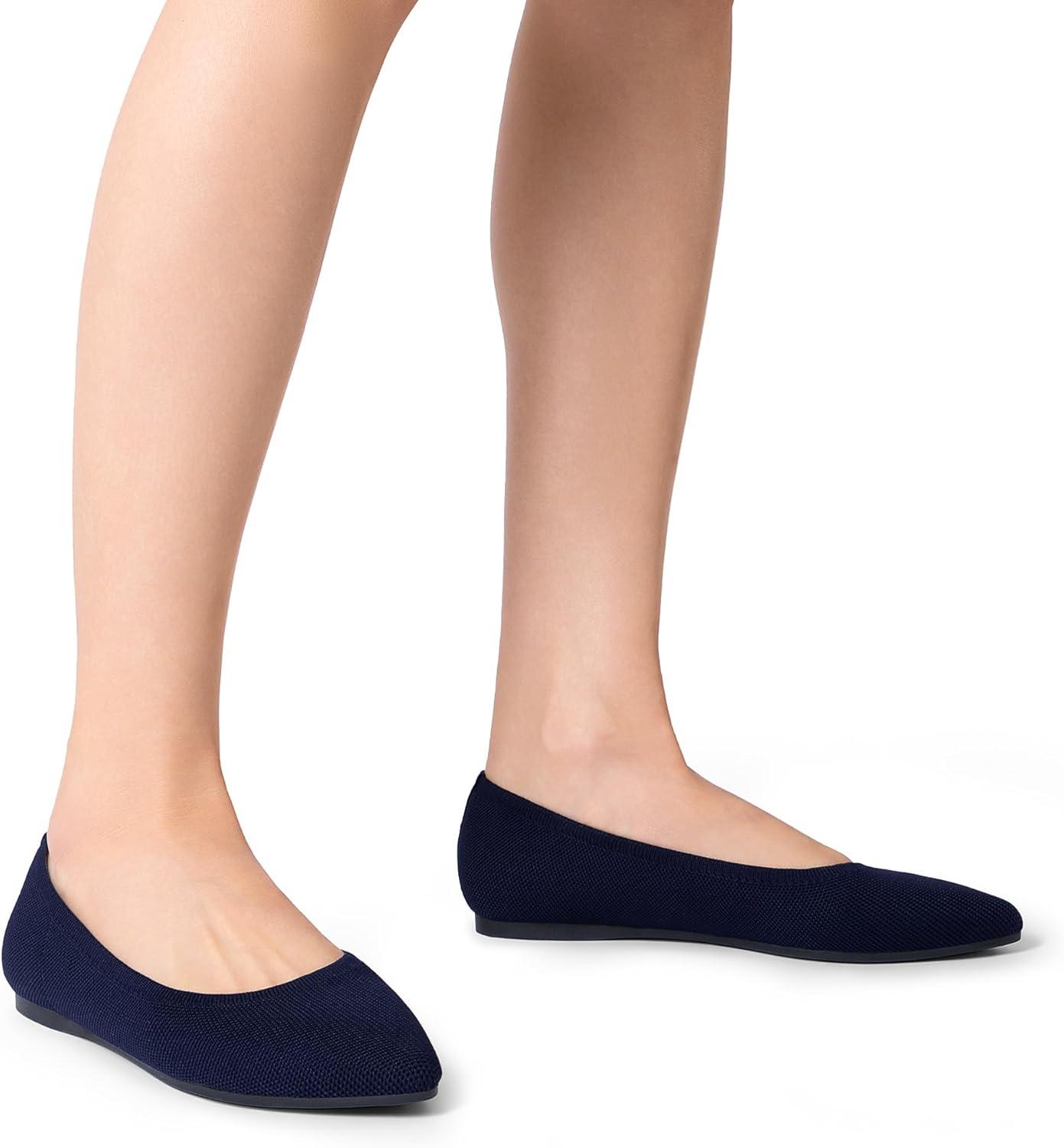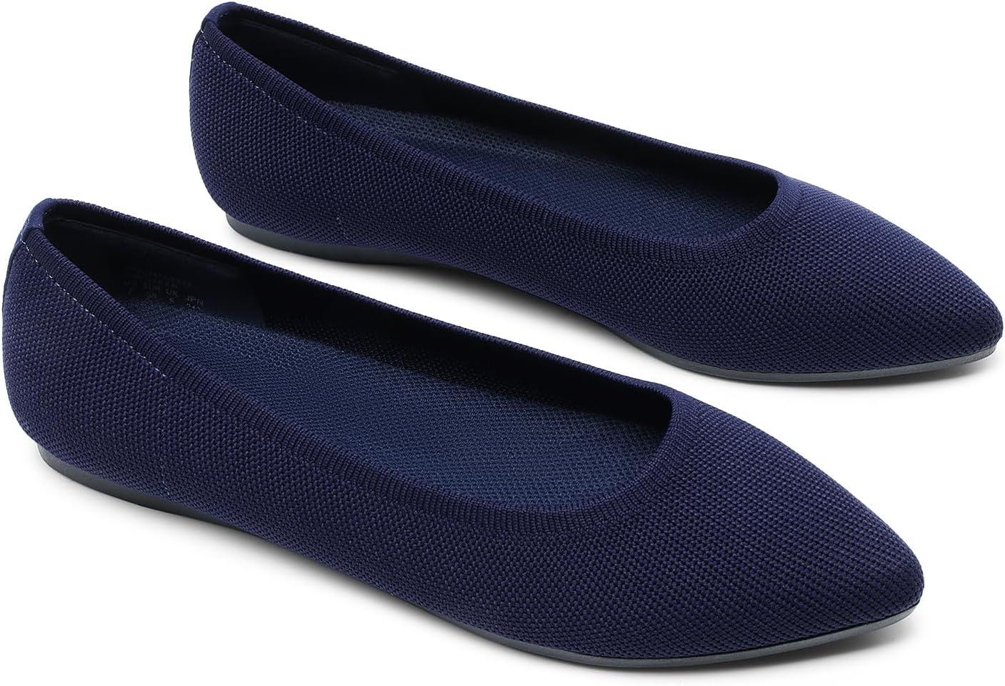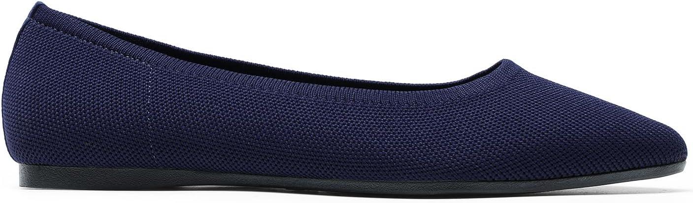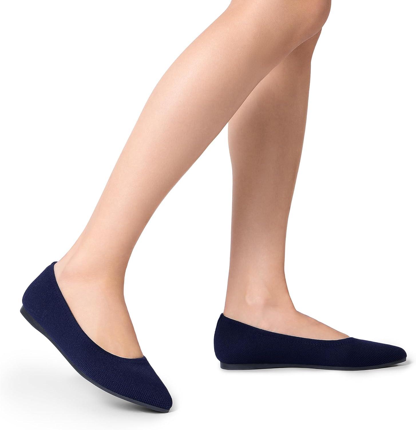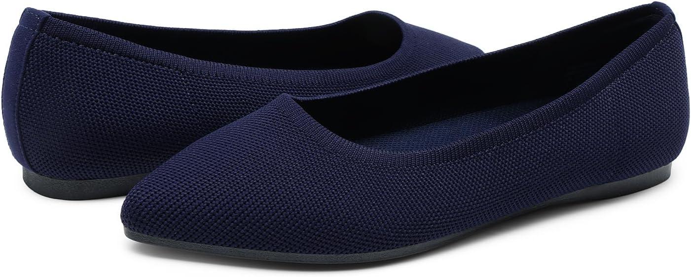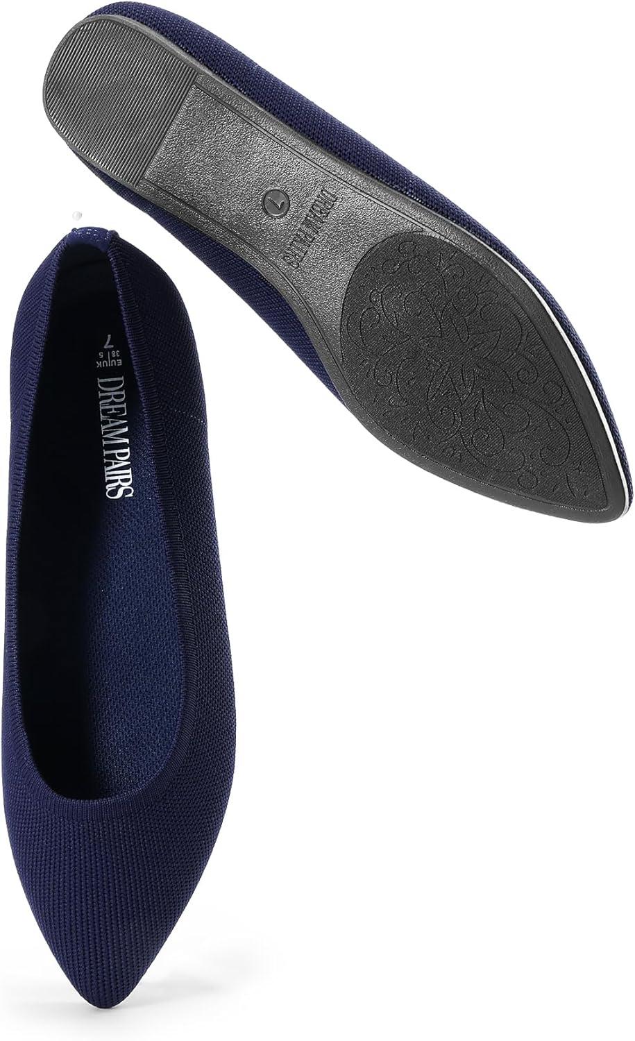 DREAM PAIRS Women’s Dress Pointed Toe Flats Ballet Comfort Soft Slip On Casual Flat Shoes for Work Office Business(Navy-knit)