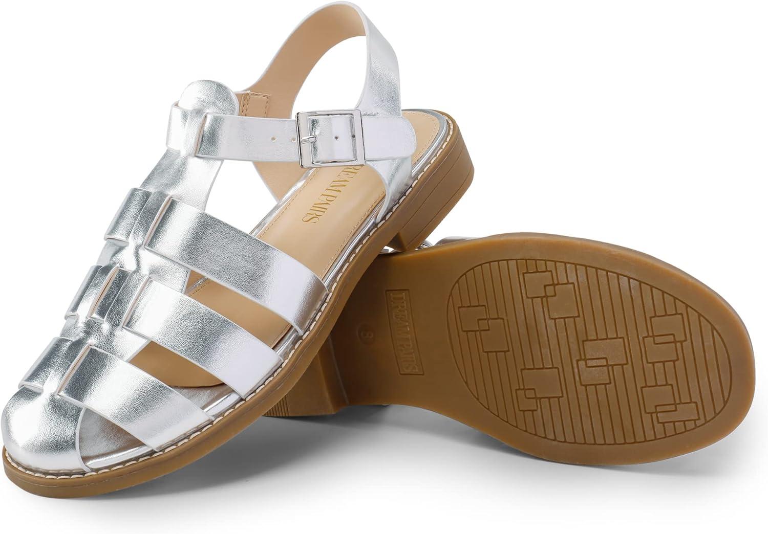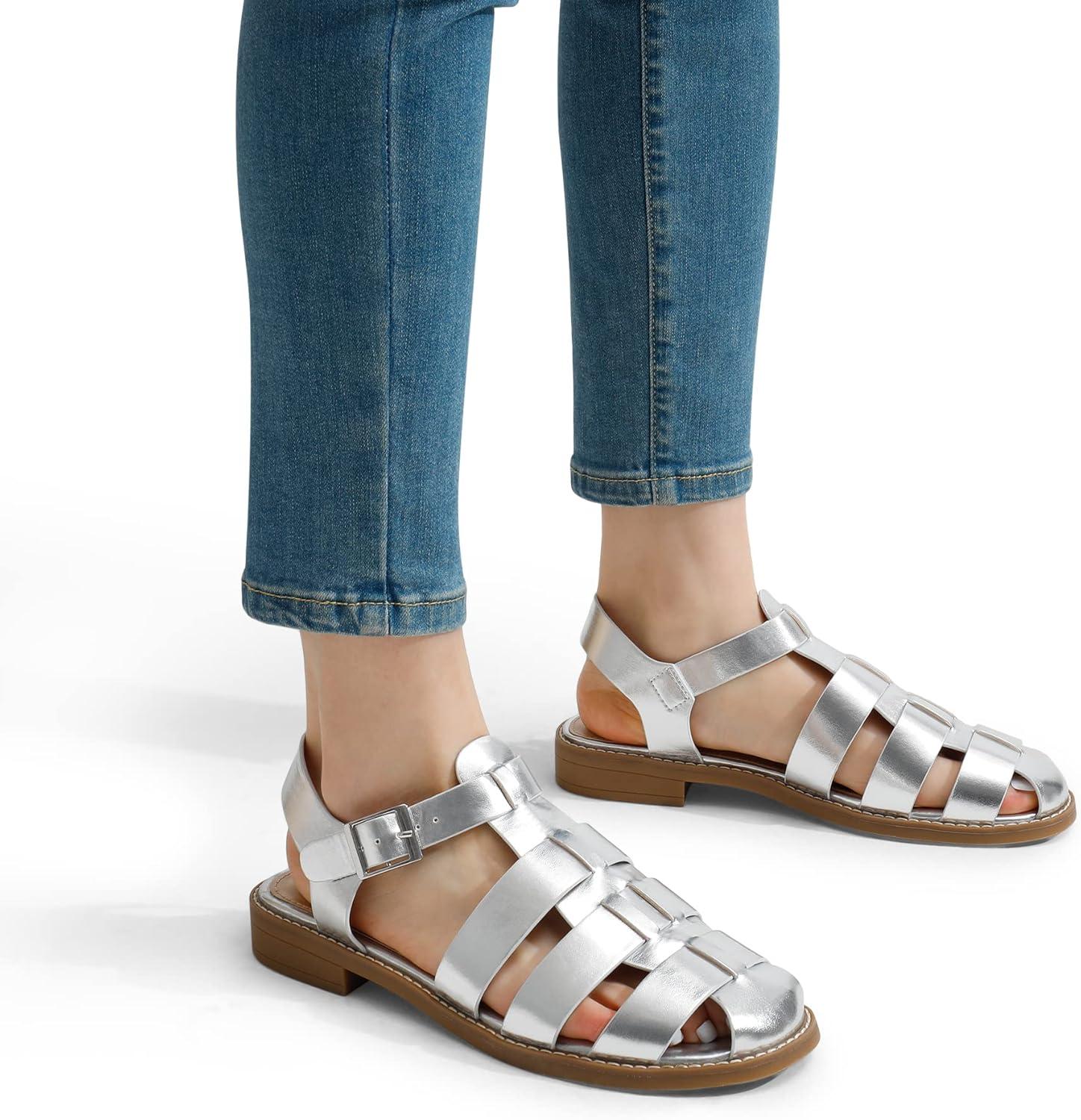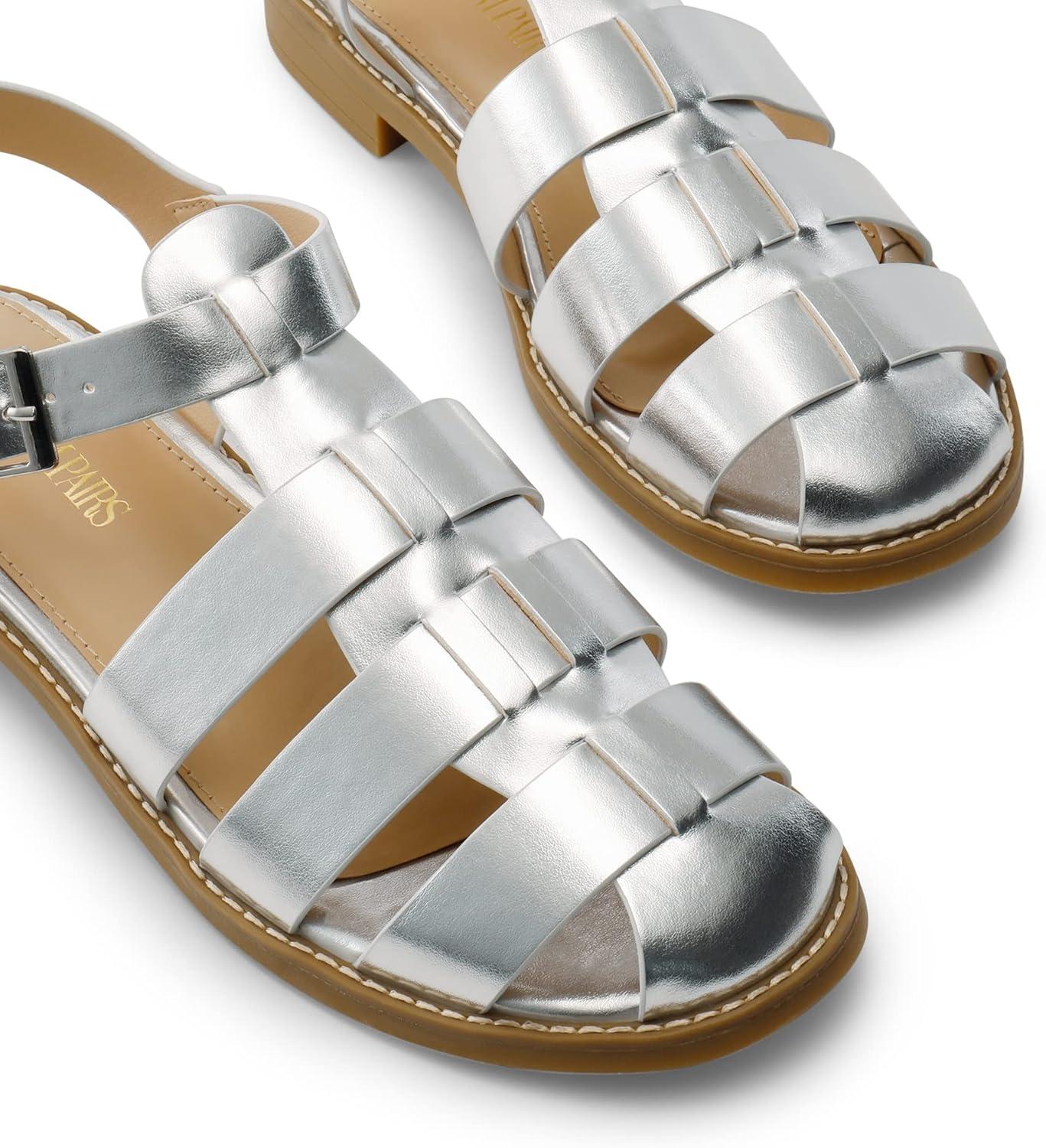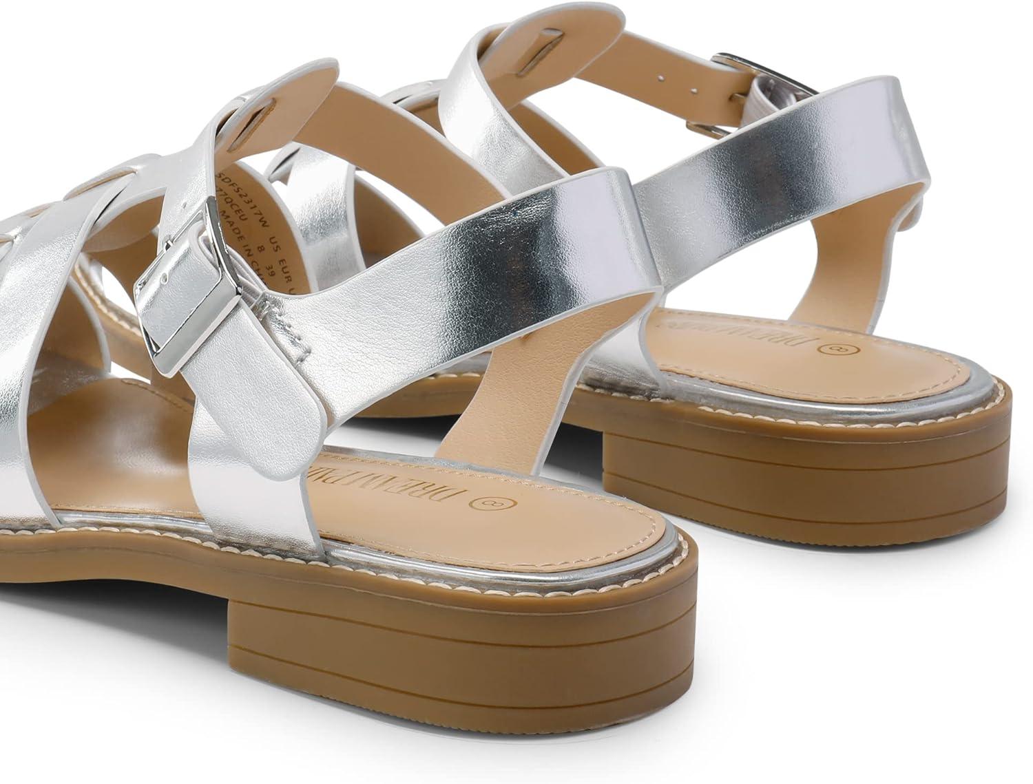 DREAM PAIRS Womens Fisherman Gladiator Braided Flat Sandal Cute Woven Strappy Closed Toe Shoes for Summer(Silver-pu)