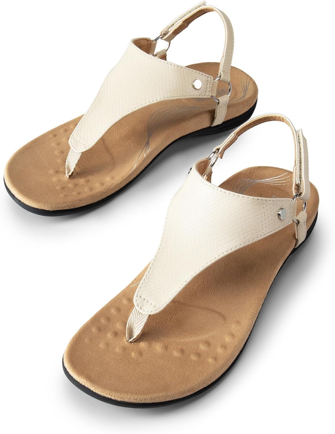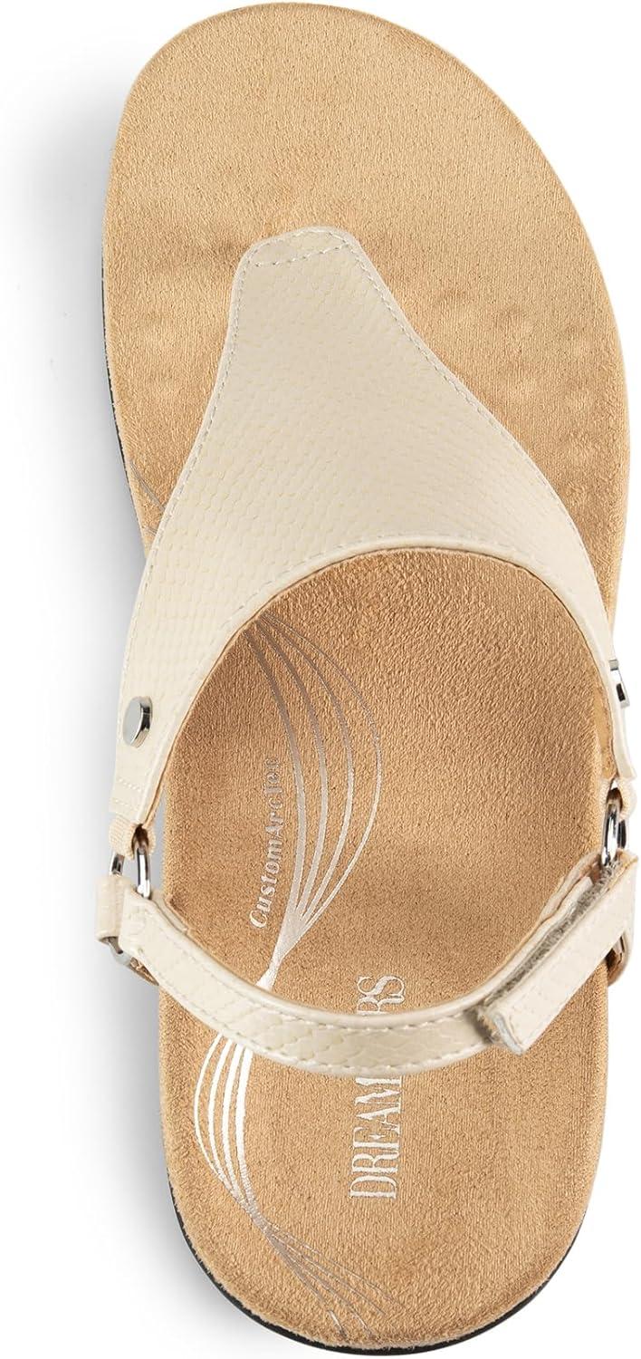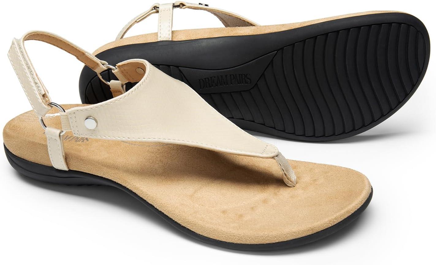 DREAM PAIRS Women’s Flat Sandals Arch Support Orthopedic Comfortable Soft Cushion Summer T-Strap Walking Thong Sandals(Nude)