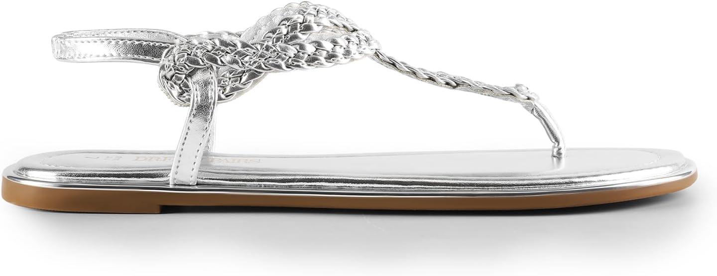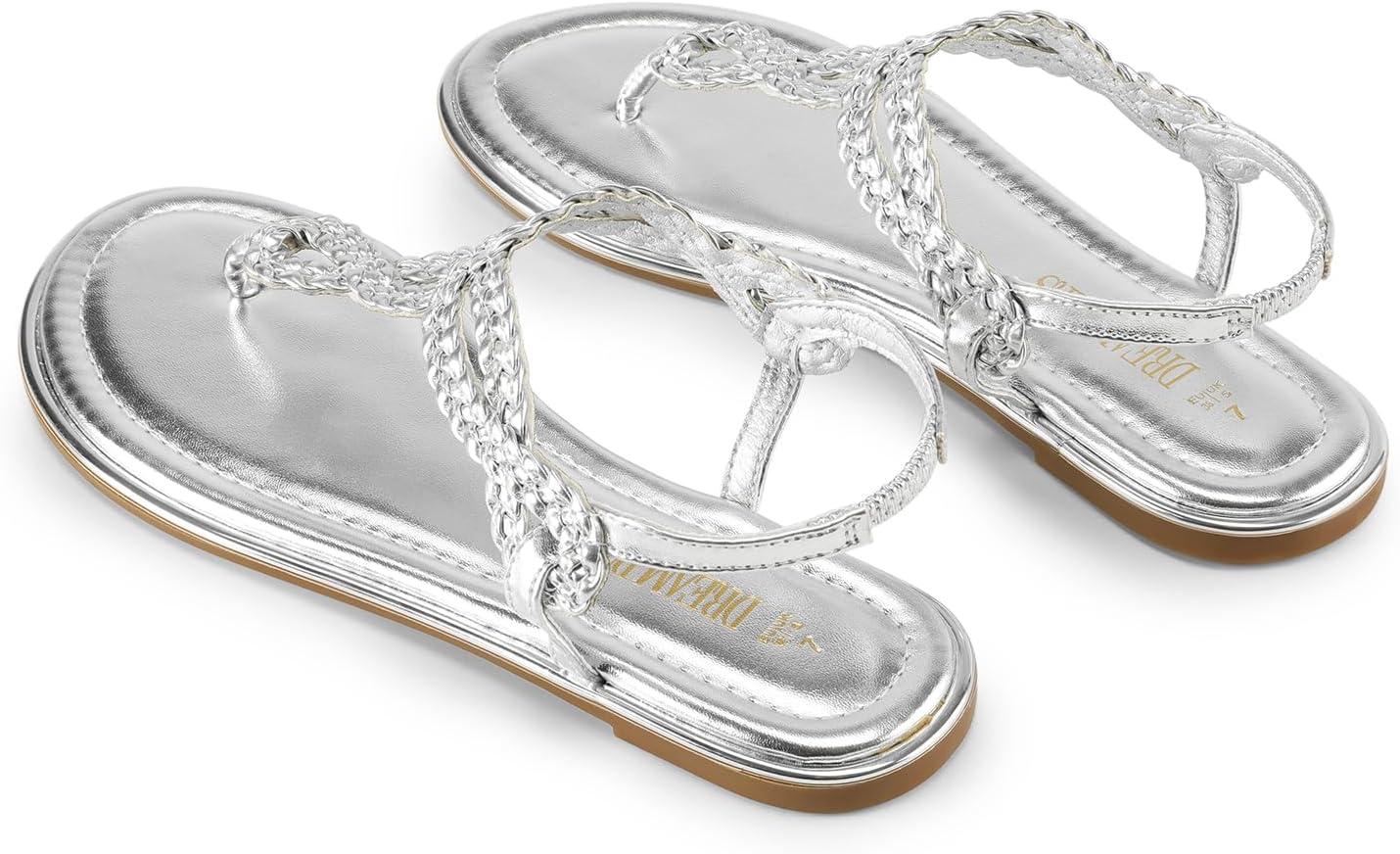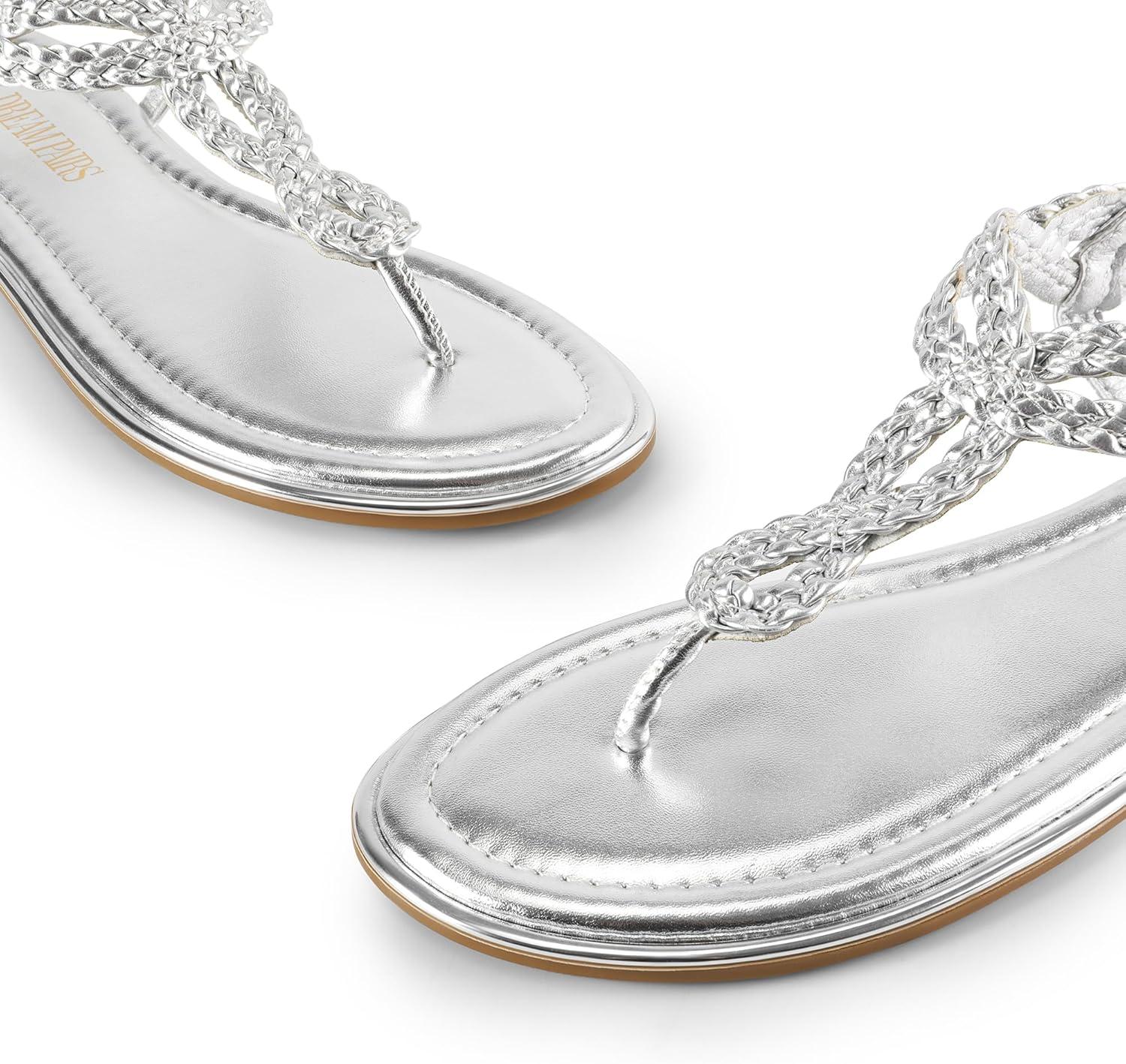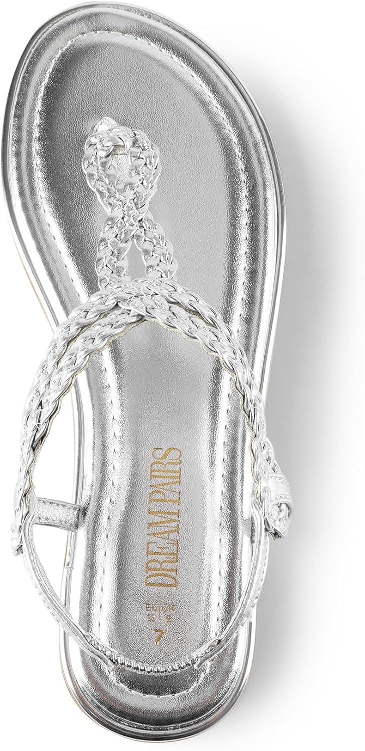 DREAM PAIRS Women’s Flat Sandals Dressy Summer Stappy Comfortable Ankle Elastic T-Strap Beach Thong Sandals(Silver)