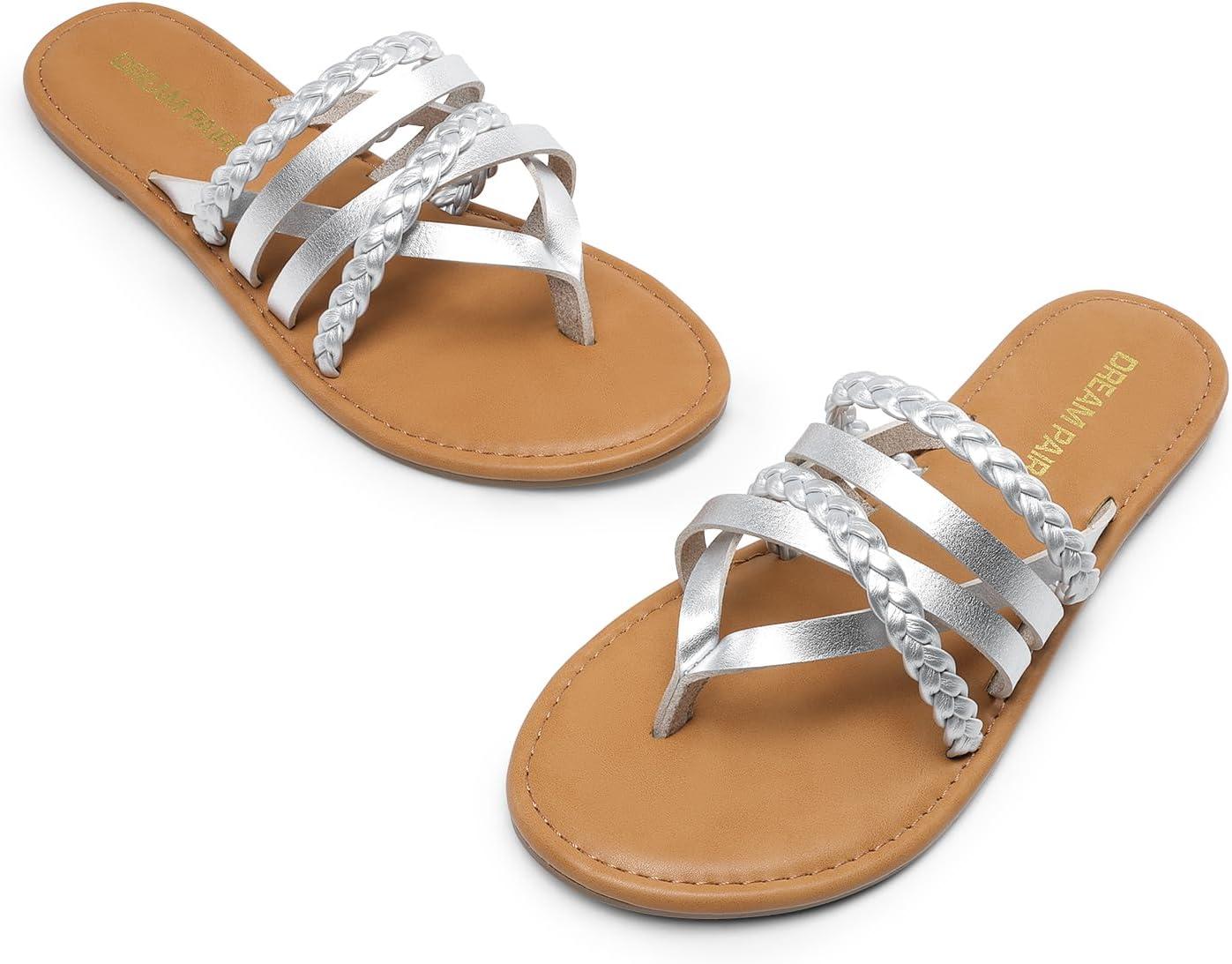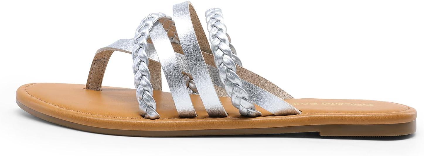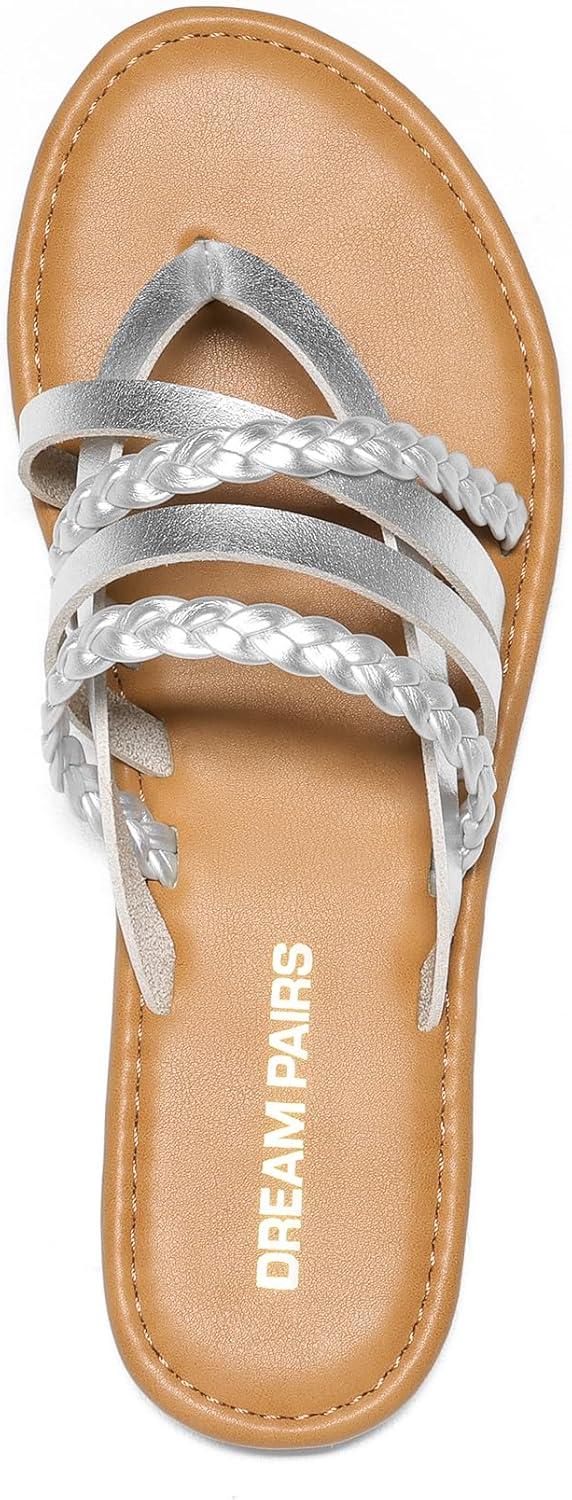 DREAM PAIRS Women’s Flip Flops Round Toe Multi Strap lightweight Summer Beach Flat Casual Thong Sandals(Silver)