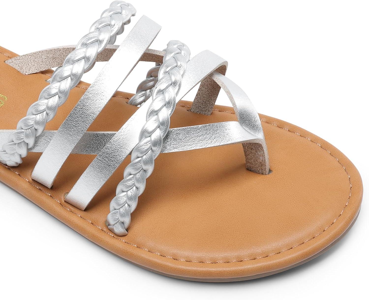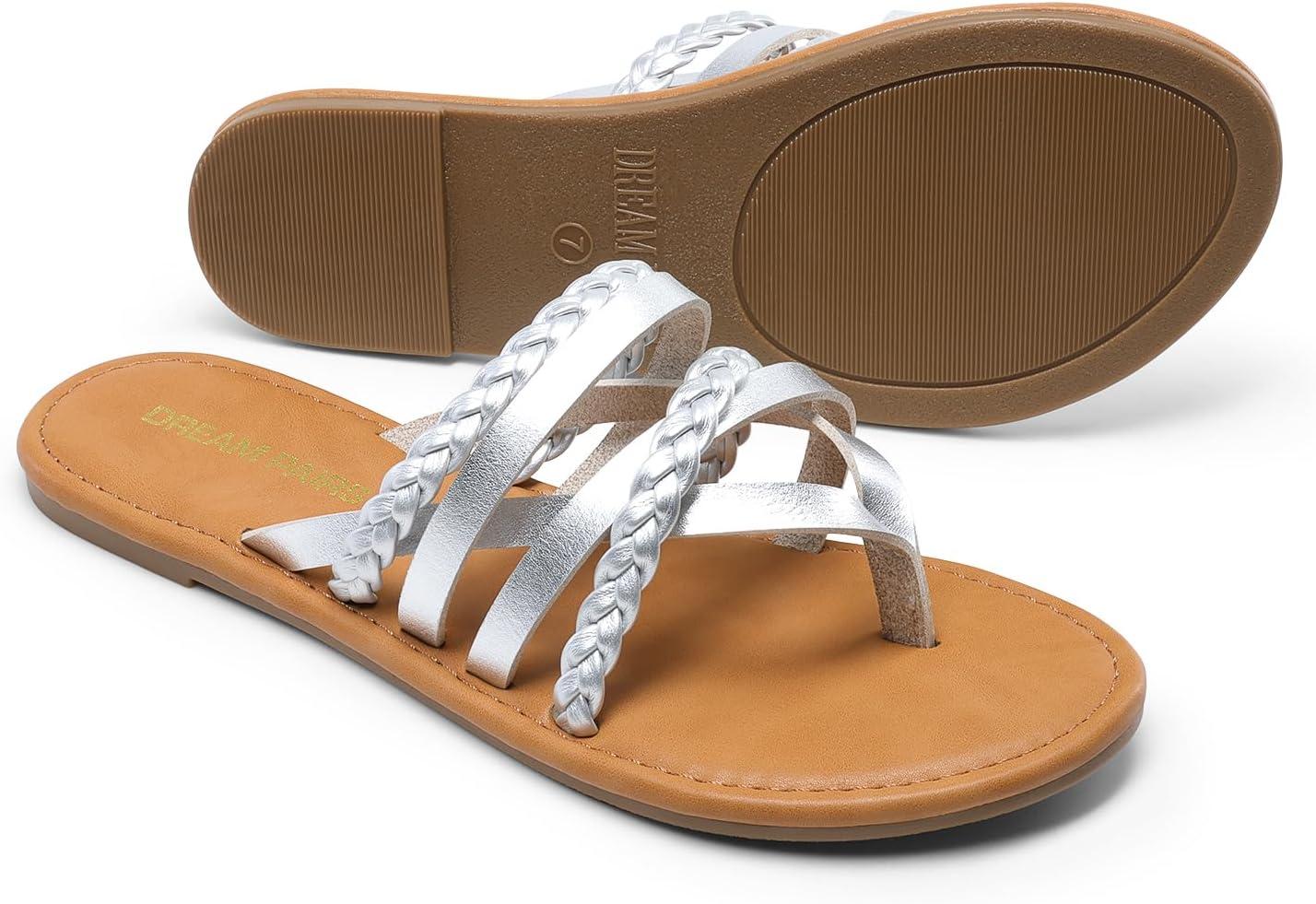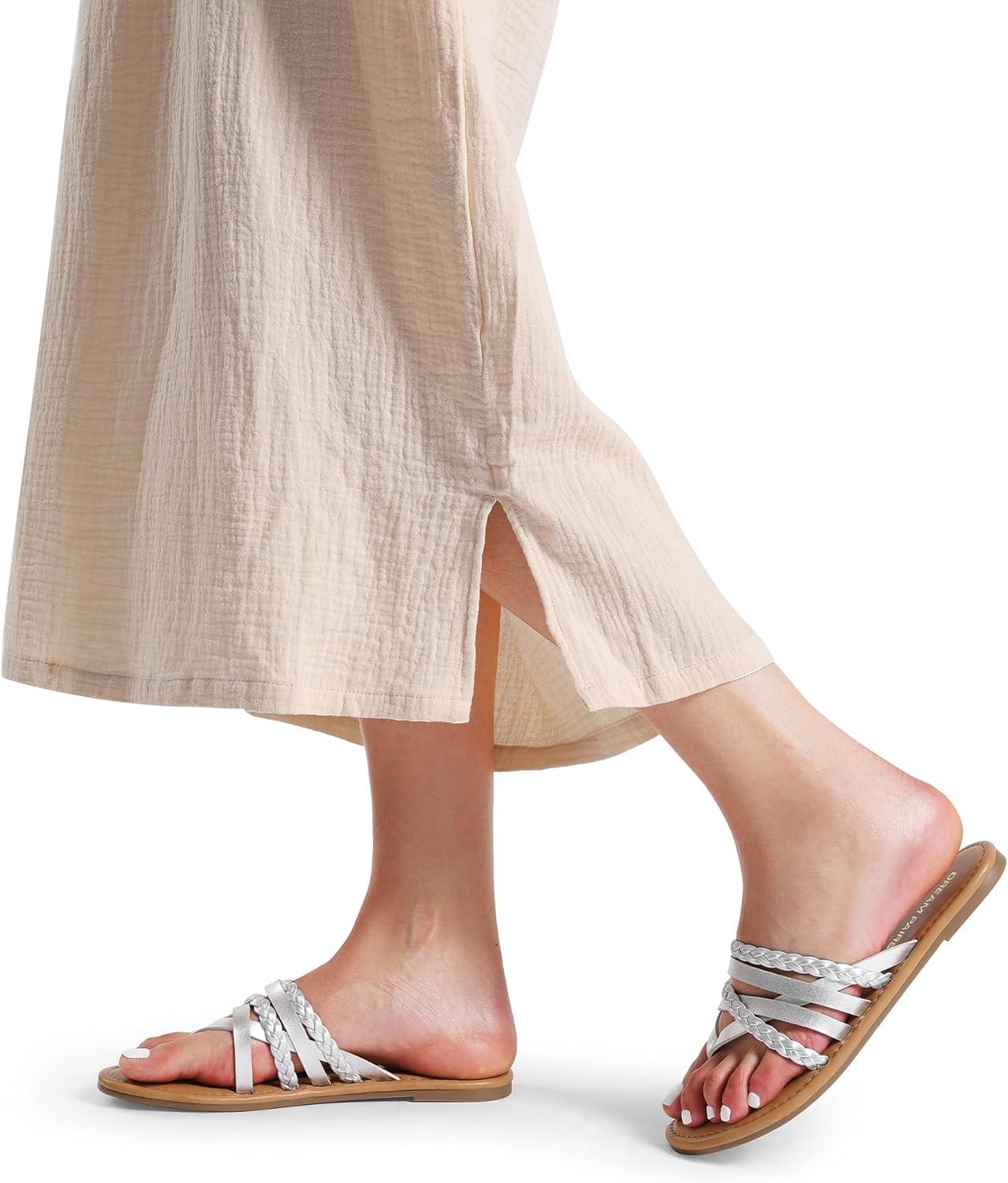 DREAM PAIRS Women’s Flip Flops Round Toe Multi Strap lightweight Summer Beach Flat Casual Thong Sandals(Silver)