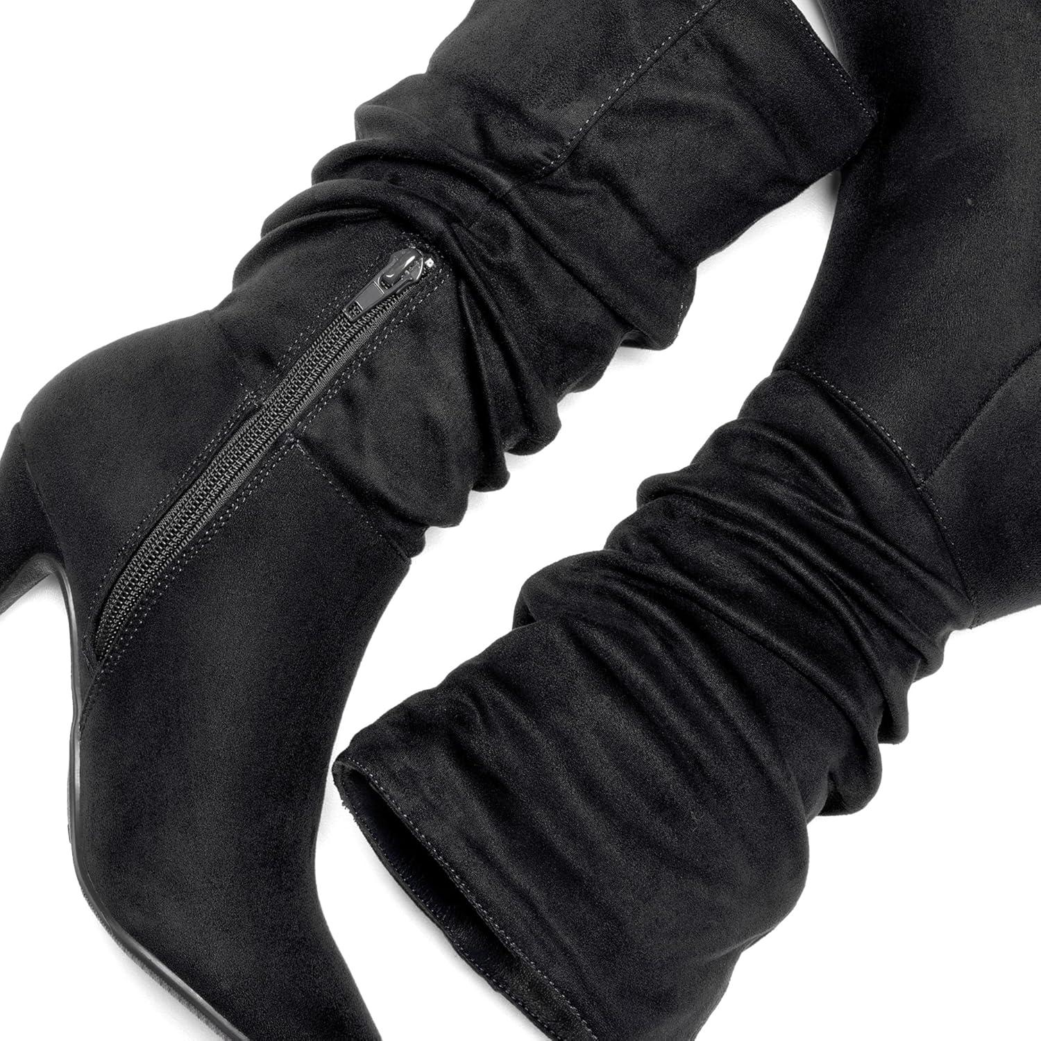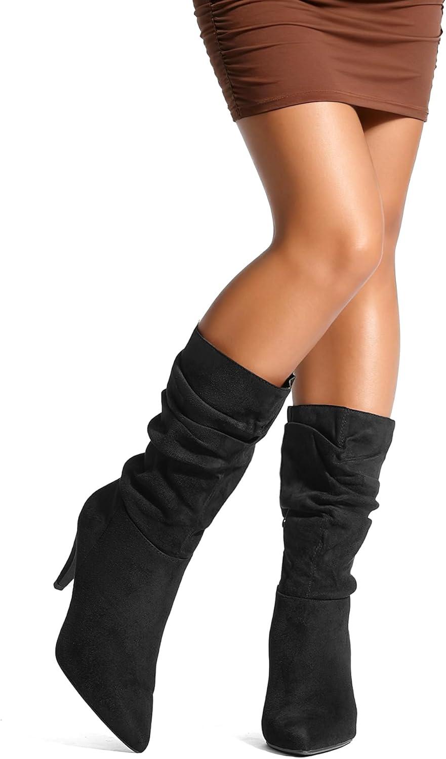 DREAM PAIRS Women’s High Heel Mid Calf Boots Slouchy Pointed Toe Fall Boots(Black/K)