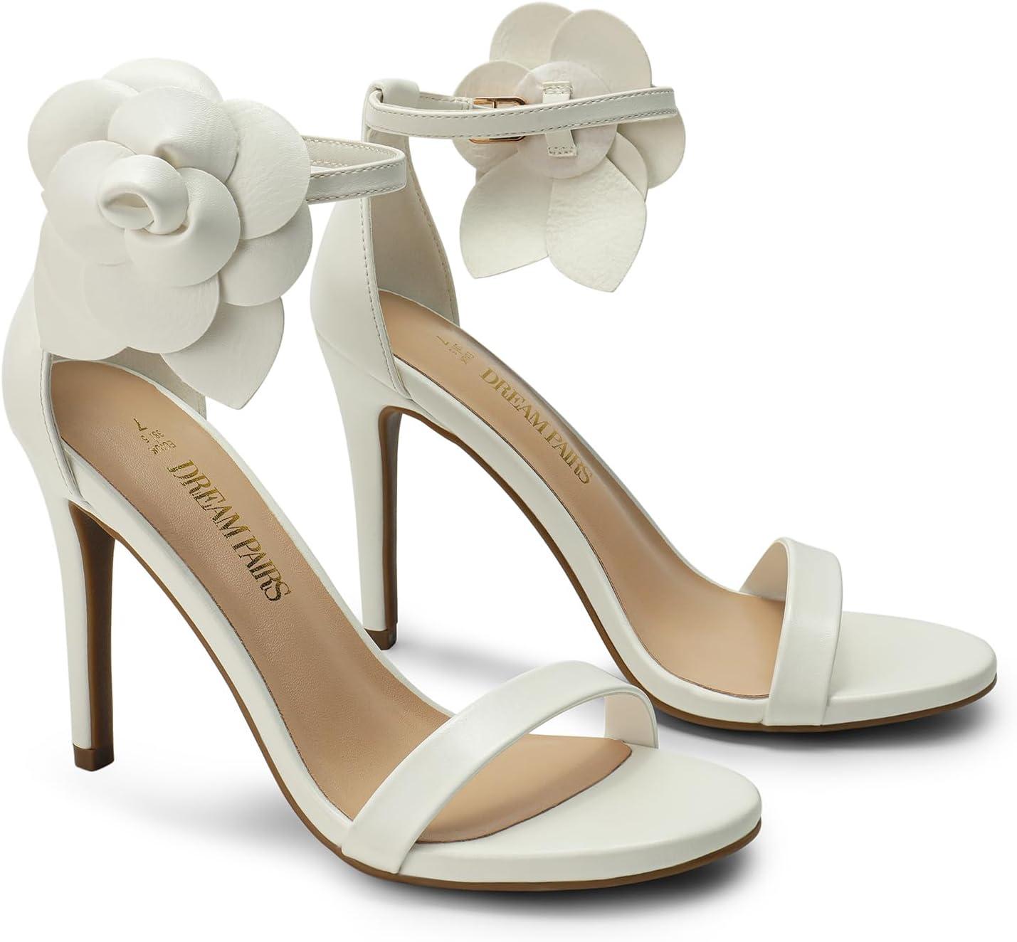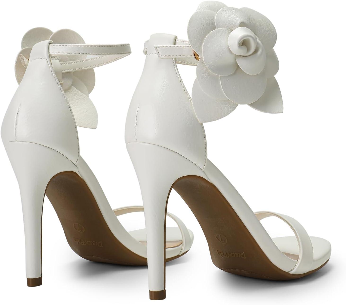 DREAM PAIRS Women’s High Heels Flower Ankle Strap Stilettos Round Open Toe Dressy Sexy Sandals(White-pu)