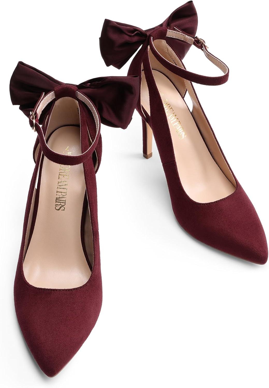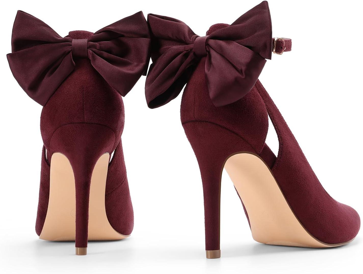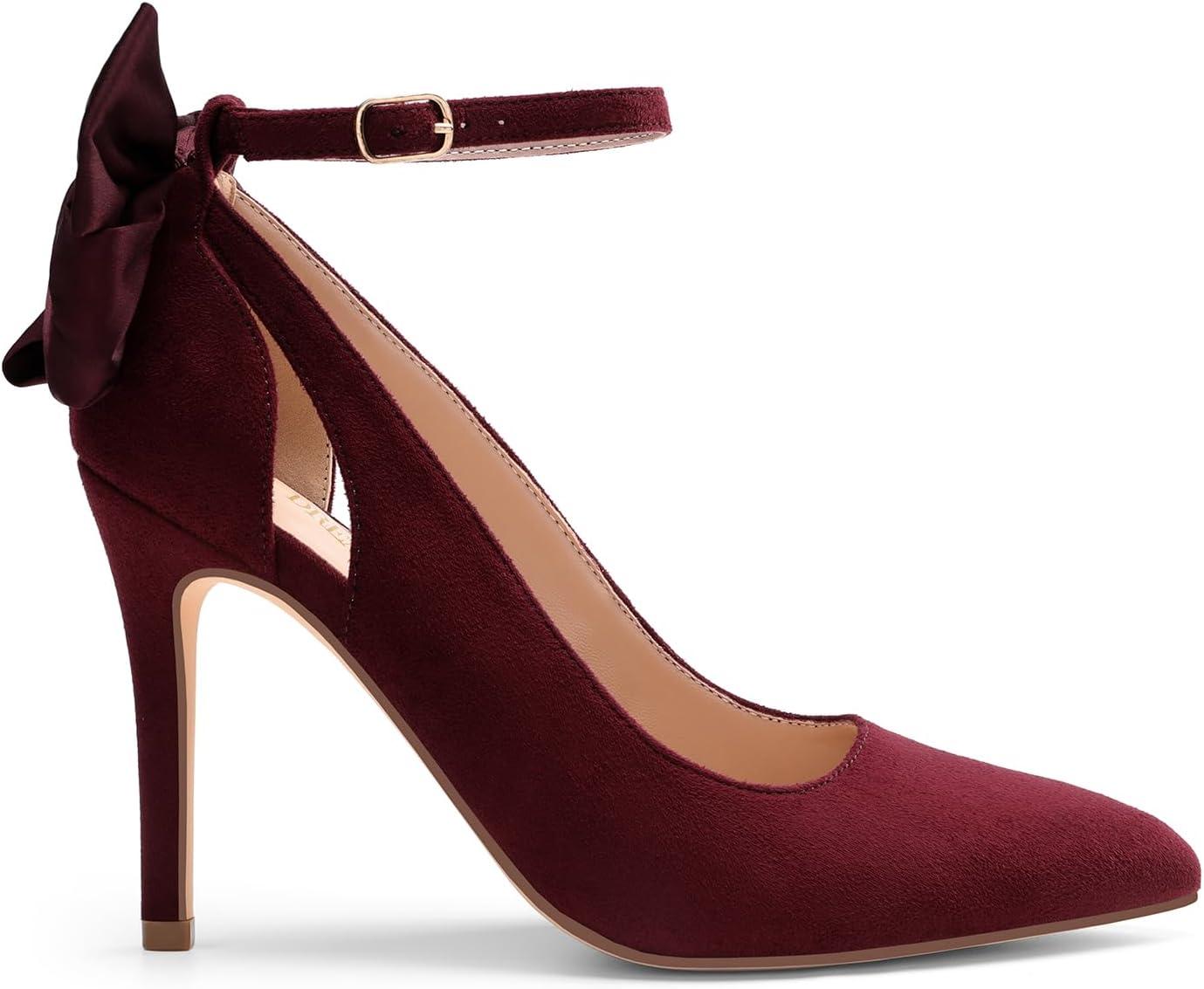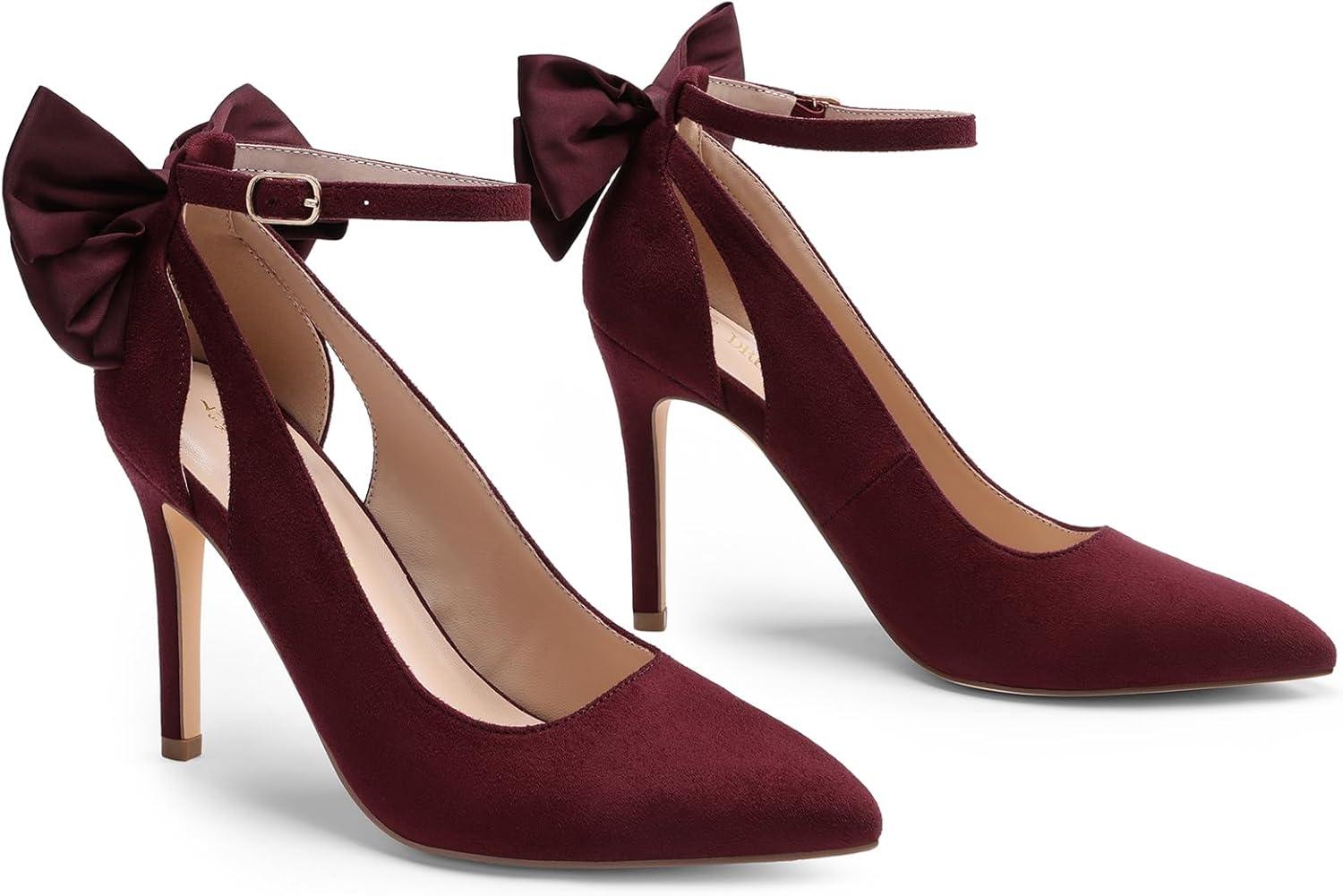 DREAM PAIRS Women’s High Heels Stiletto Strappy Pointed Toe Bow Dress Shoes Sexy Party Wedding Pumps(Burgundy Suede)