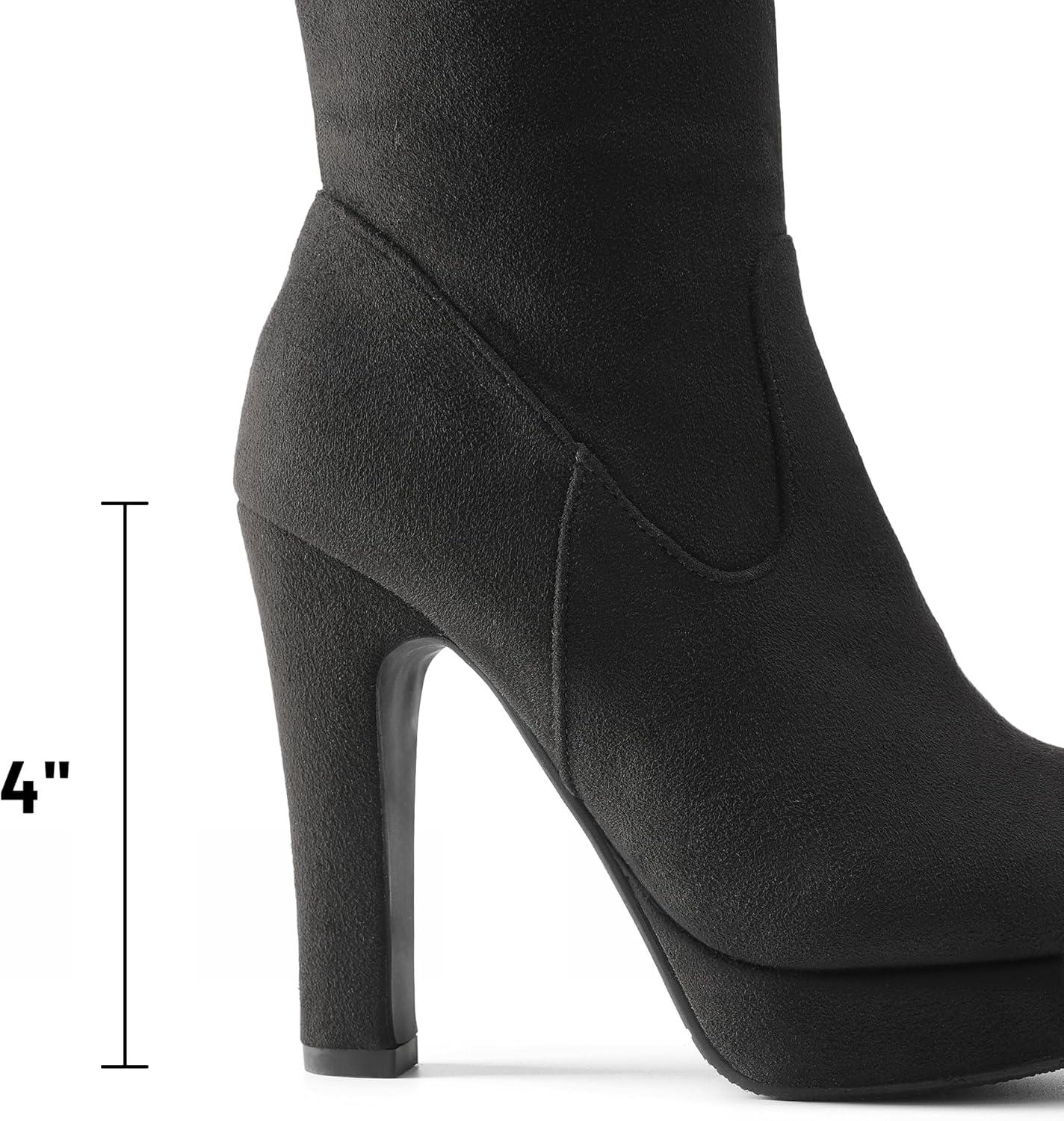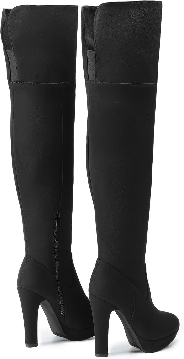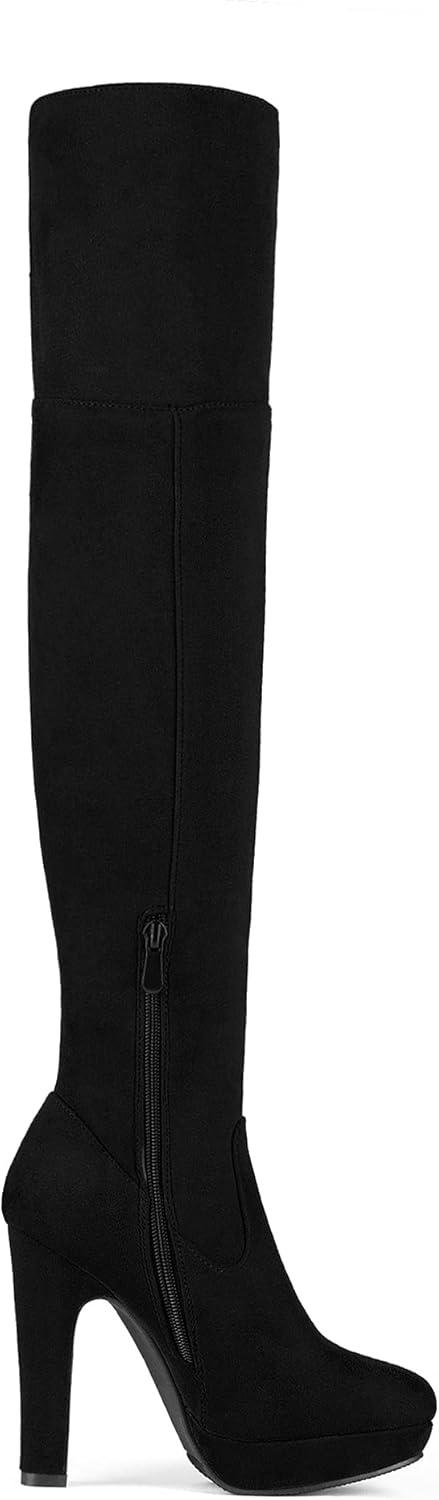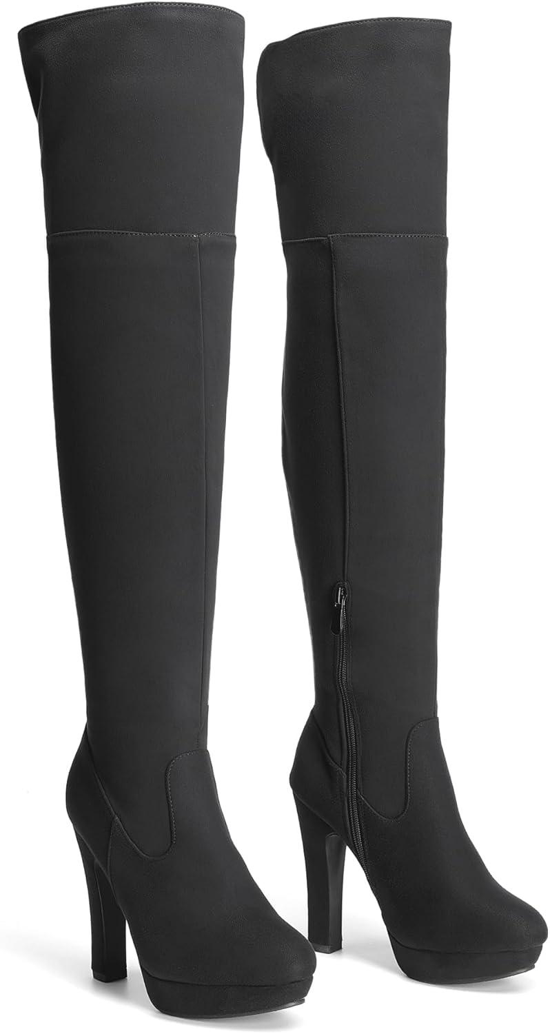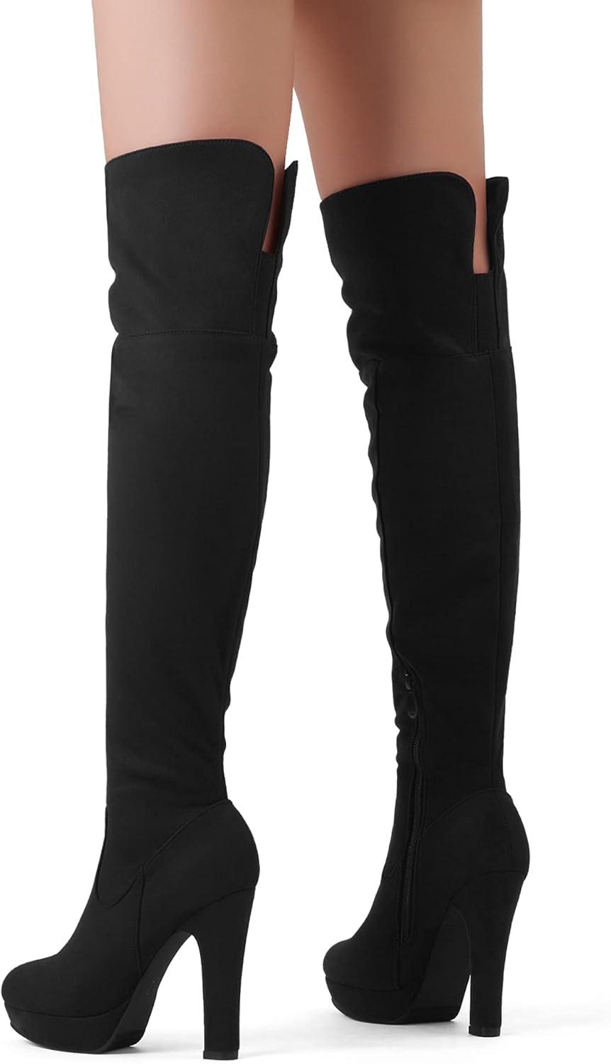 DREAM PAIRS Women’s HIGHPLAT Black Chunky Thigh High Over The Knee High Heel Boots(Black)
