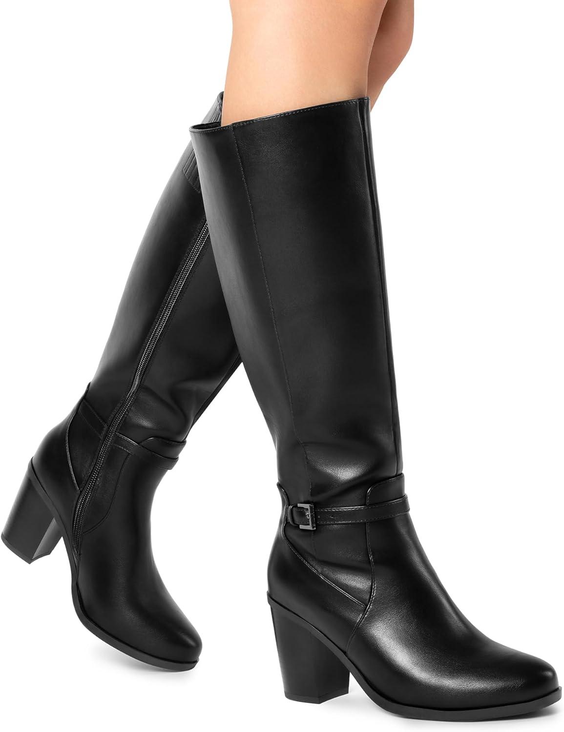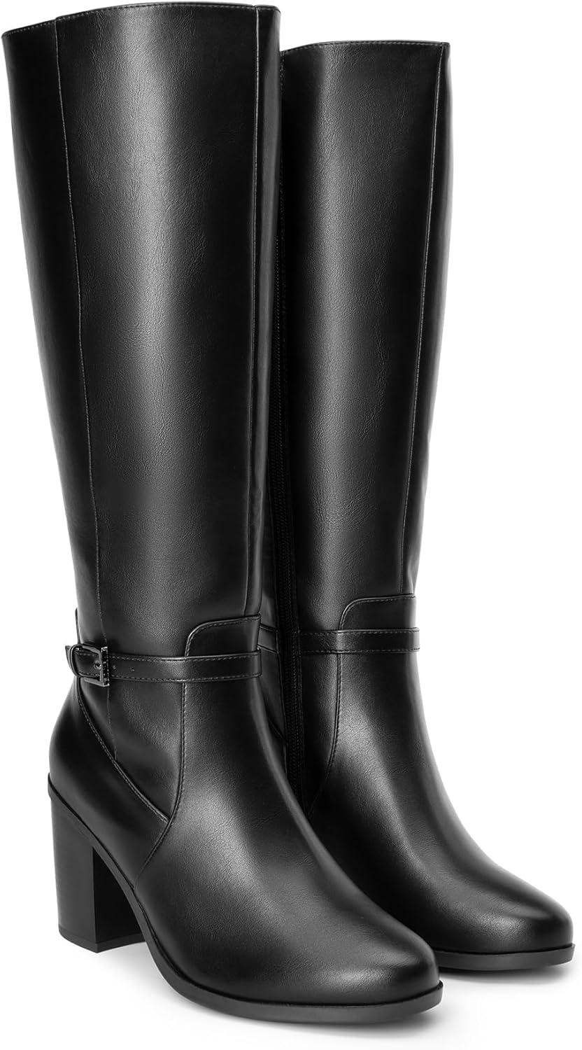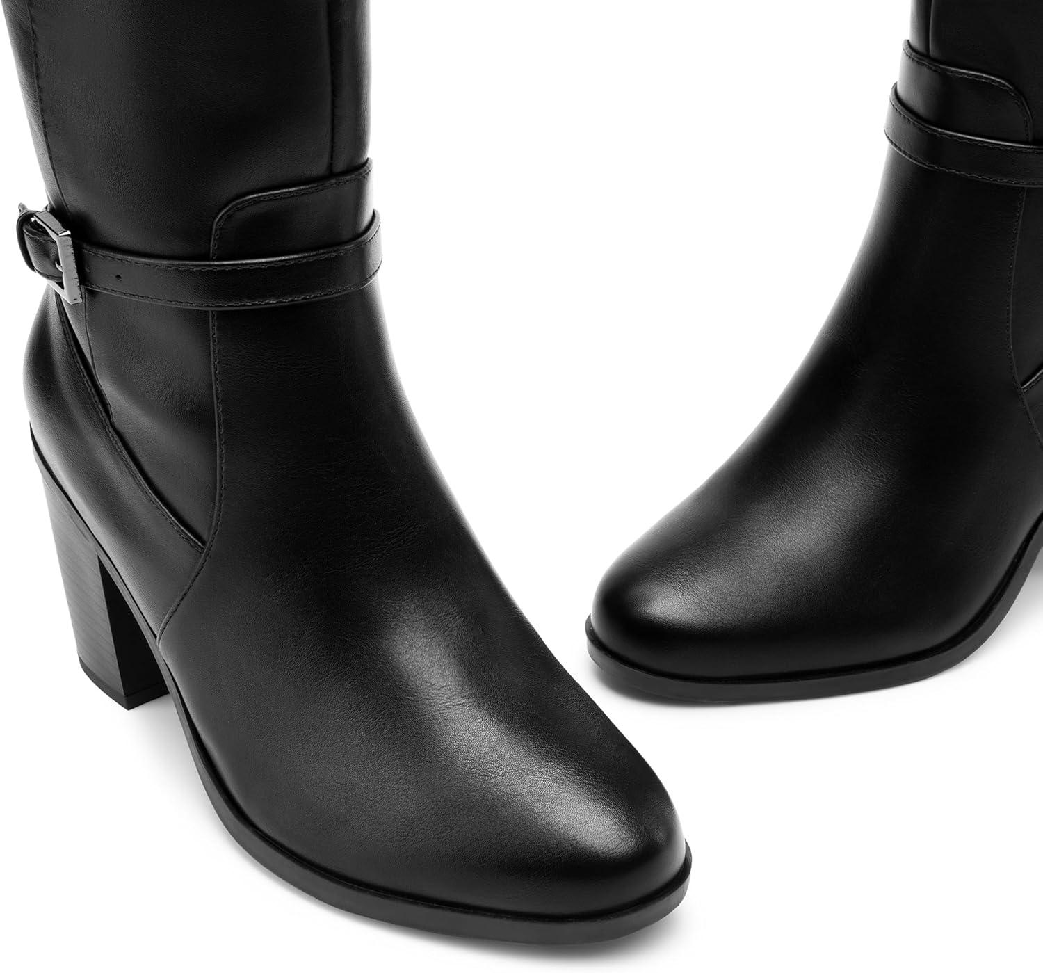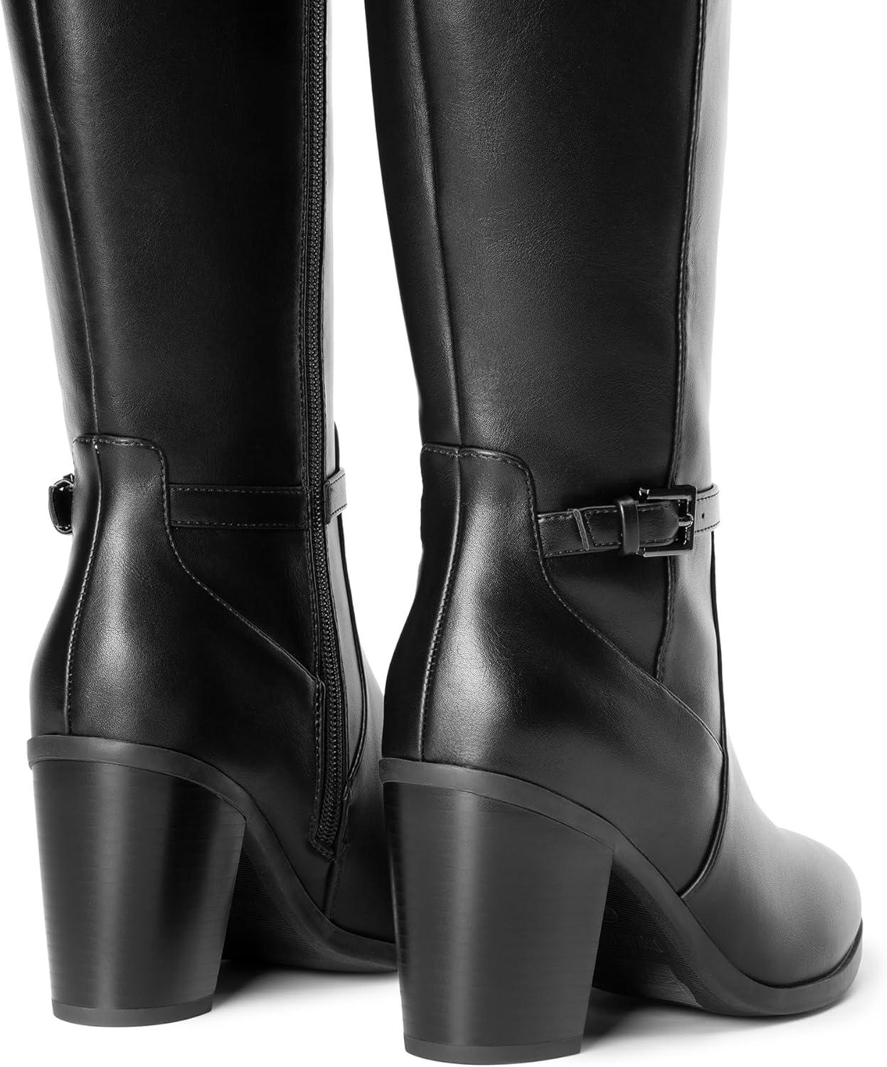 DREAM PAIRS Women’s Knee-High Boots Comfortable Chunky Block Heel Side Zipper(Black-pu)