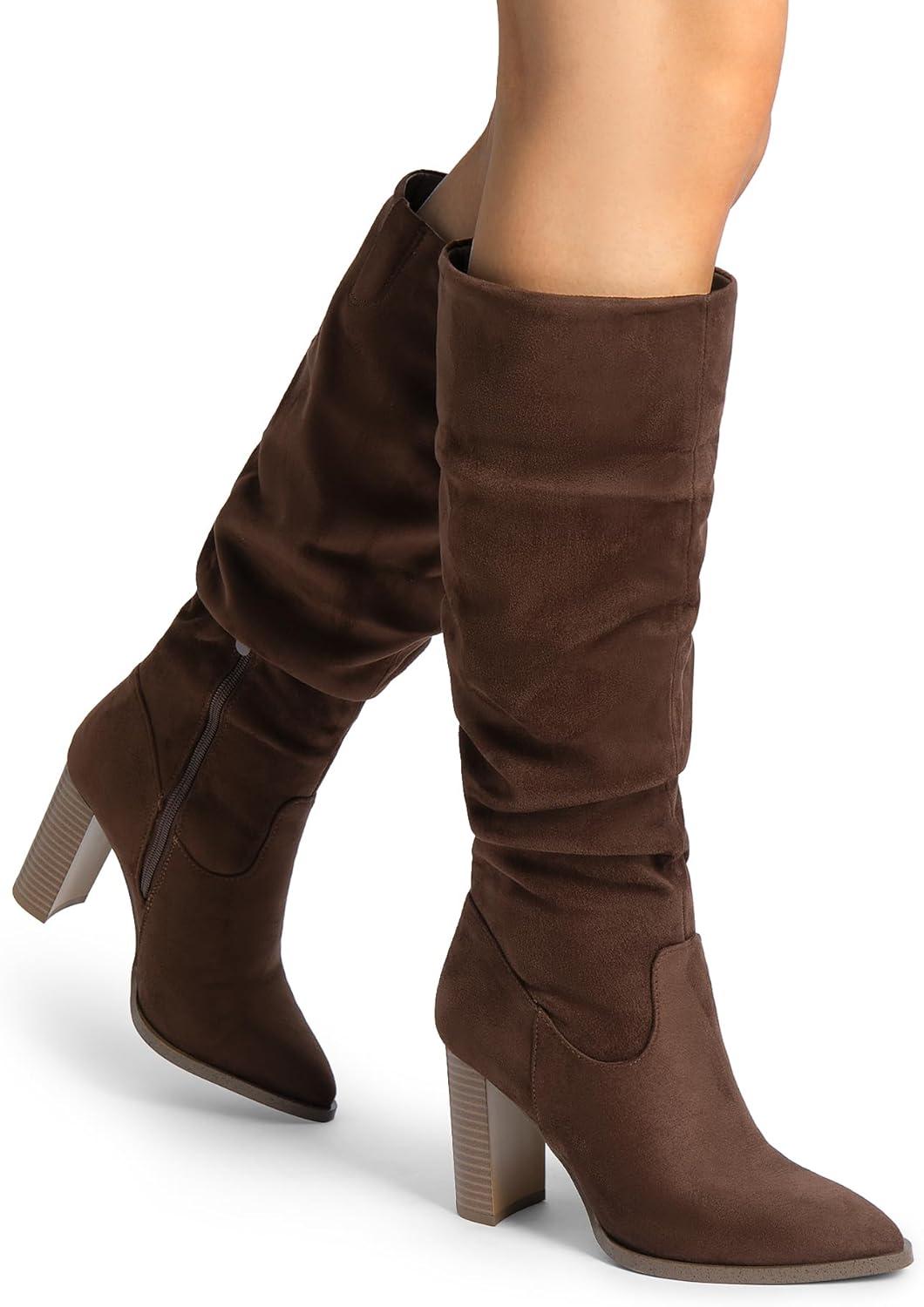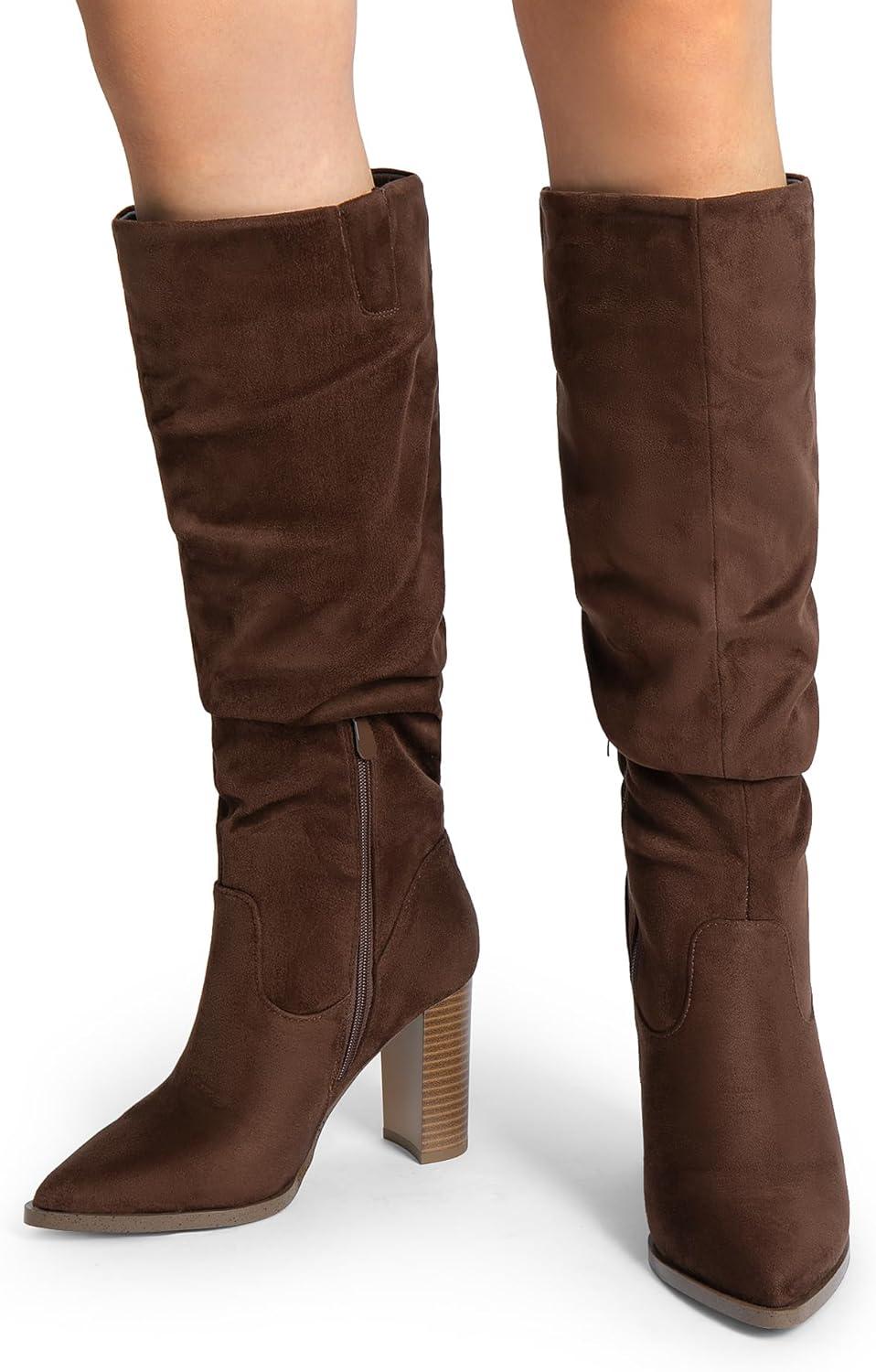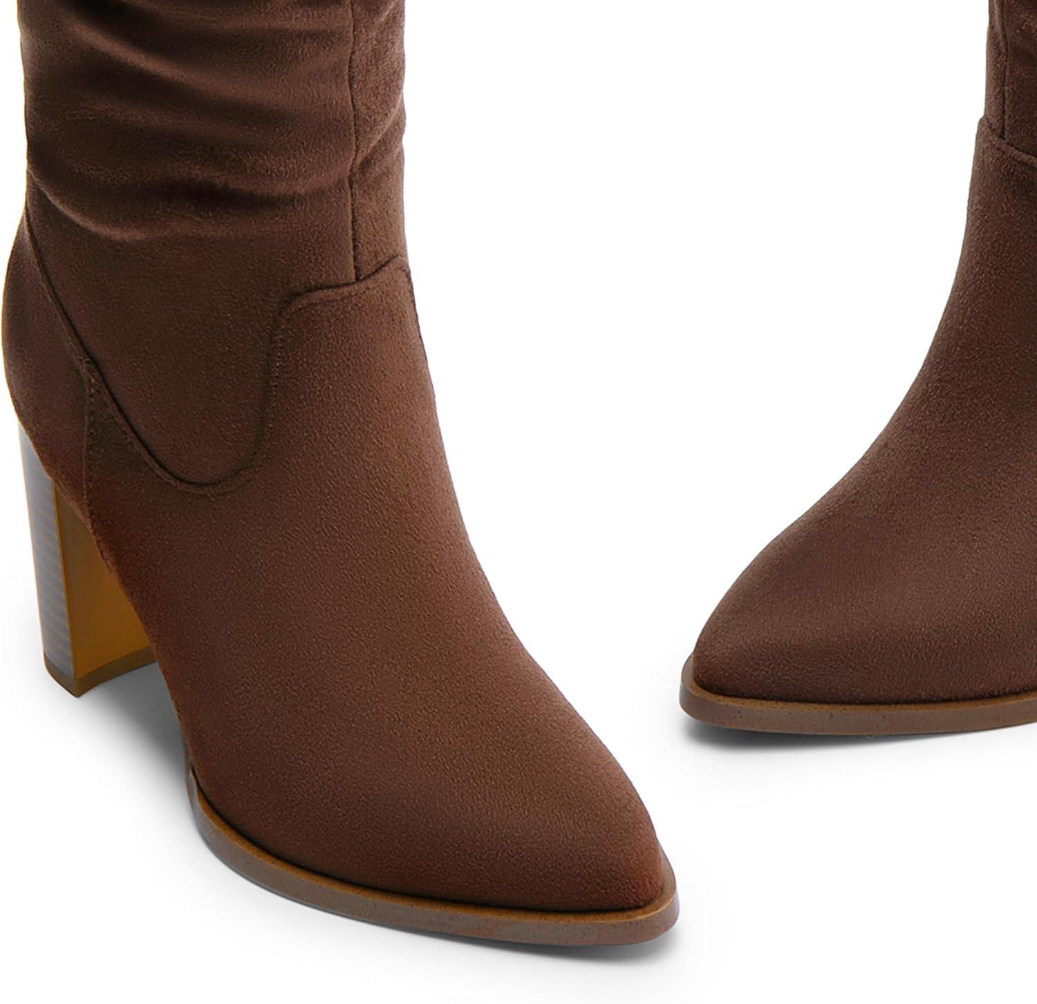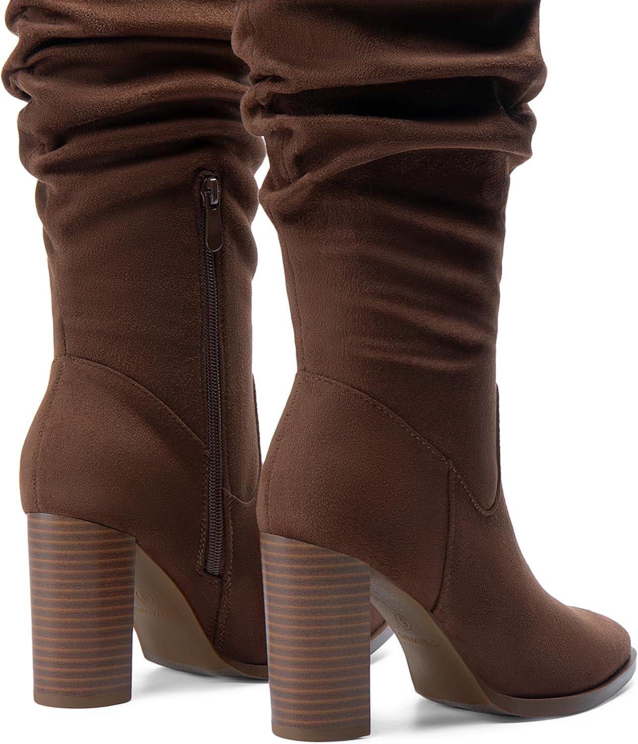 DREAM PAIRS Women’s Knee High Boots Pointed Toe Chunky Block Heel Suede Boots Comfortable for Women with Side Zipper Fashion Slouchy Tall Boots(Dark Brown)