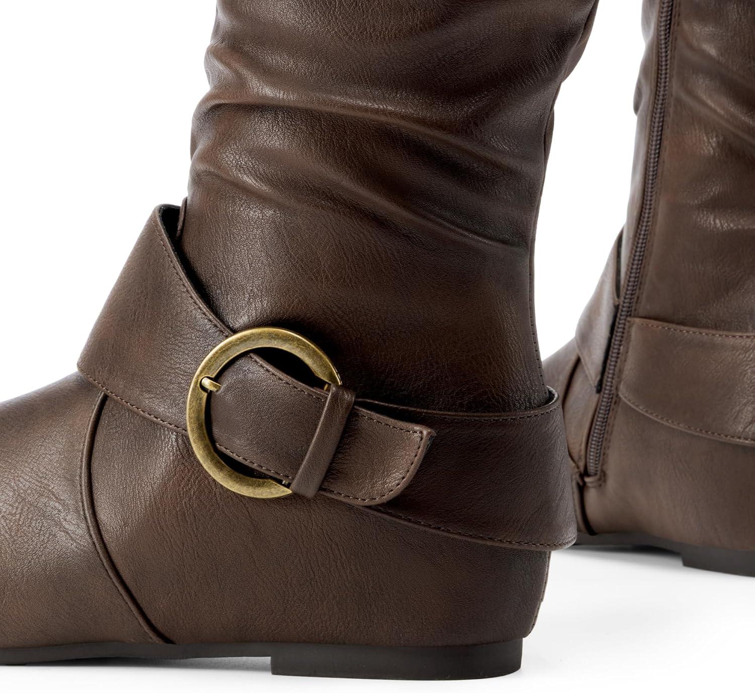 DREAM PAIRS Women’s Knee High Low Hidden Wedge Boots Suede Faux Fur Lining Side Zipper Knee High Buckle Boots(Brown)