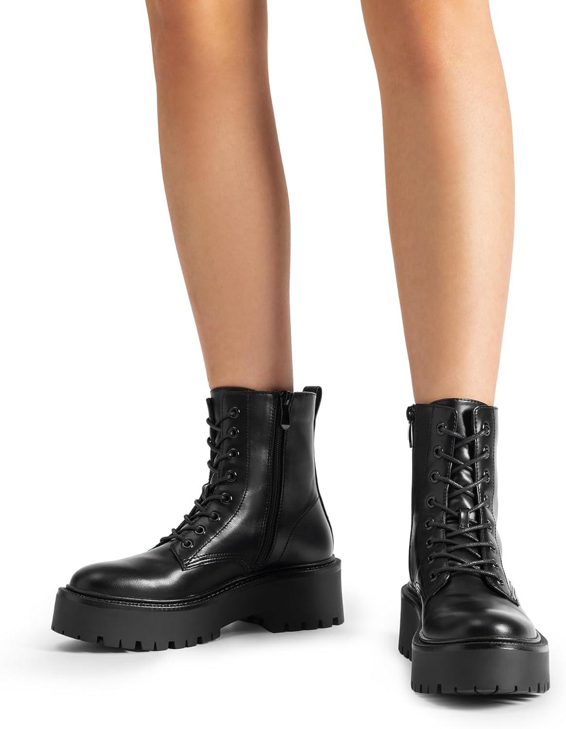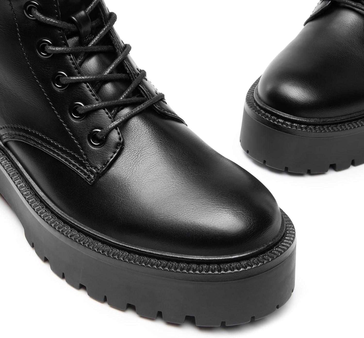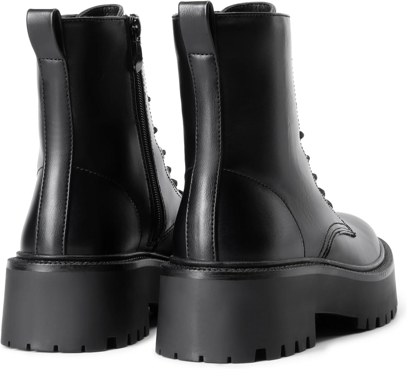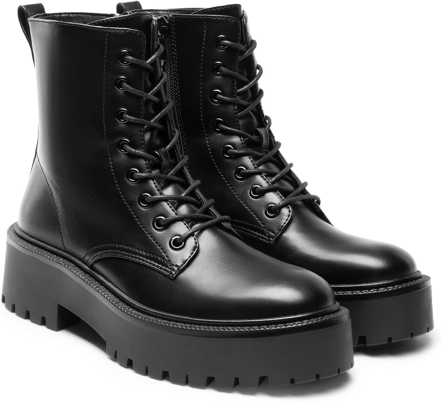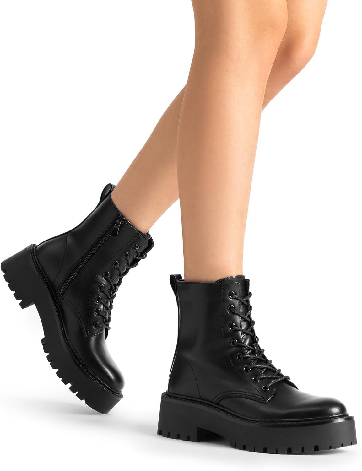 DREAM PAIRS Women’s Lace up Combat Ankle Boots Fashion Lug Sole Platform Booties Shoes,Size 8,BLACK-PU,SDAB2442W