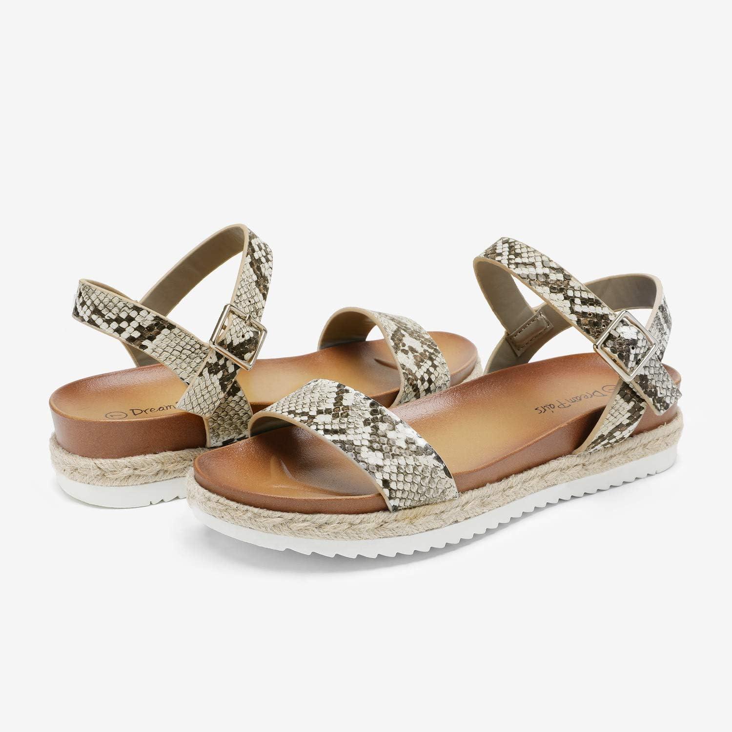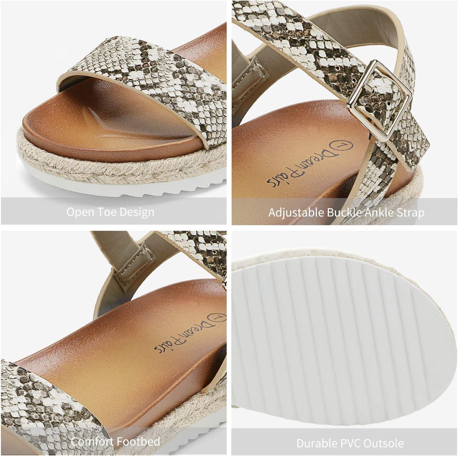 DREAM PAIRS Women’s Open Toe Ankle Strap Espadrille Casual Flatform Platform Wedge Sandals(Beige/Snake/Pu)