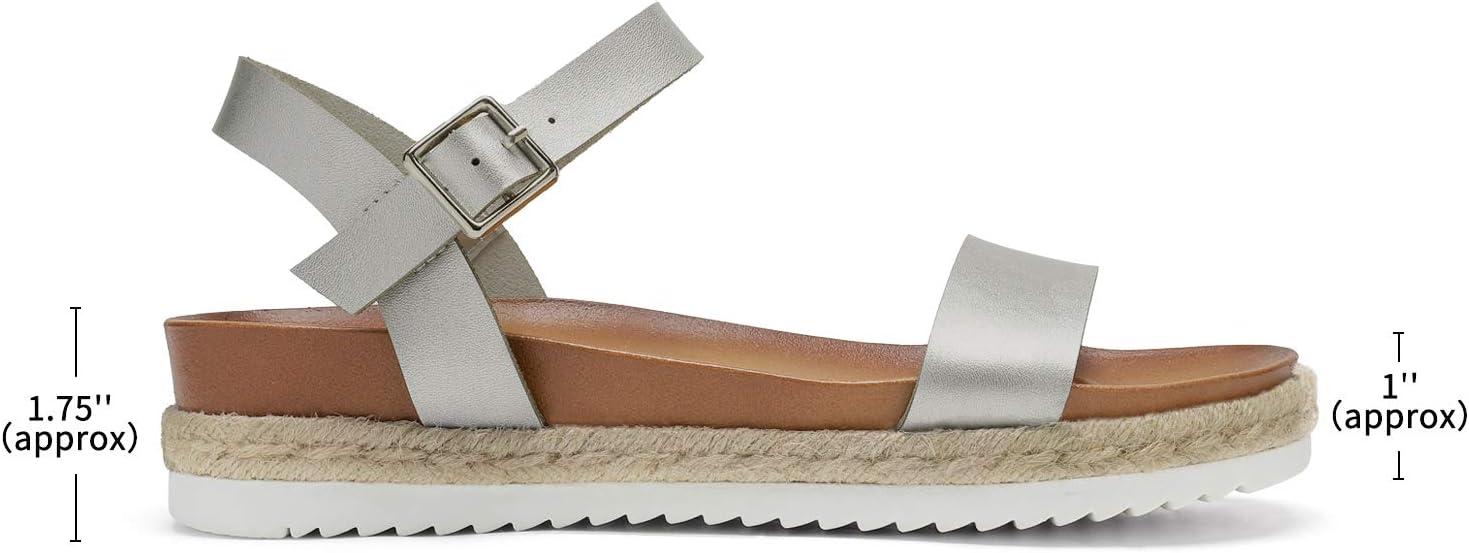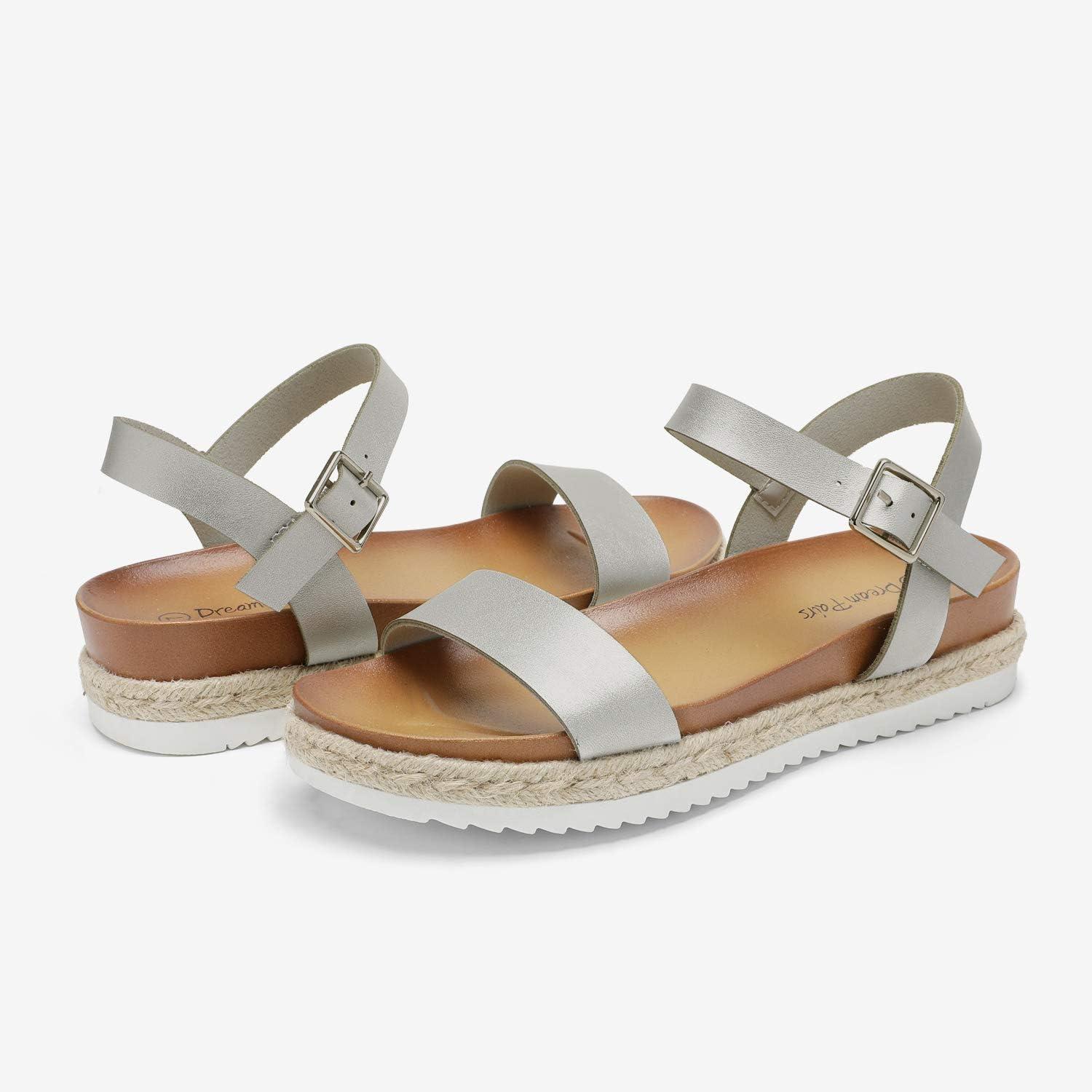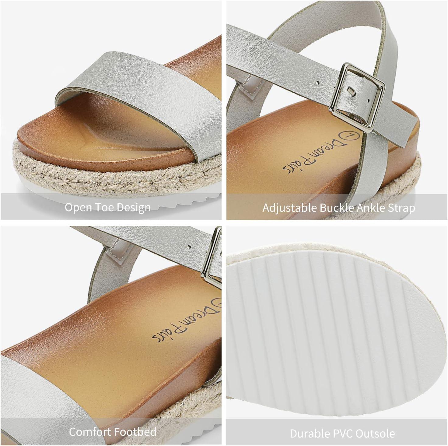 DREAM PAIRS Women’s Open Toe Ankle Strap Espadrille Casual Flatform Platform Wedge Sandals(Silver/Pu)