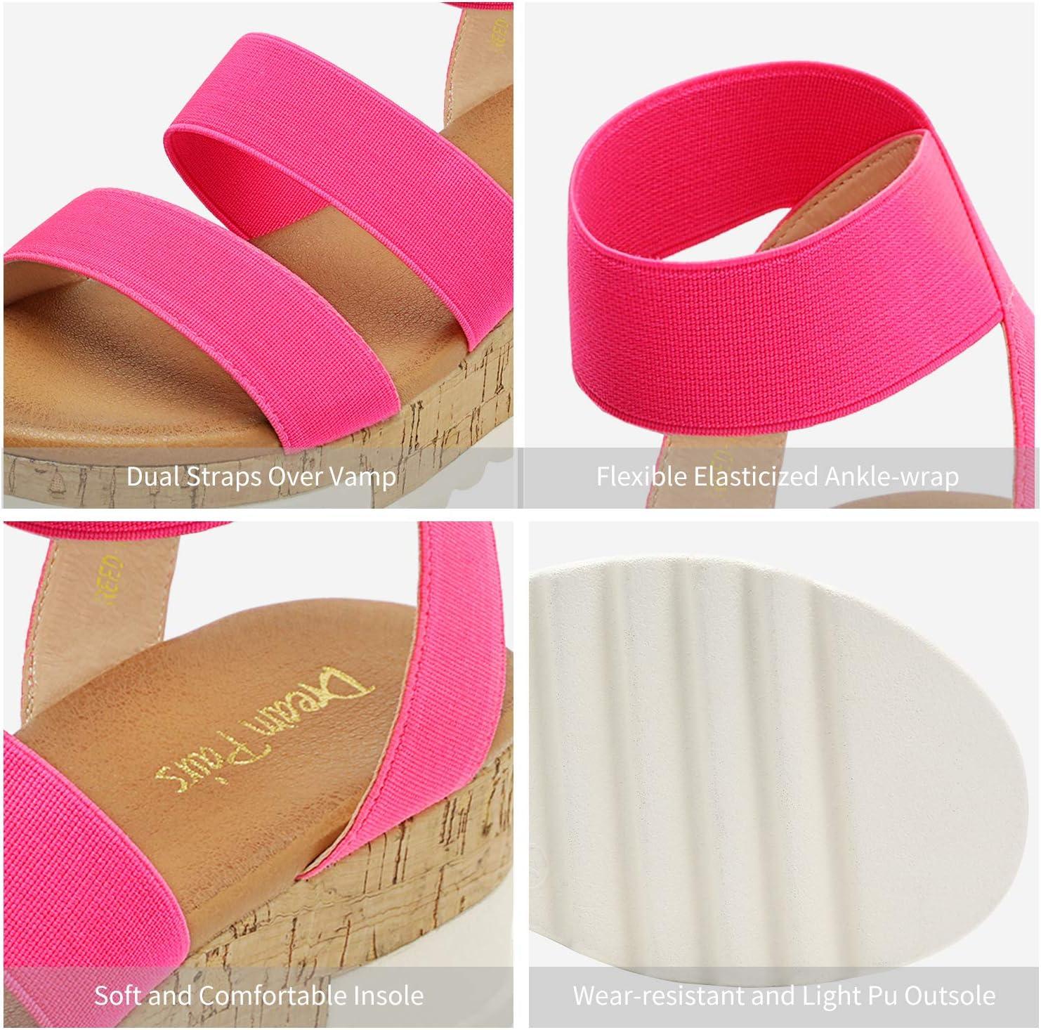 DREAM PAIRS Women’s Open Toe Elastic Ankle Strap Casual Flatform Platform Wedges Sandals(Neon/Pink)