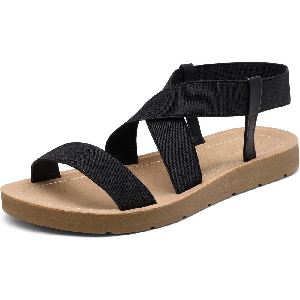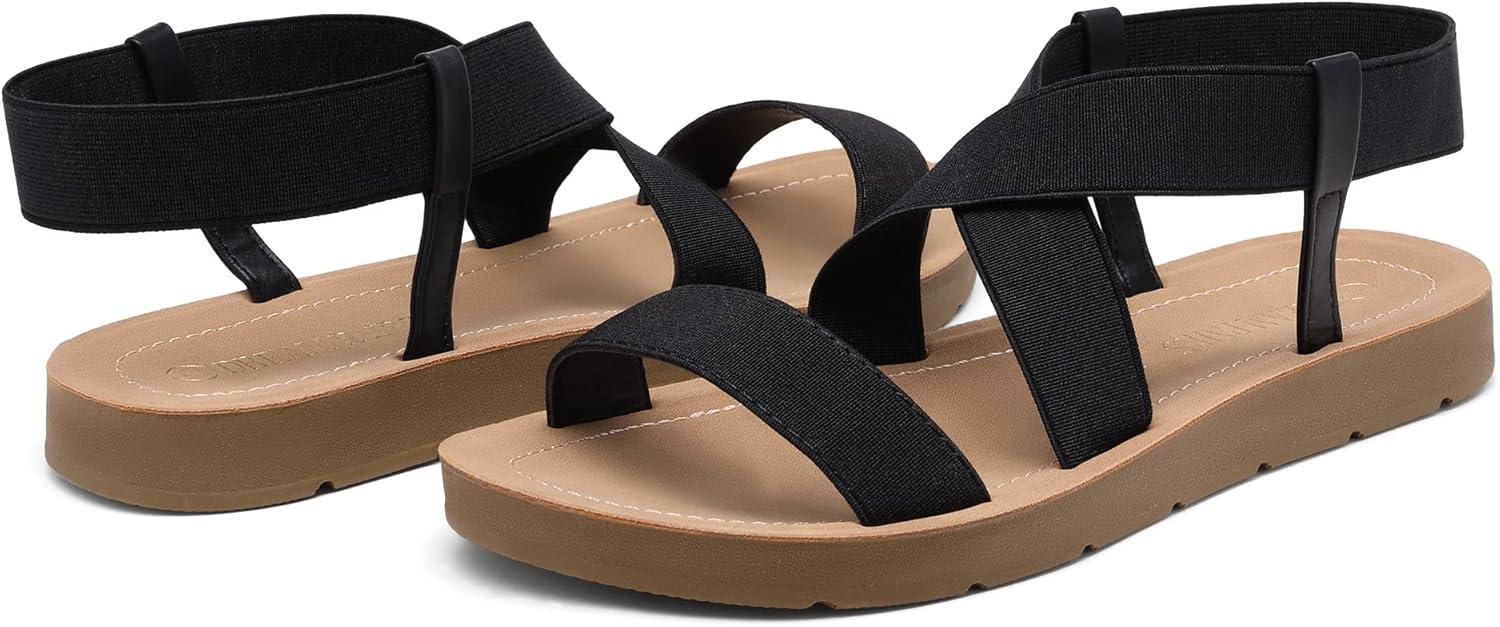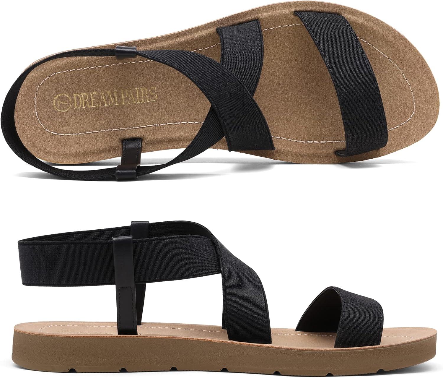 DREAM PAIRS Women’s Open Toe Elastic Ankle Strap Flat Summer Sandals(Black-1)