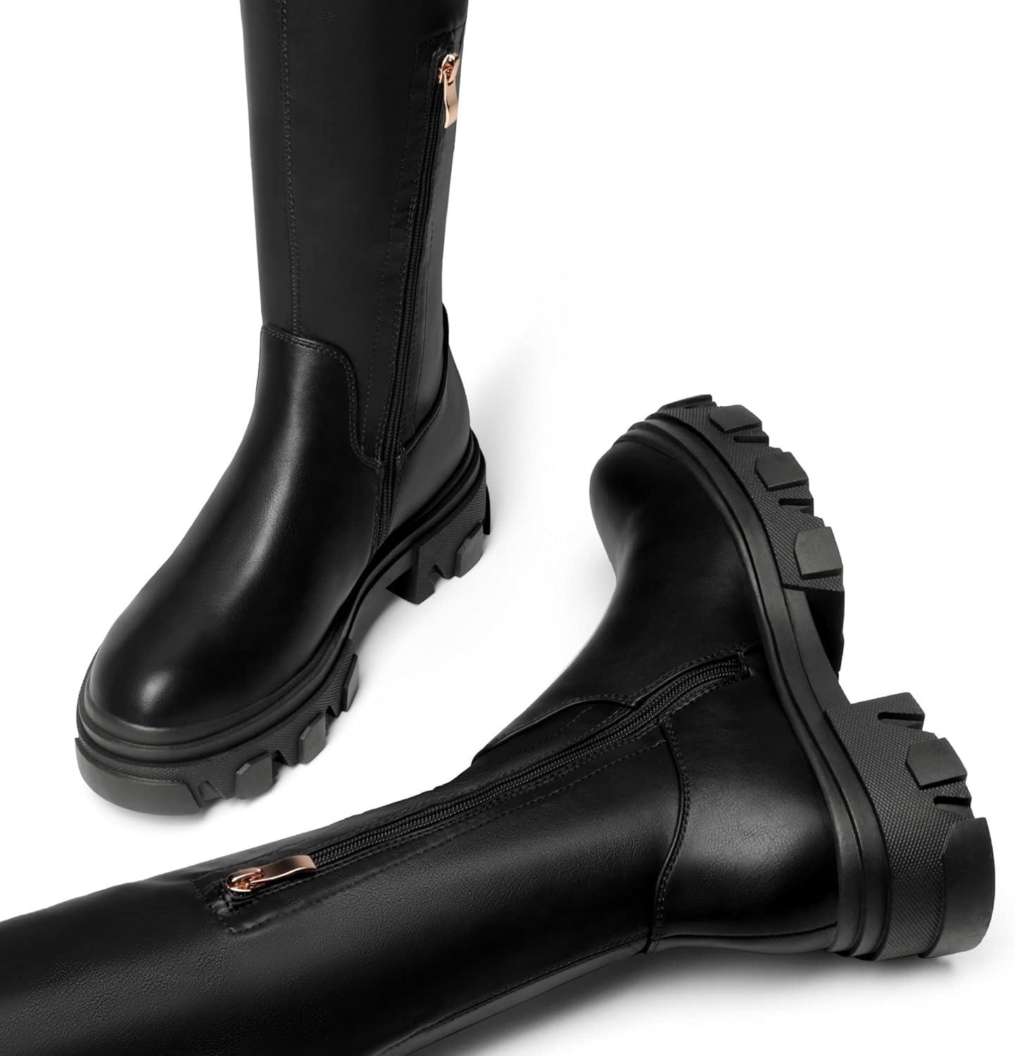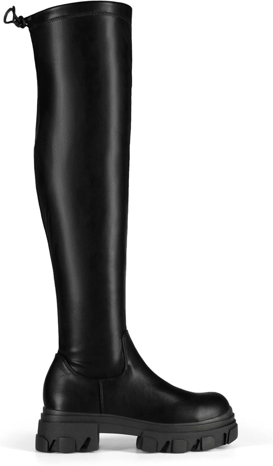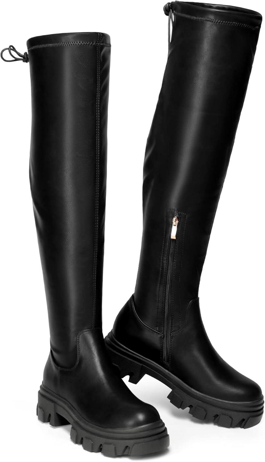 DREAM PAIRS Women’s Over The Knee Platform Thigh High Boots Long Stretch Soft Chunky Lug Sole Fall Boots(Black/Pu)