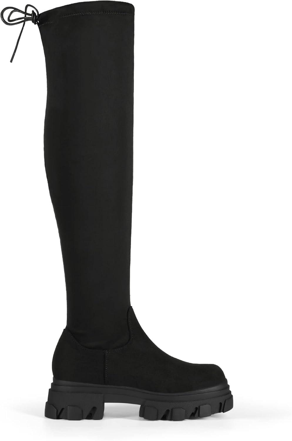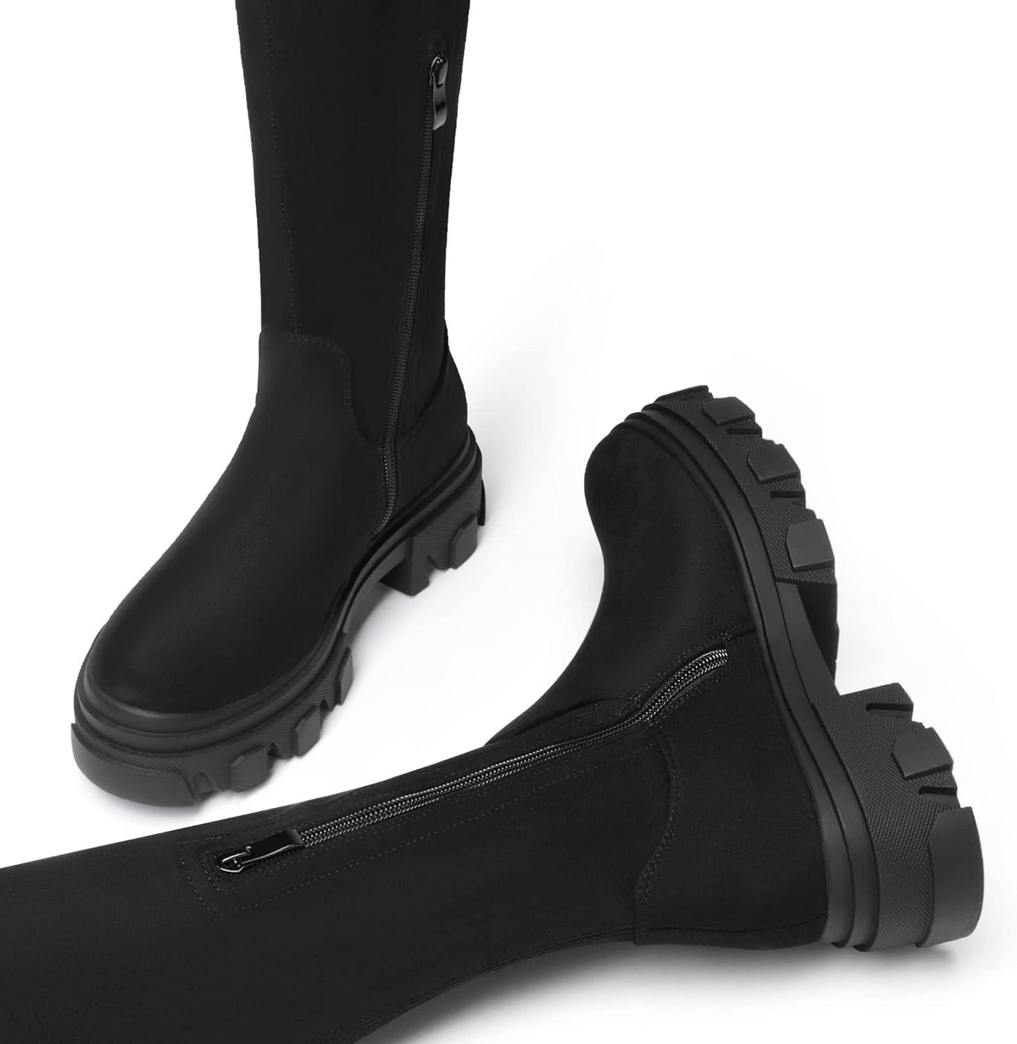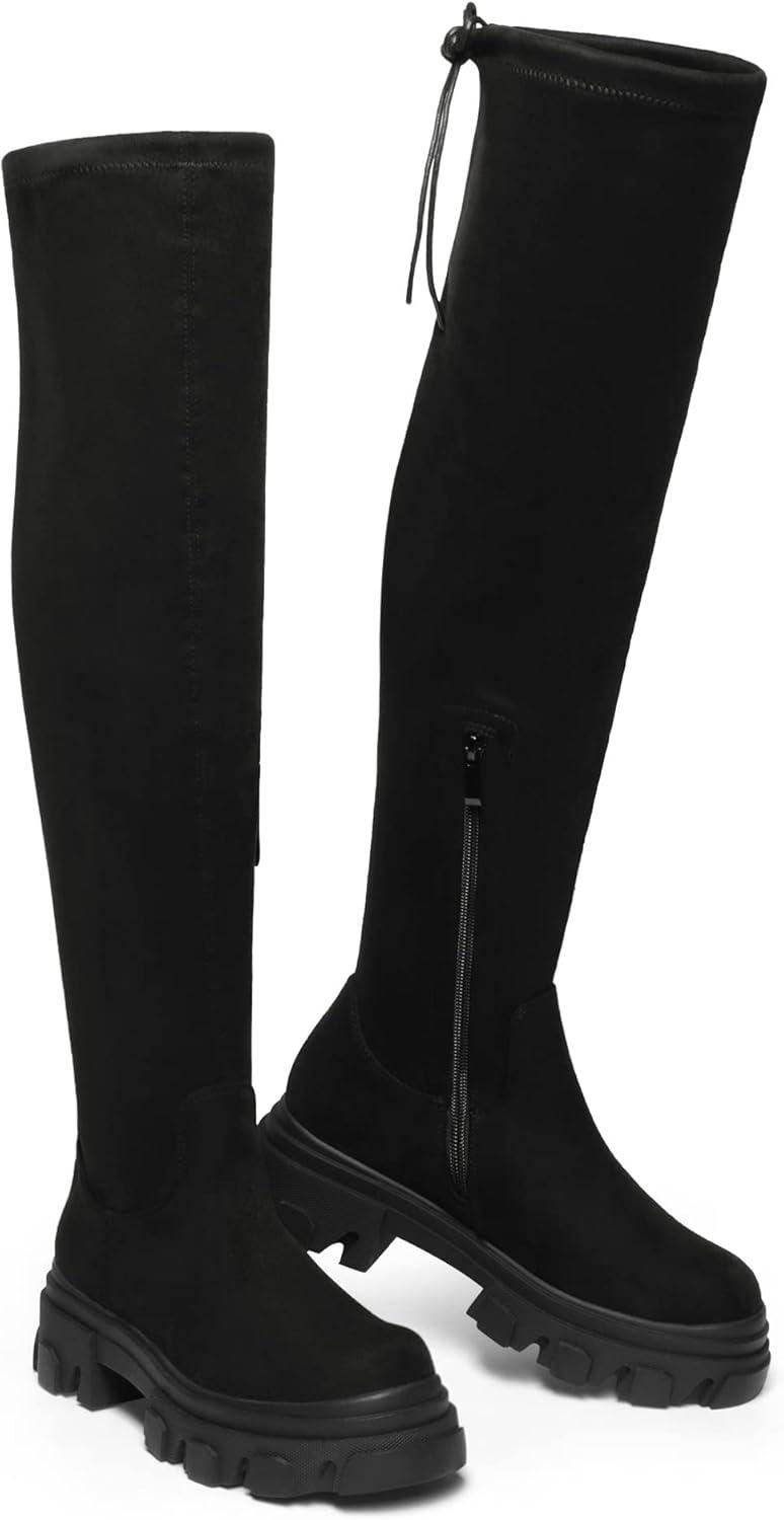 DREAM PAIRS Women’s Over The Knee Platform Thigh High Boots Long Stretch Soft Chunky Lug Sole Fall Boots(Black/Suede)