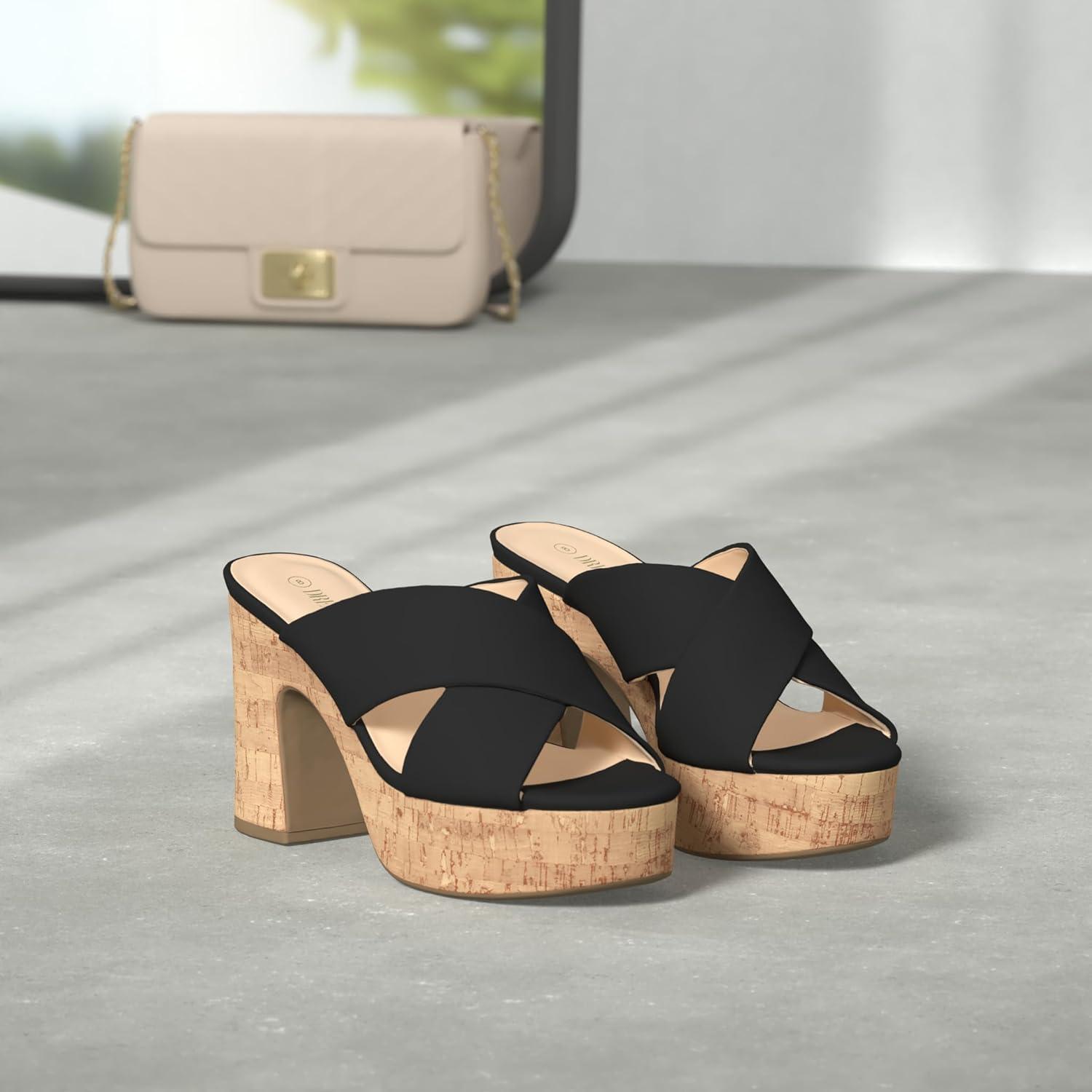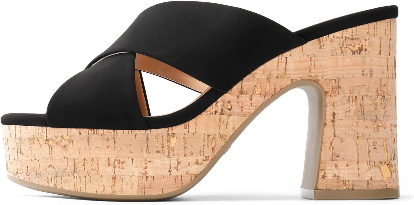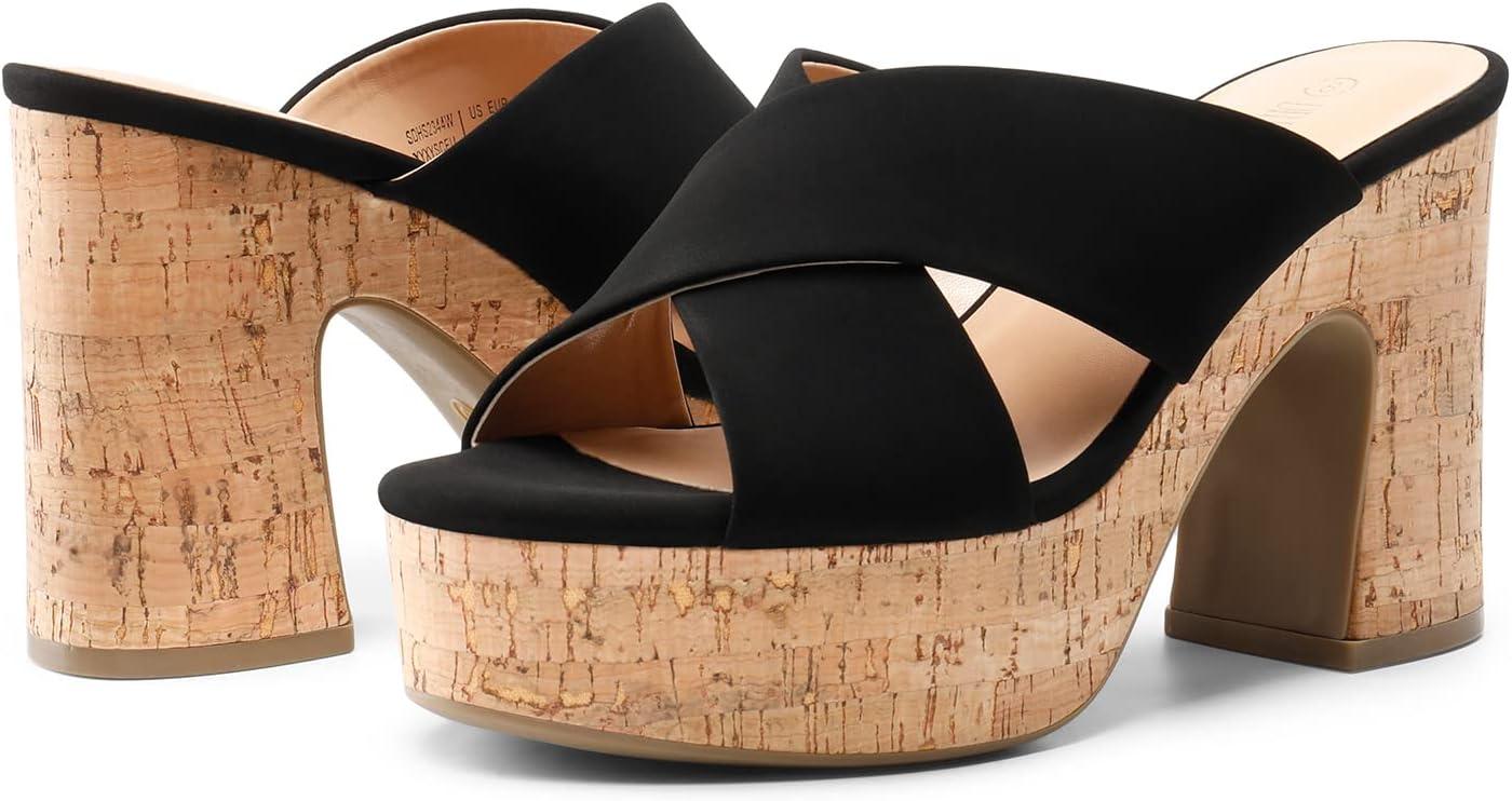 DREAM PAIRS Women’s Platform Heels Open Toe Slip on Heels for Women High Chunky Block Wedges Sandals Dressy Pumps Shoes(Black-nubuck)