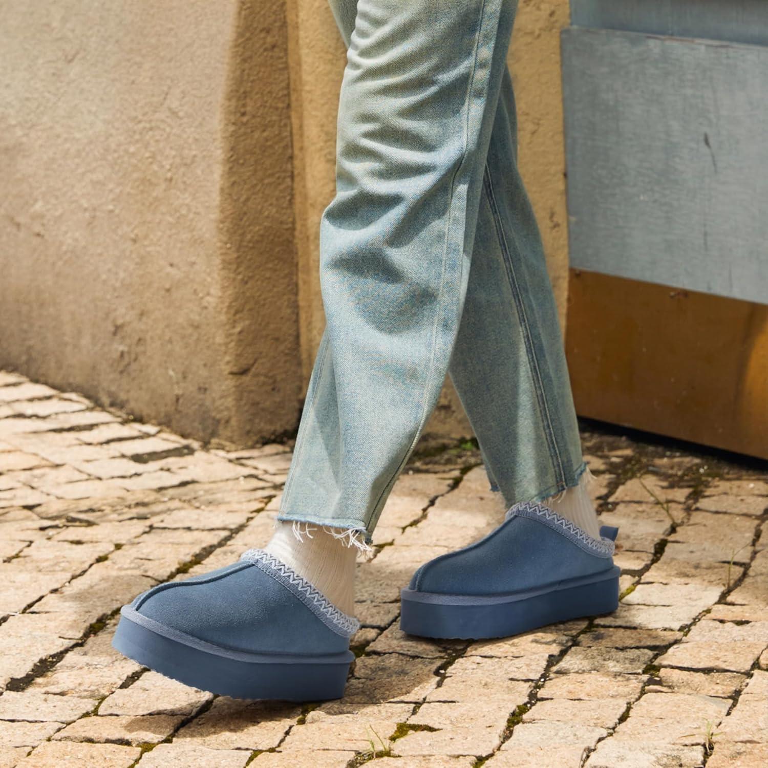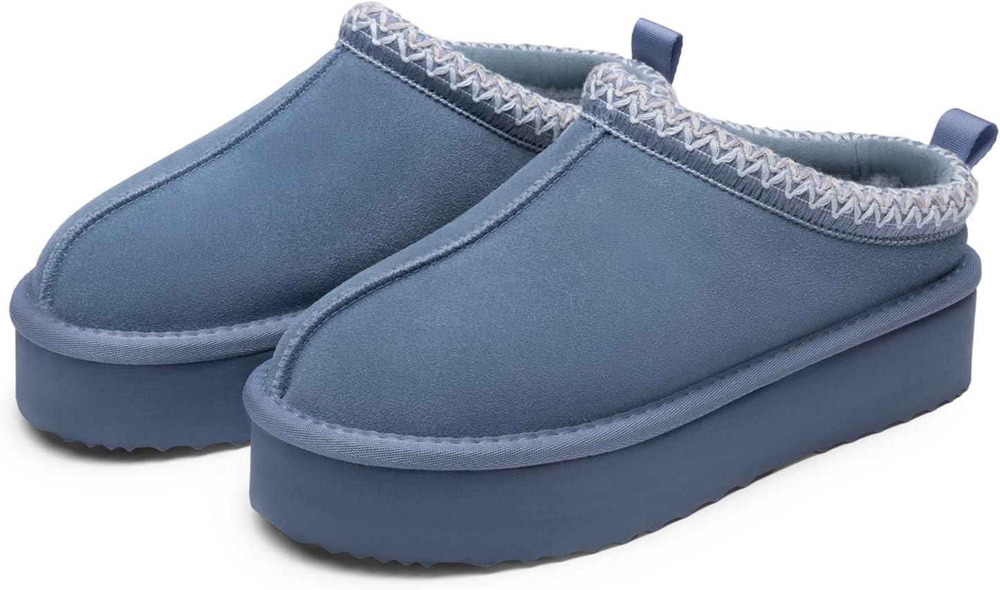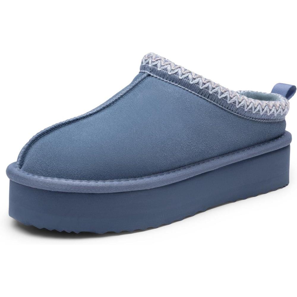 DREAM PAIRS Women’s Platform Slippers Genuine Suede Slip-on Warm FuzzyEasy Autumn Winter Fluffy Comfy Furry Shoes for Outdoor Indoor(Dark Blue)