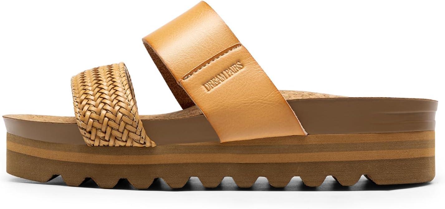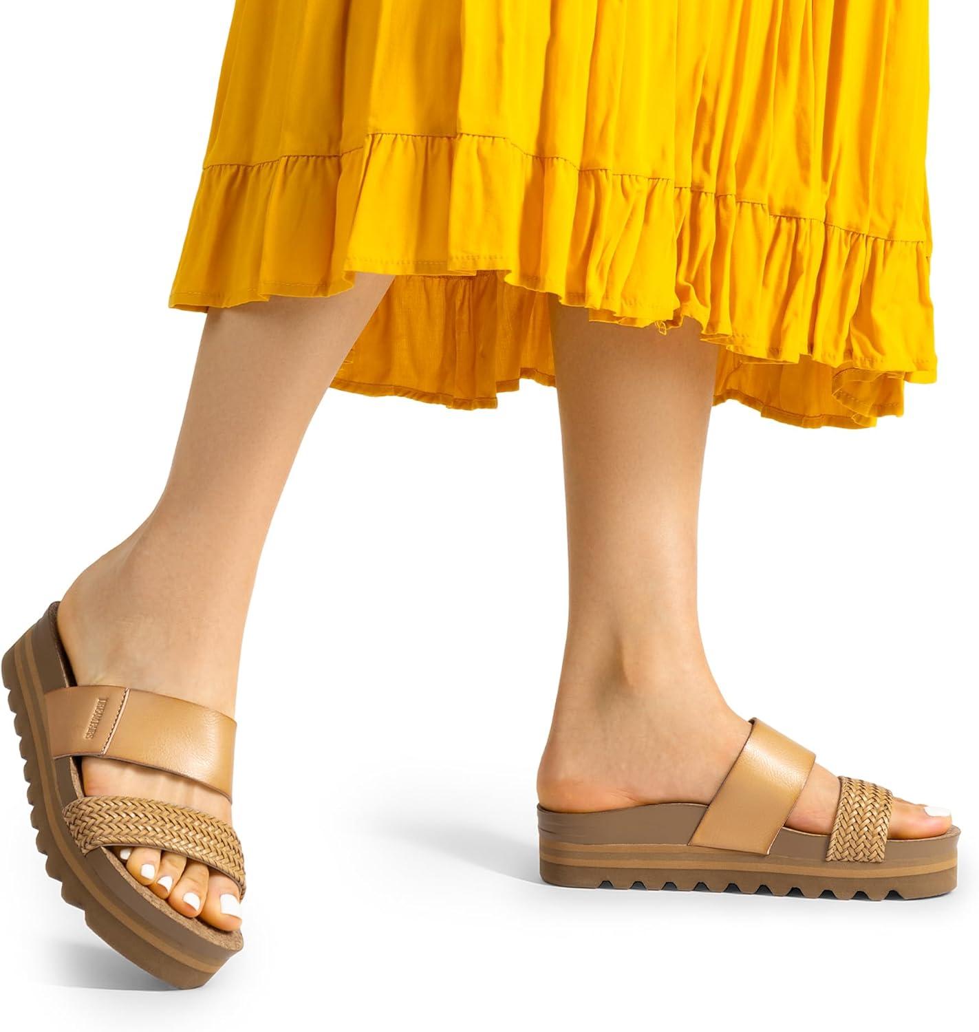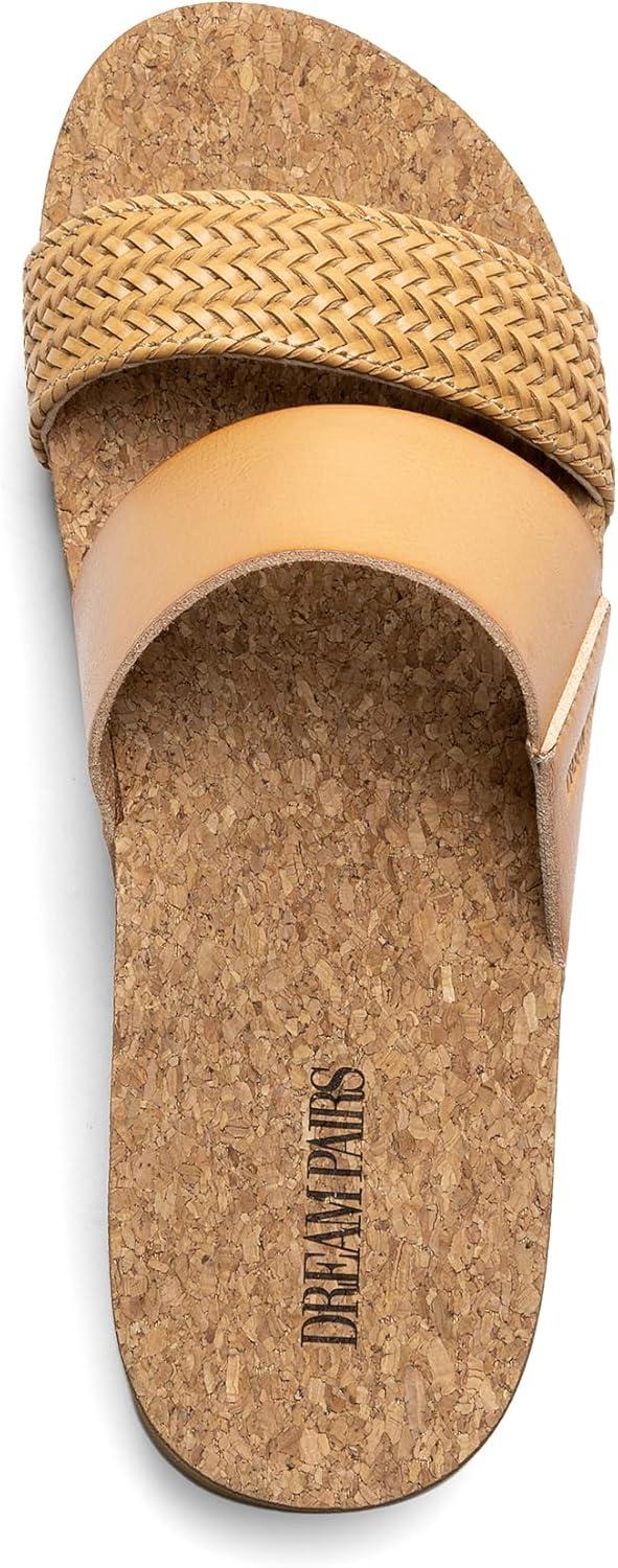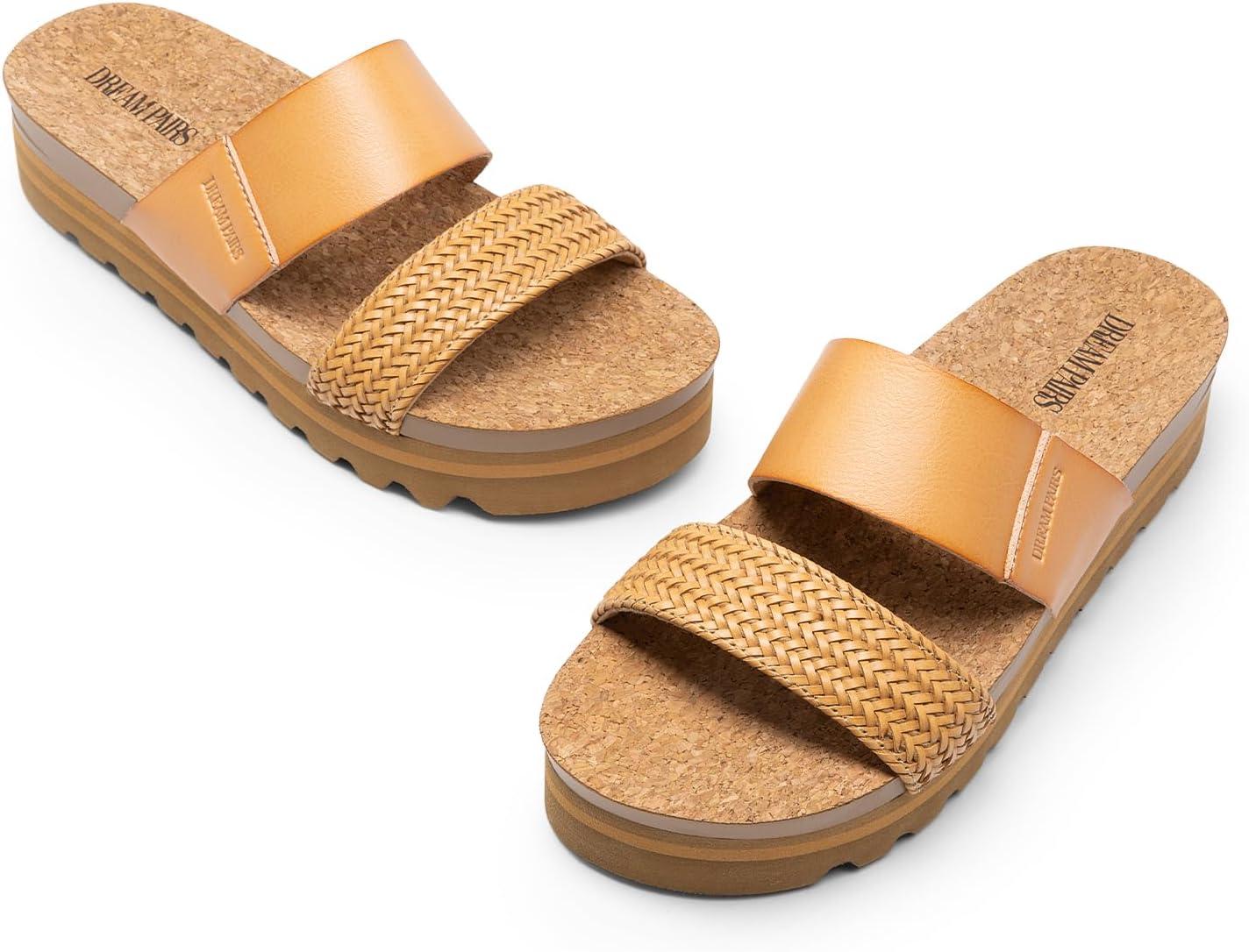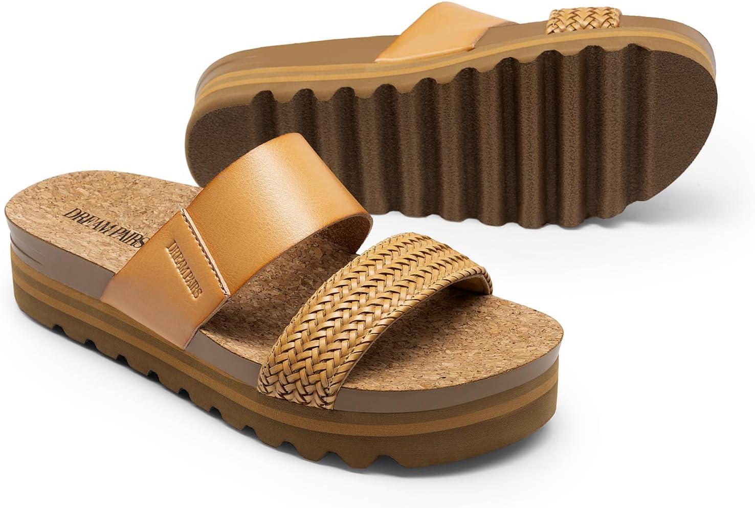 DREAM PAIRS Women’s Platform Wedge Sandals with Arch Support, Comfortable Beach Slip-on Flat Sandals, Casual 2-Strap Cork Cushion Slides for Women(Natural-pu)