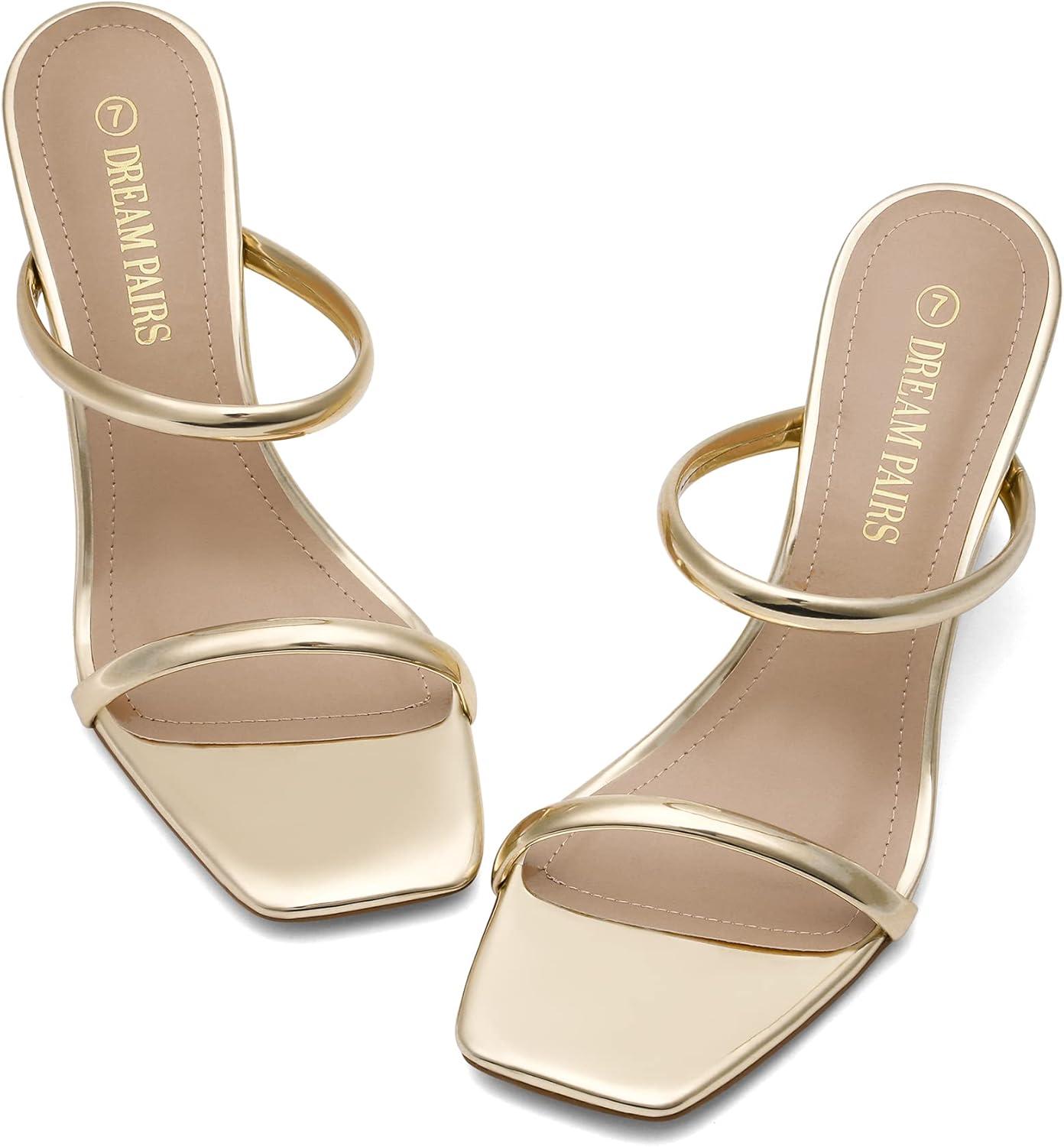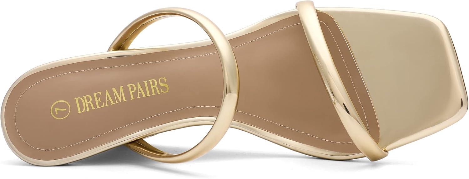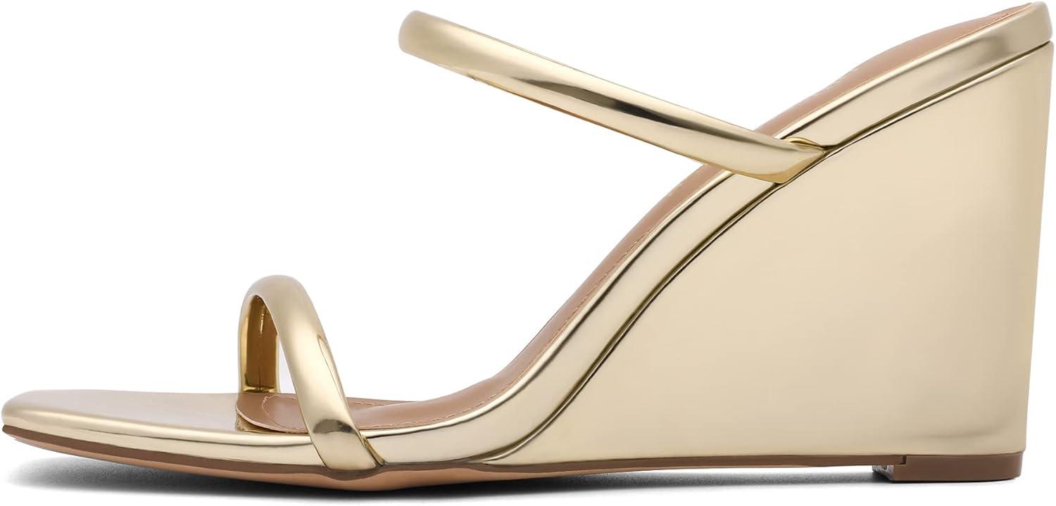 DREAM PAIRS Women’s Slides Wedge Sandals Two Strap Square Open Toe Dress Shoes(Gold)