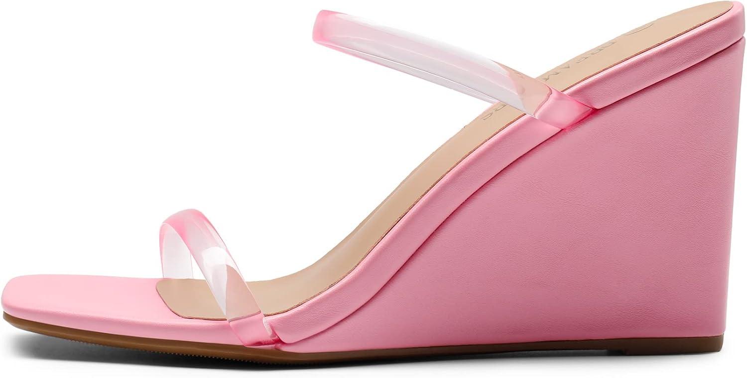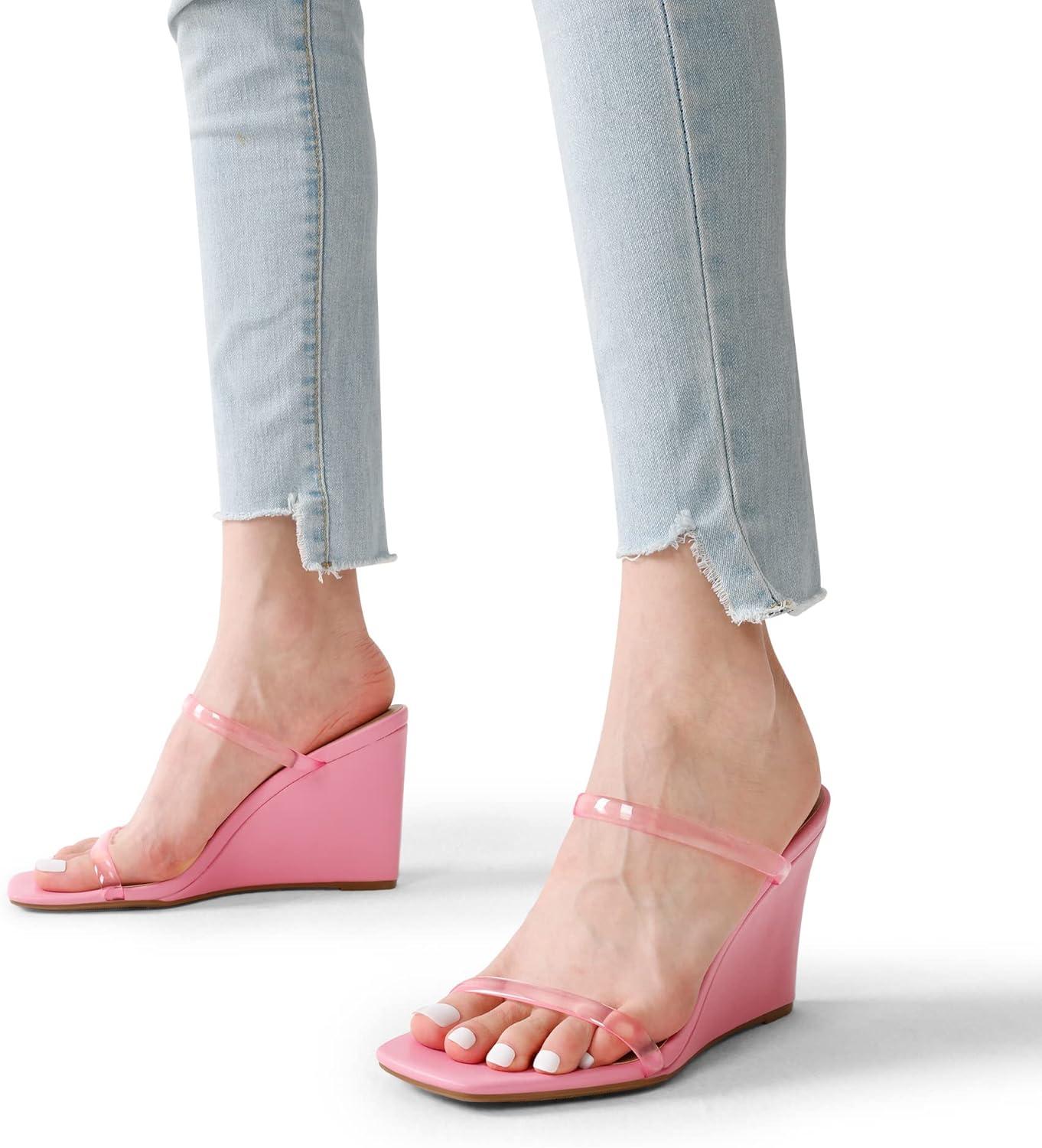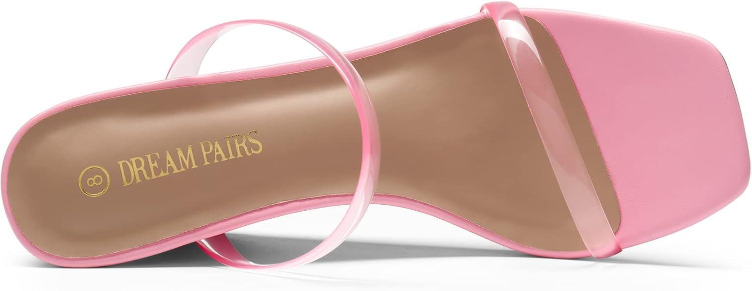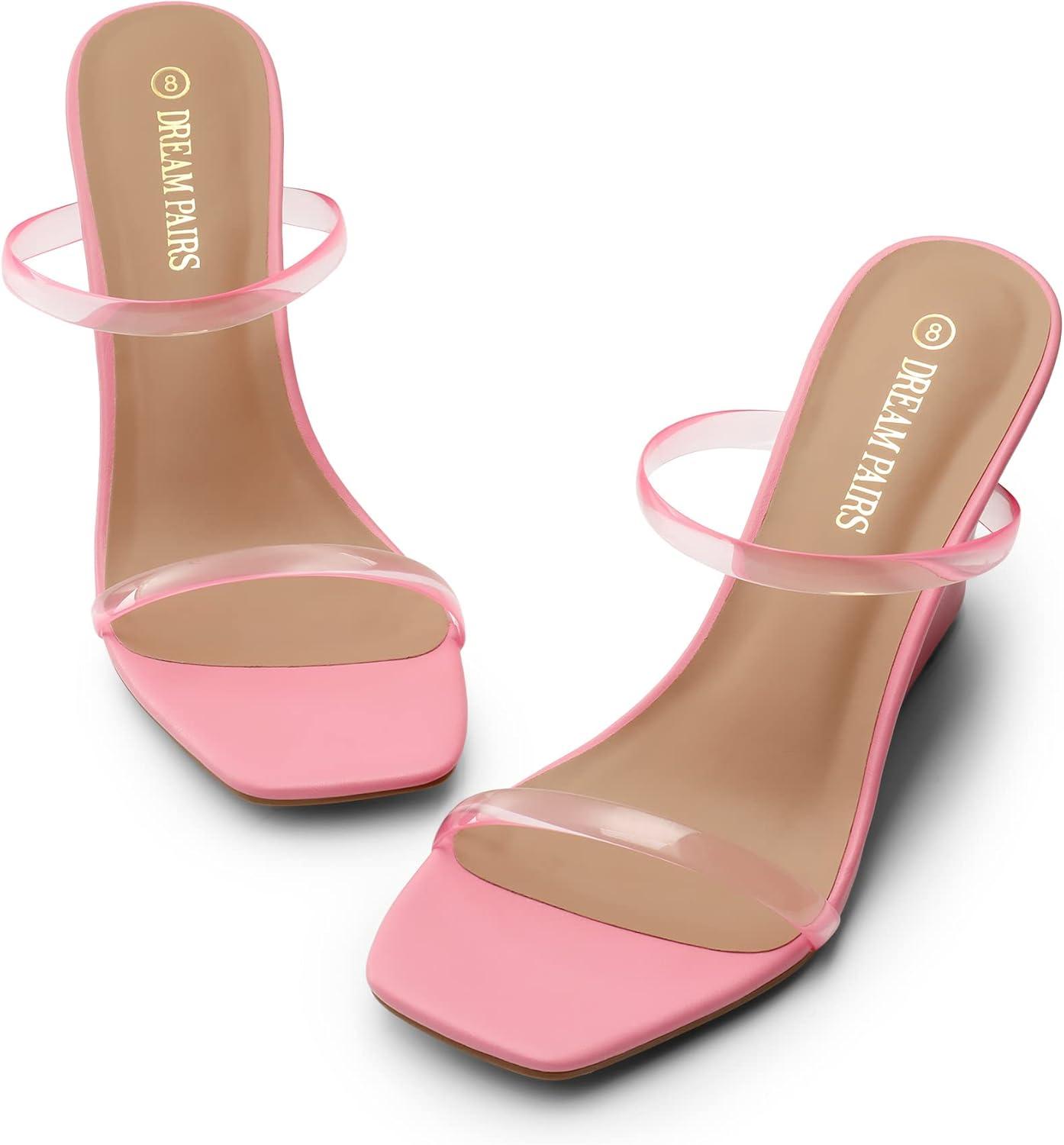 DREAM PAIRS Women’s Slides Wedge Sandals Two Strap Square Open Toe Dress Shoes(Pink/Clear)