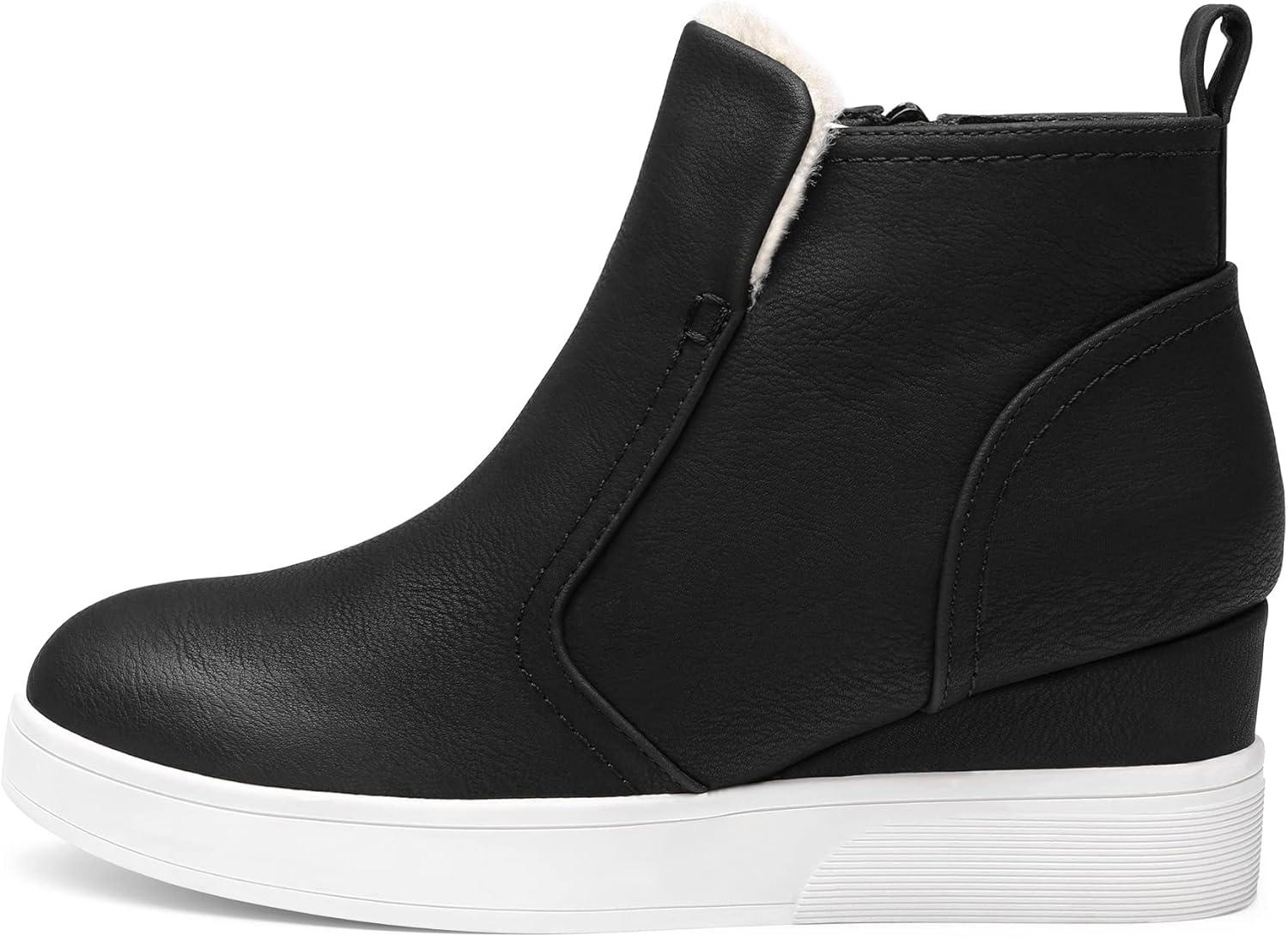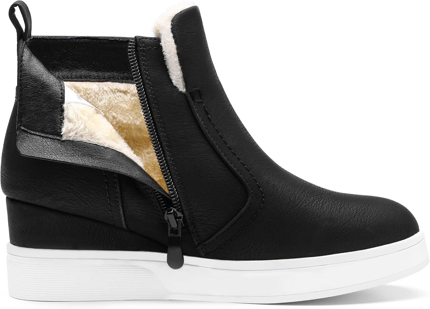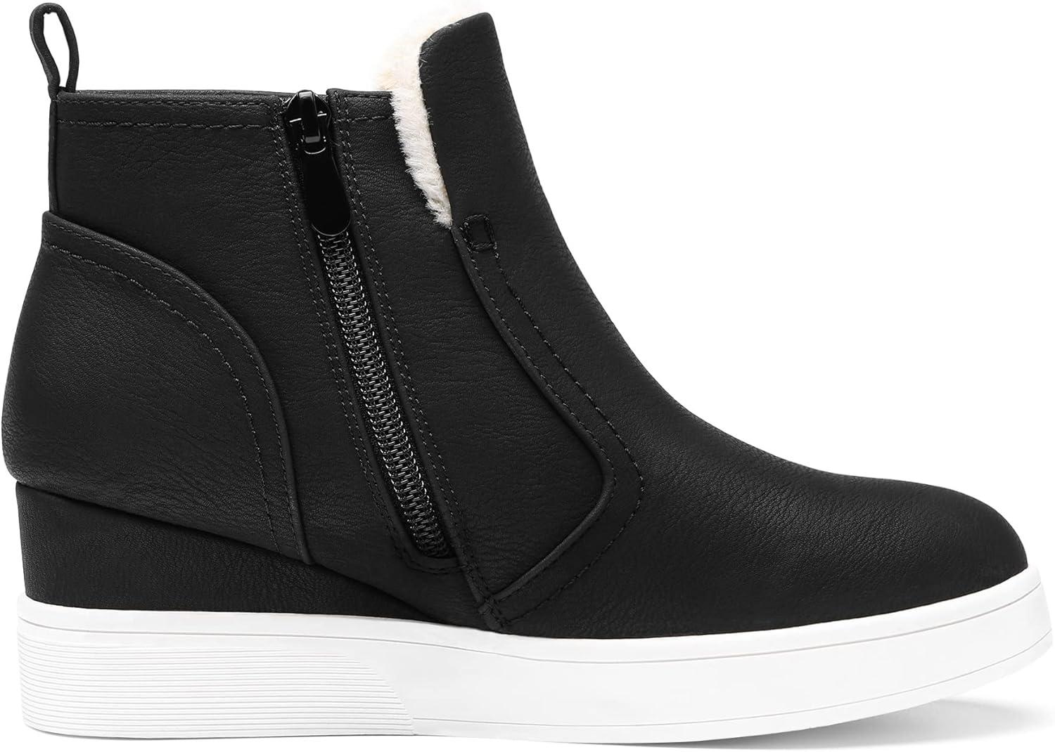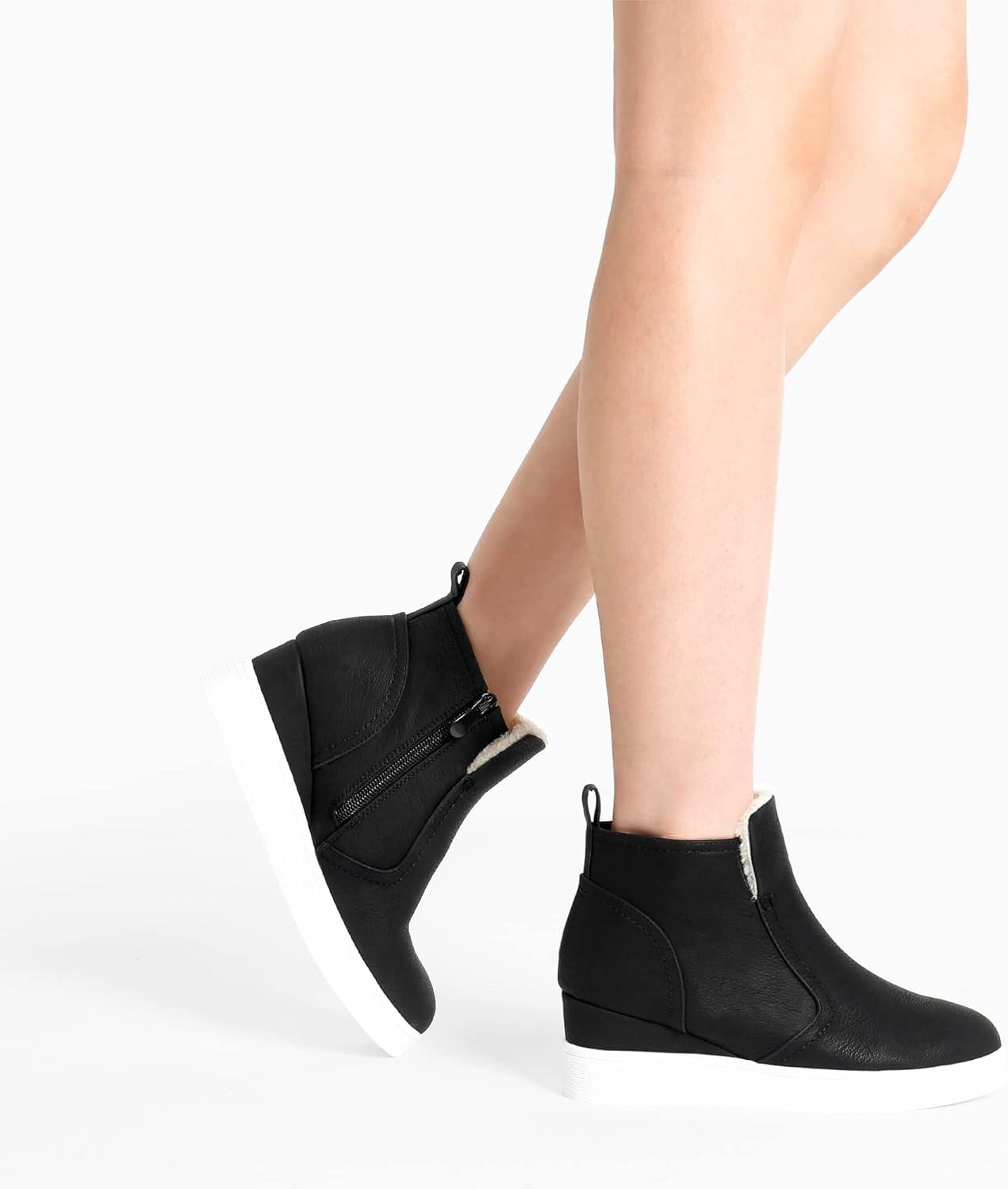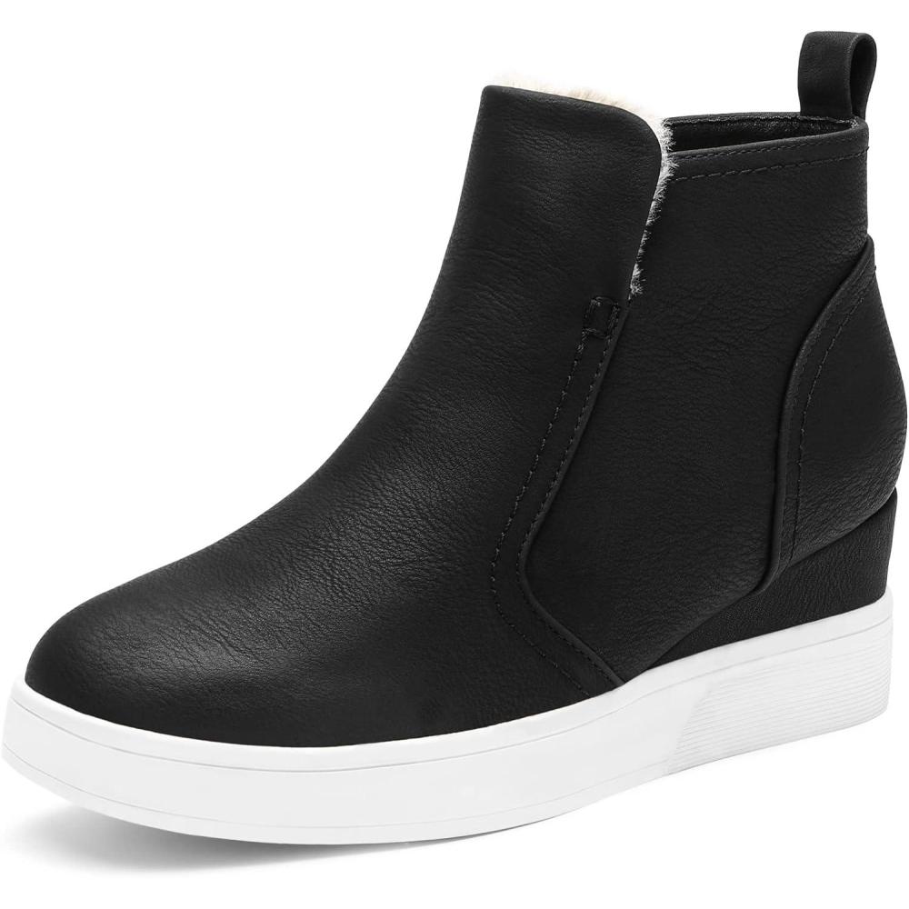 DREAM PAIRS Women’s Slip on High Top Wedge Sneakers Hidden Heel Platform Wedgie Ankle Booties(Black/Pu)