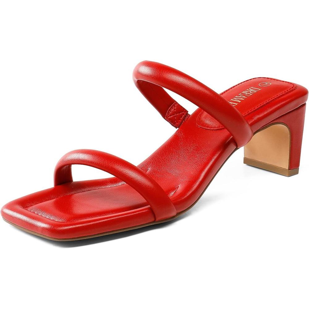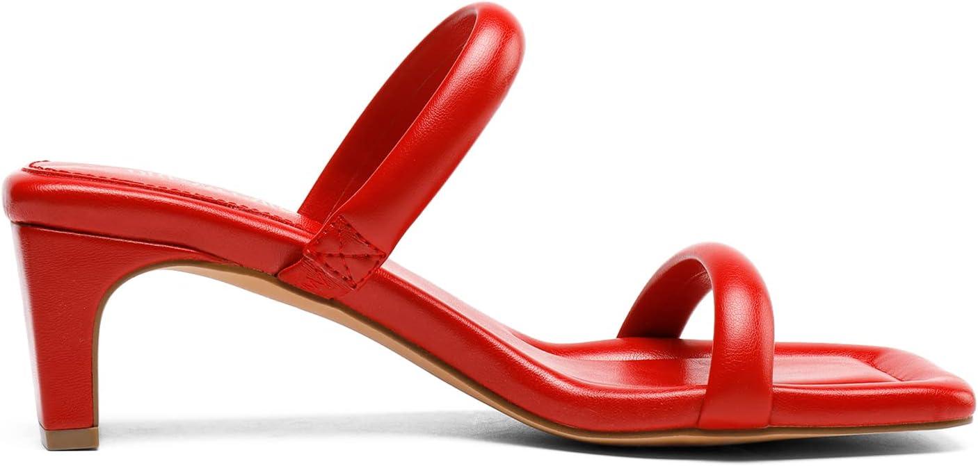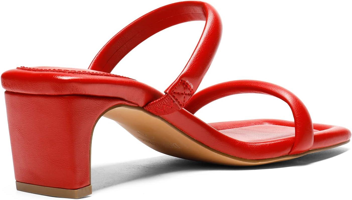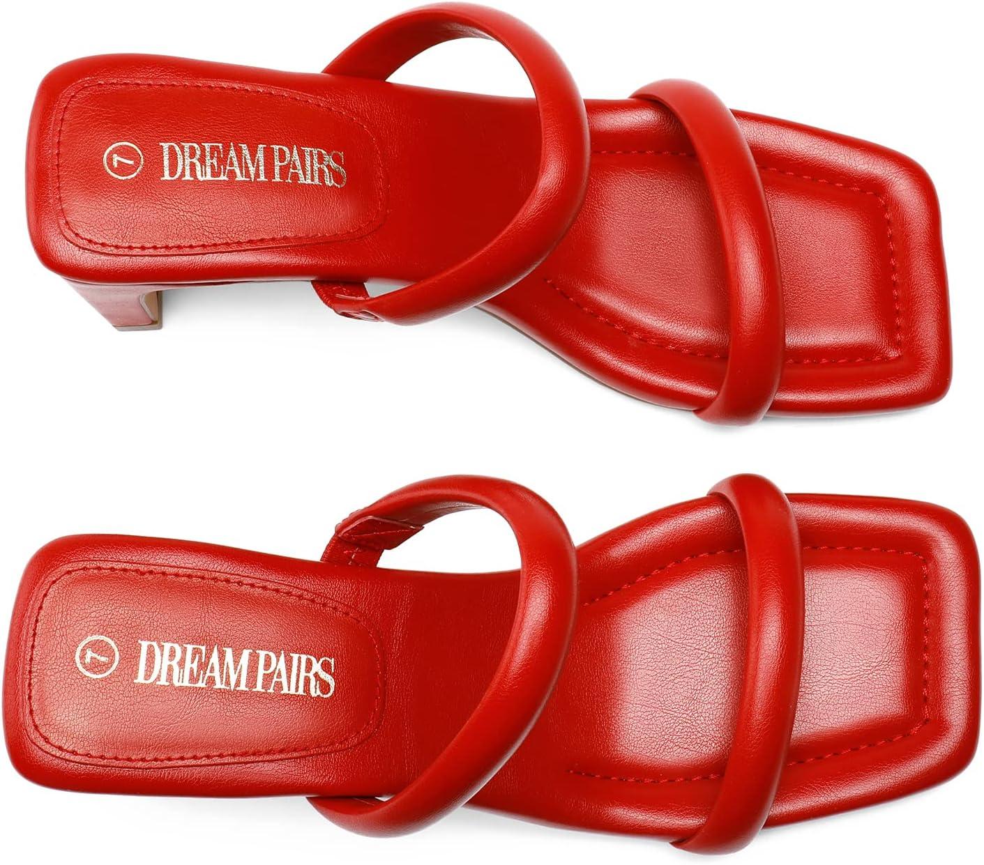 DREAM PAIRS Women’s Square Toe Heels for Women Two Strap Open Toe Low Block Chunky Heels Sandals Dress Pumps Shoes(Red)