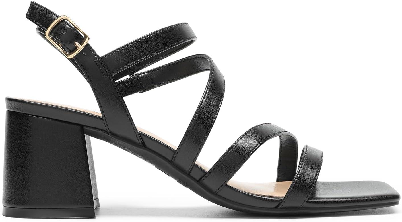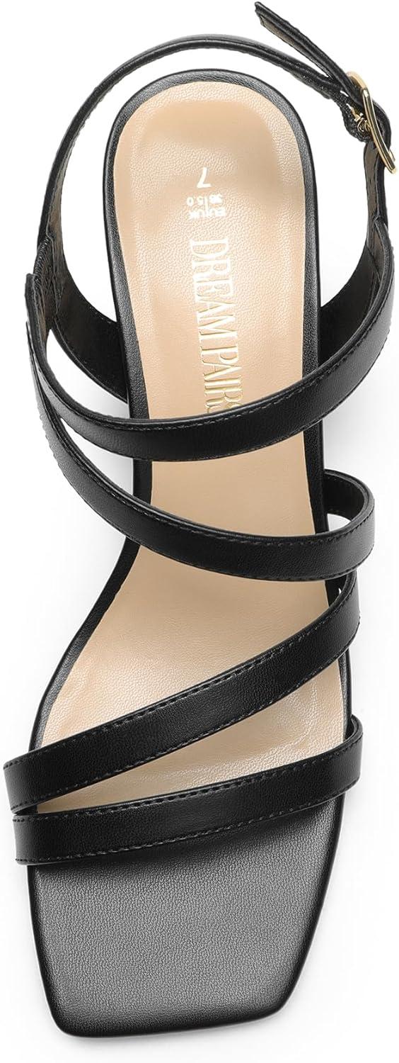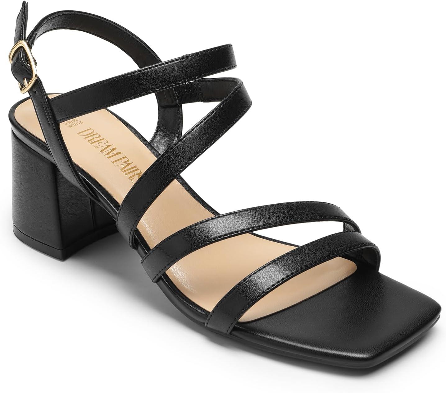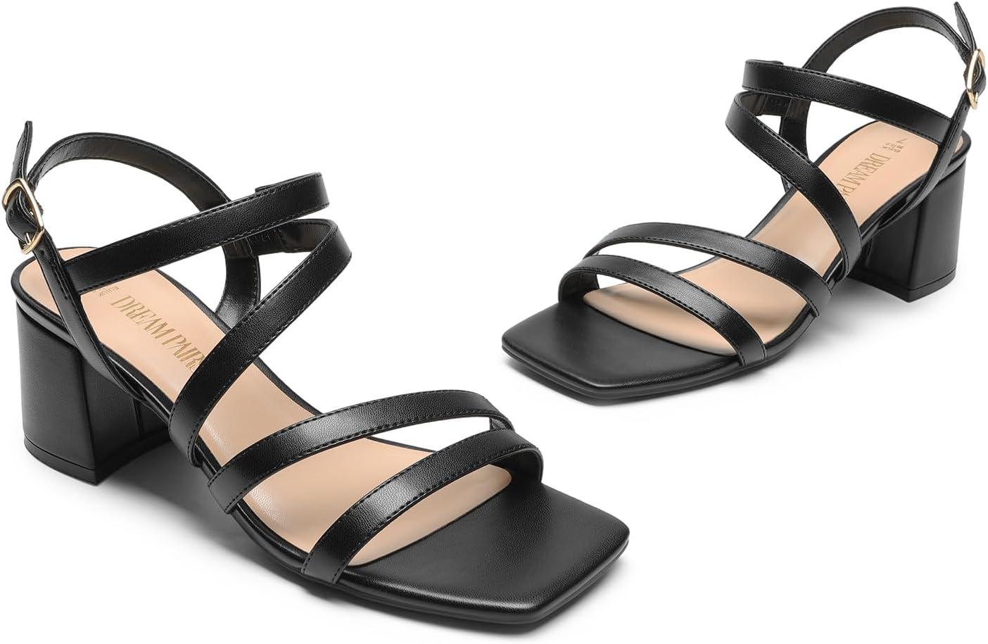DREAM PAIRS Women’s Strappy Chunky Heels Low Block Square Open Toe Sandals Dress Party Shoes(Black-pu)
