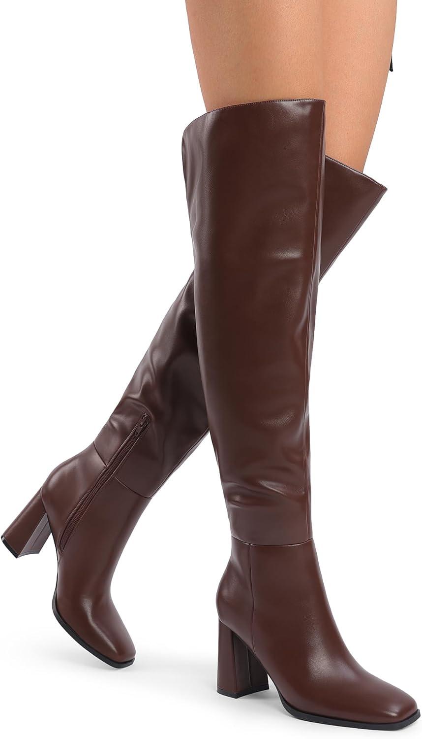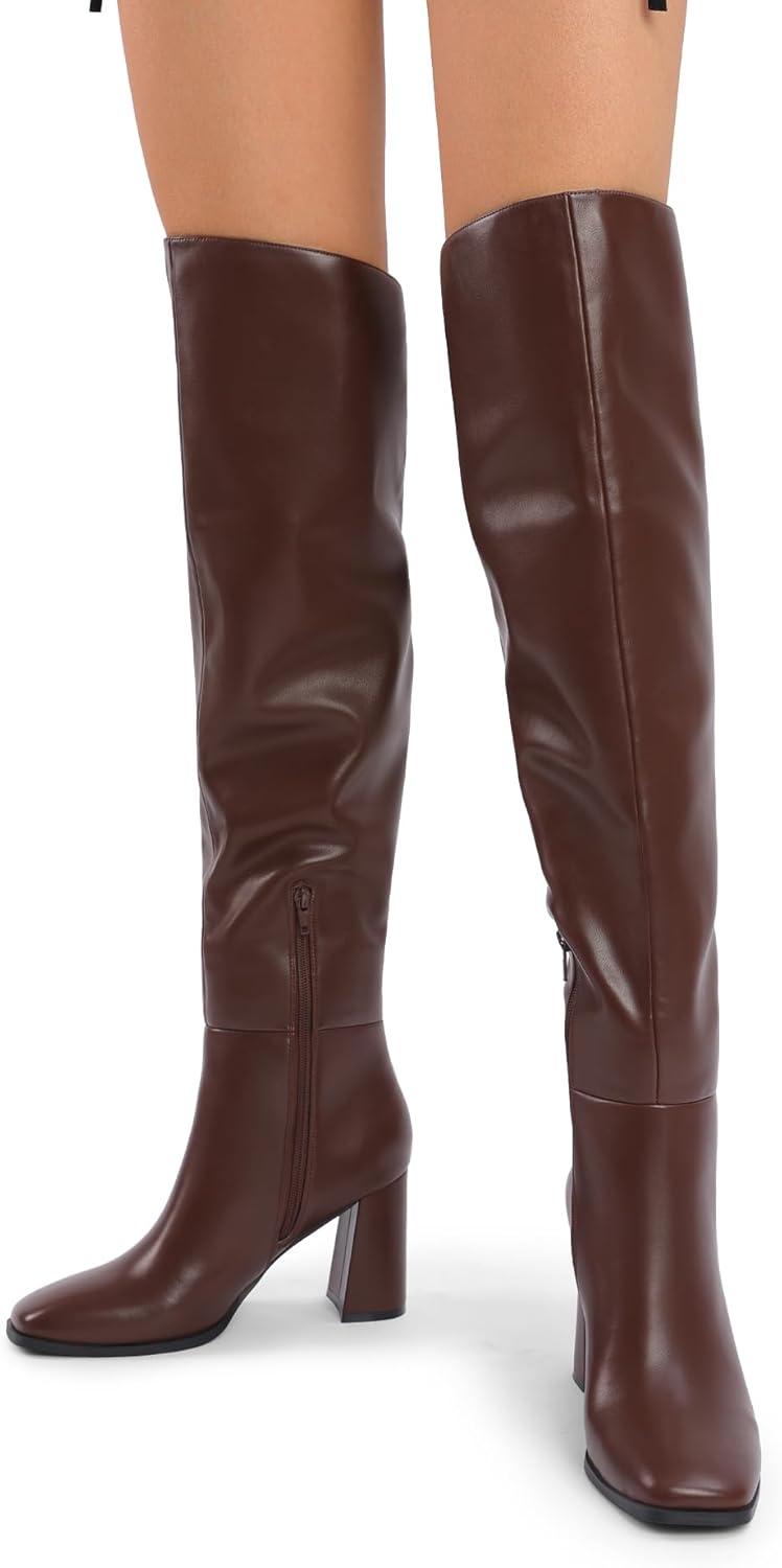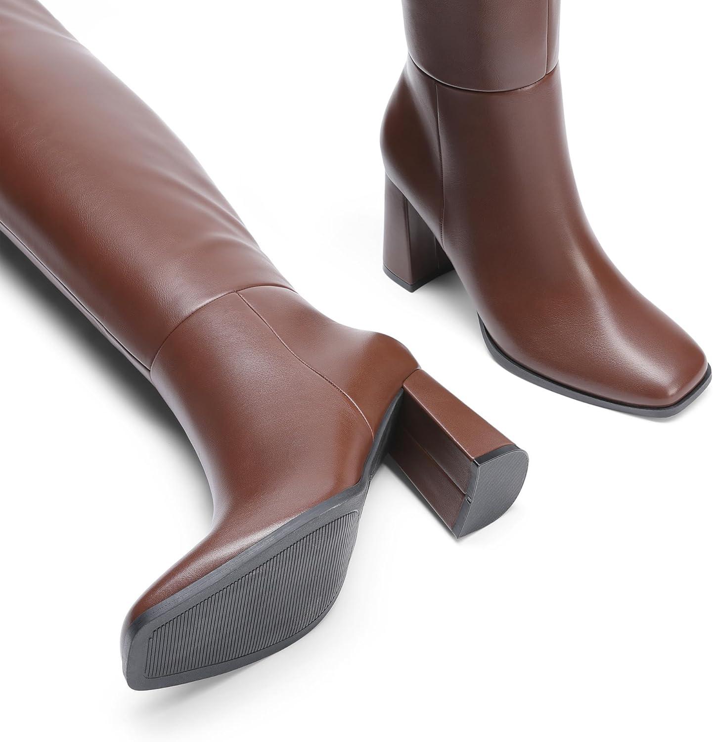 DREAM PAIRS Women’s Tall Over the Knee Boots Thigh High Fall Block Chunky Heeled Knee High Long Boots with Fashion Square Toe and Side Zipper(Brown)