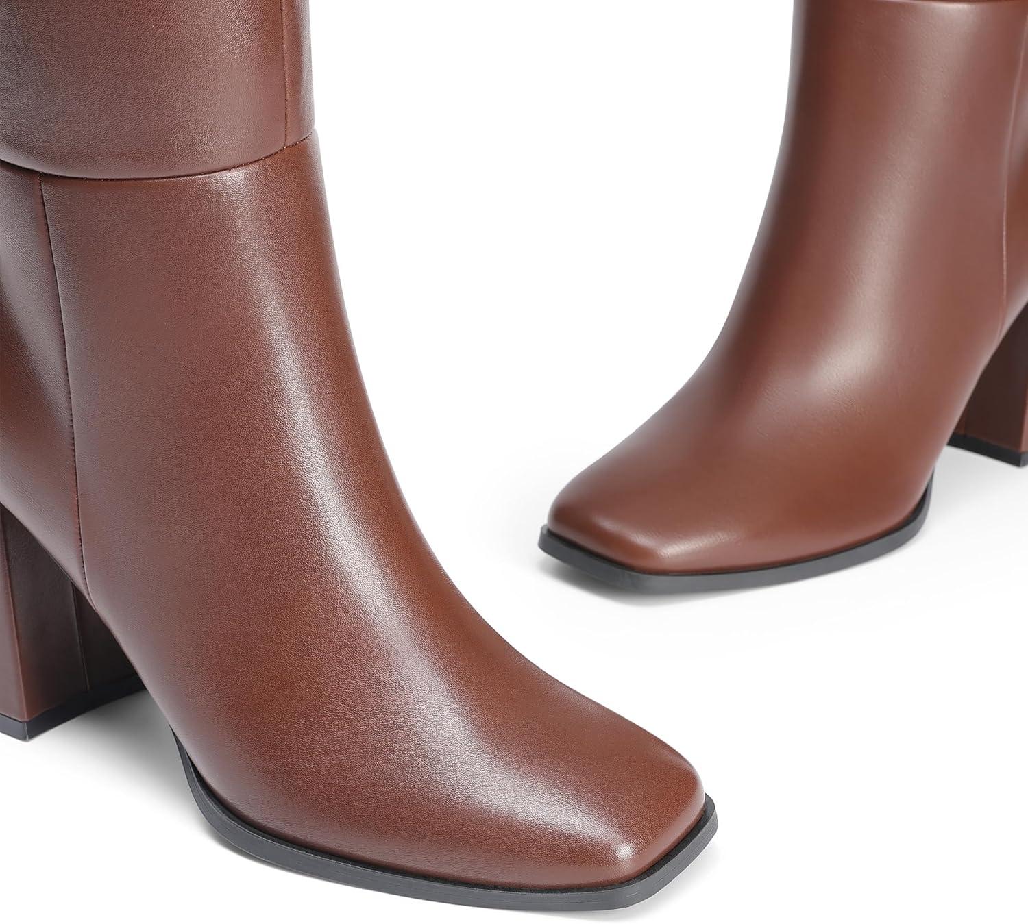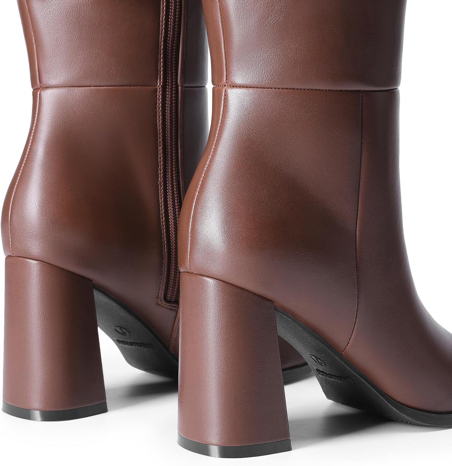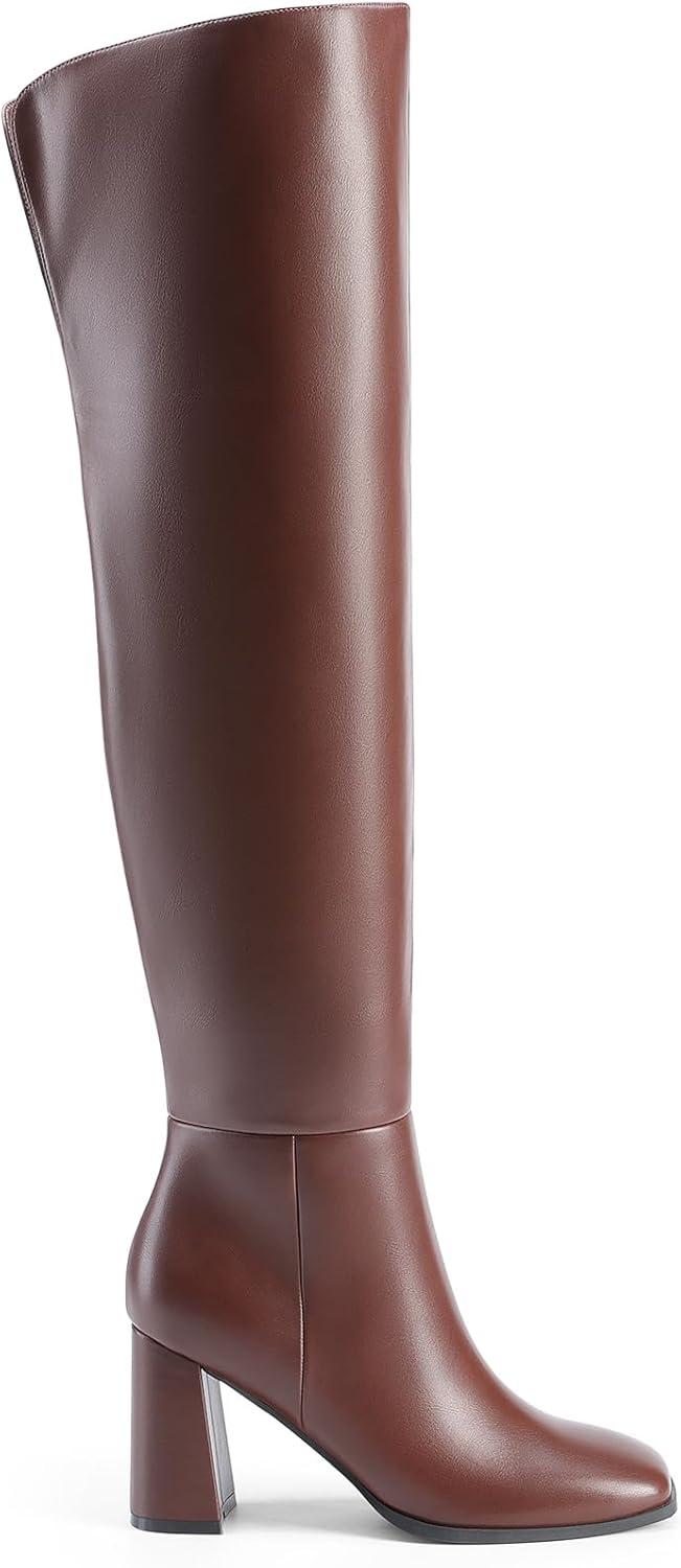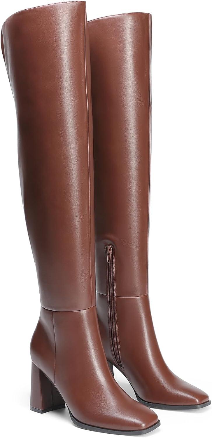 DREAM PAIRS Women’s Tall Over the Knee Boots Thigh High Fall Block Chunky Heeled Knee High Long Boots with Fashion Square Toe and Side Zipper(Brown)