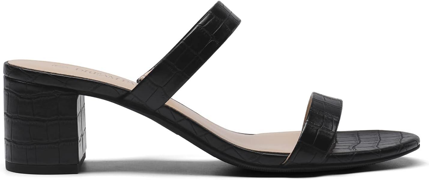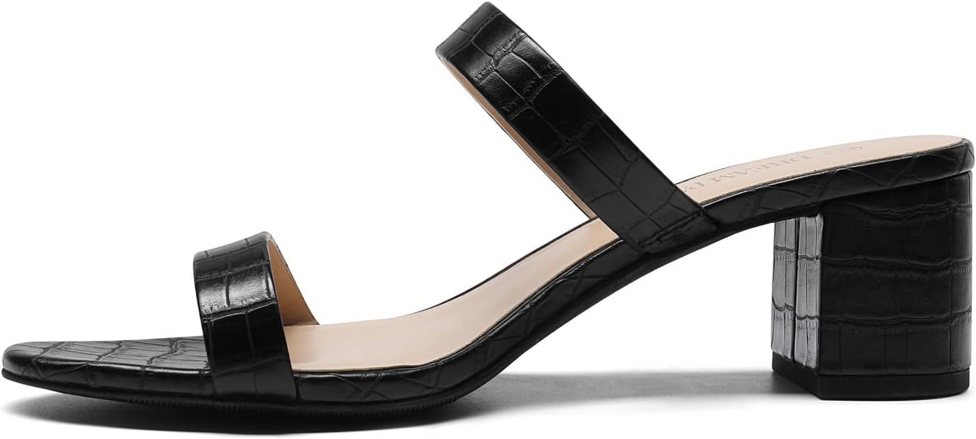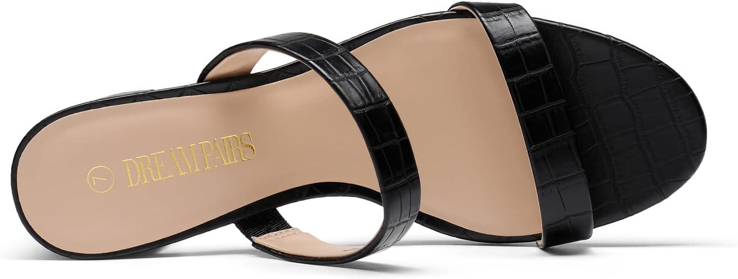 DREAM PAIRS Women’s Two Strap Open Toe Low Block Chunky Heels Sandals Dress Pumps Casual Summer Mules Shoes(Black-stone)